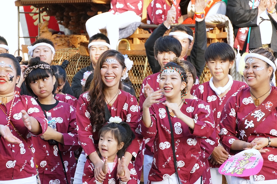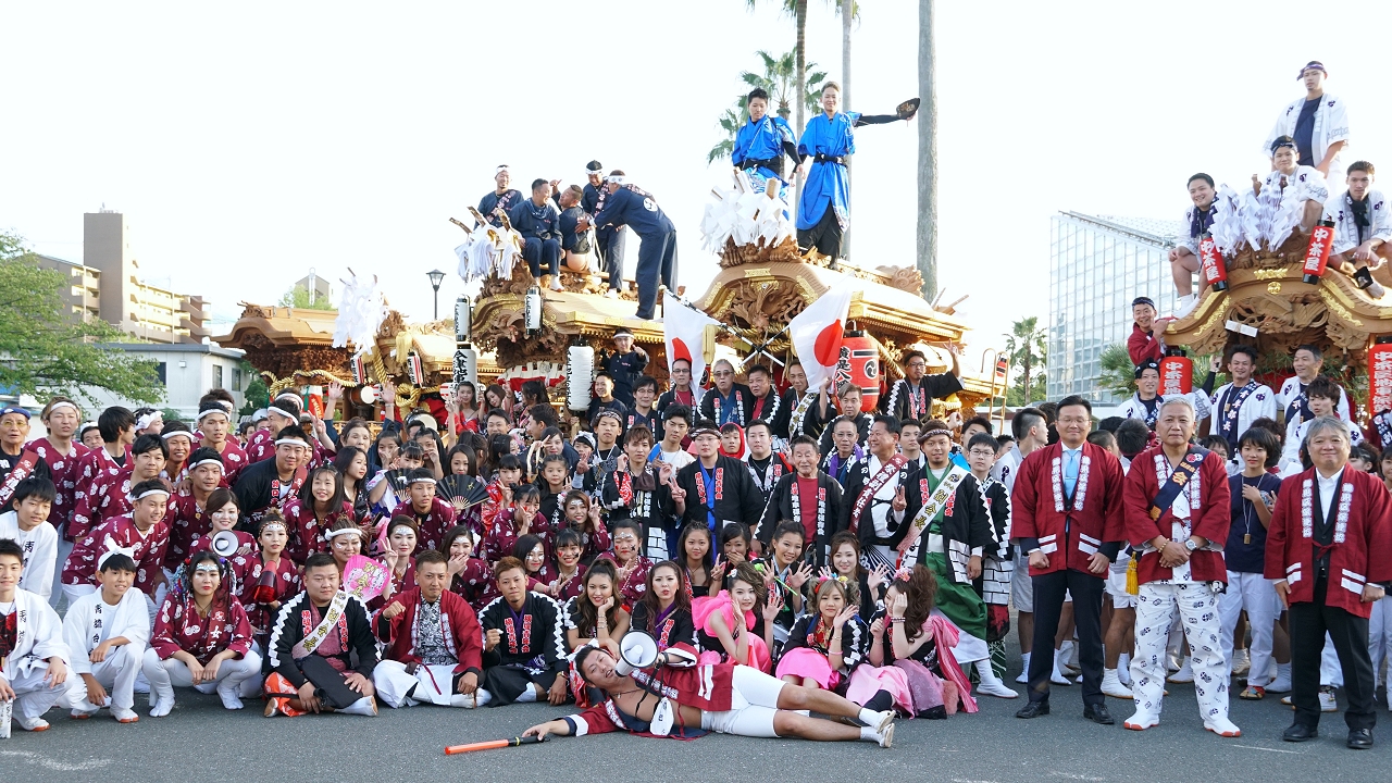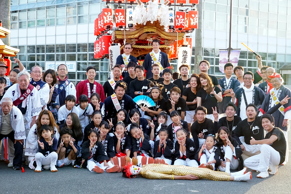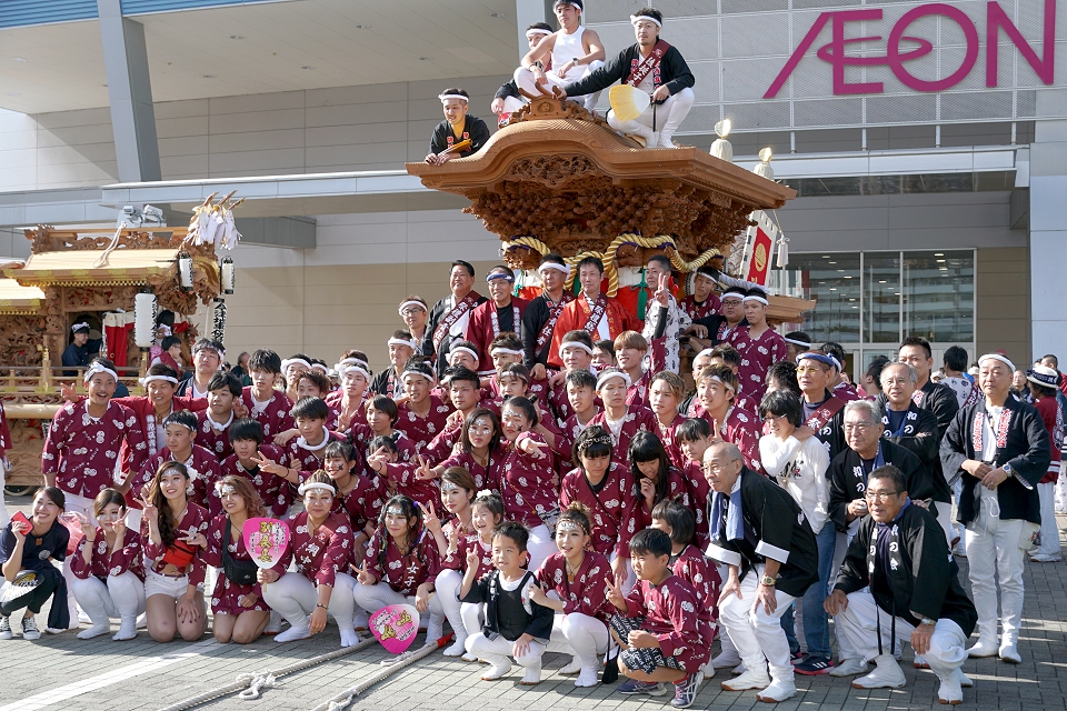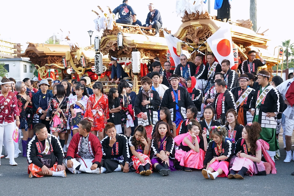 ここでちょこっとだんじりの集合写真に参加してみました。