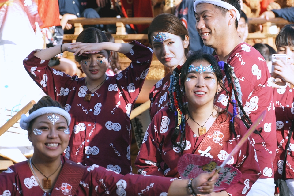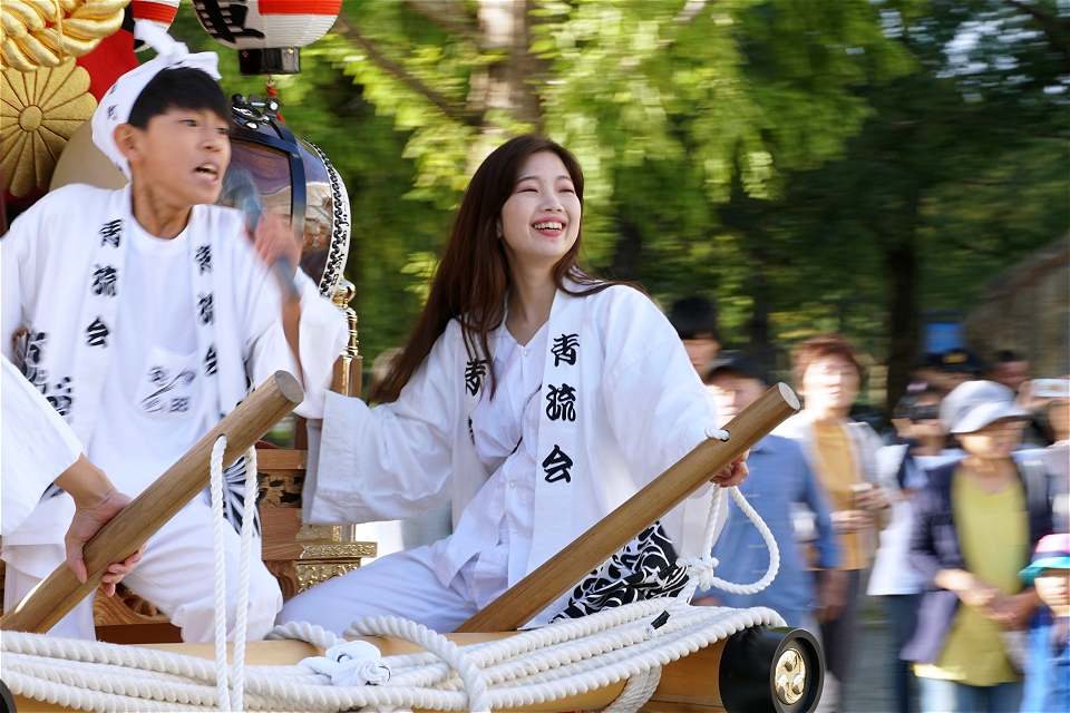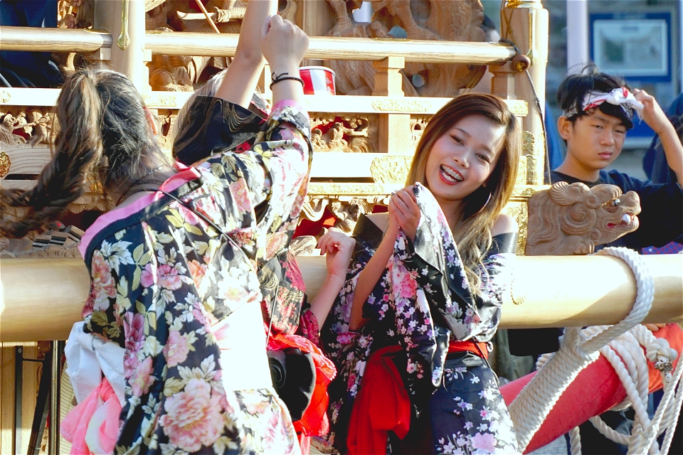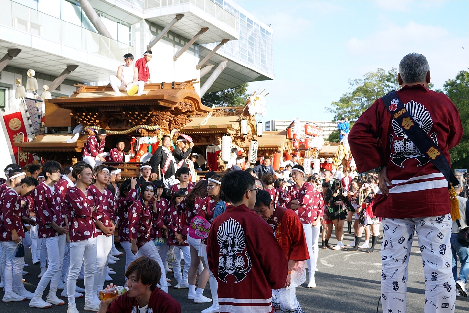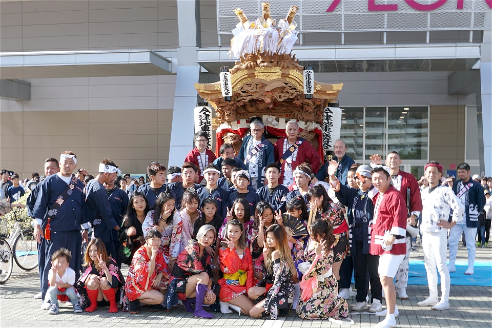 ここでちょこっとだんじりの集合写真に参加してみました。
