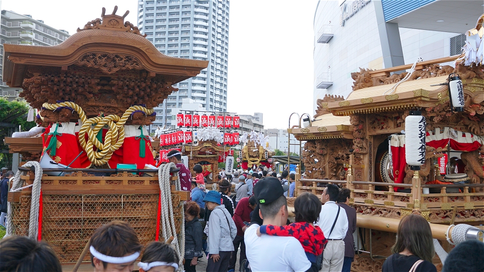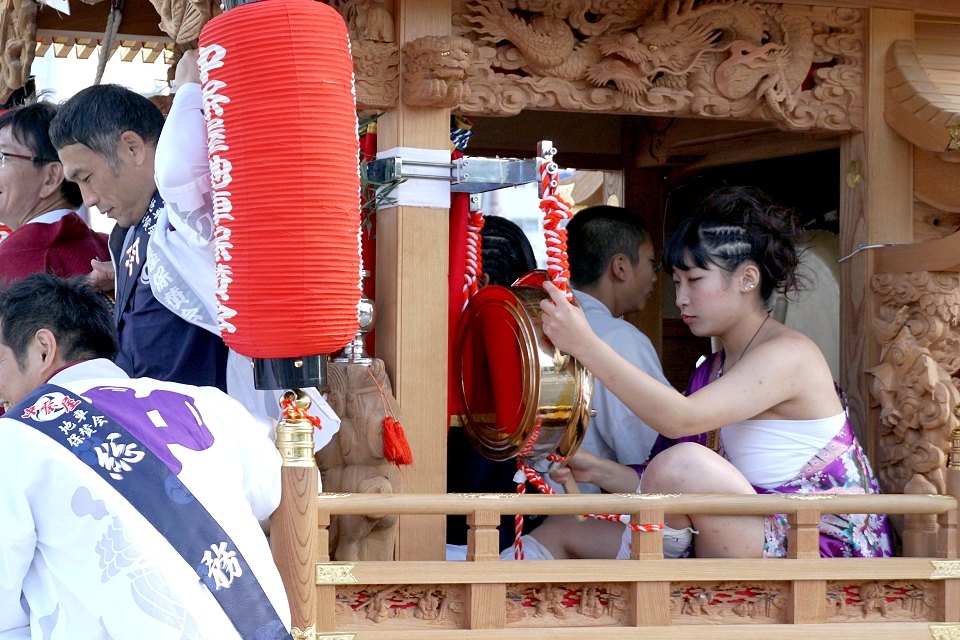 近くからだんじりを見ると、こまごまと彫刻も・・・