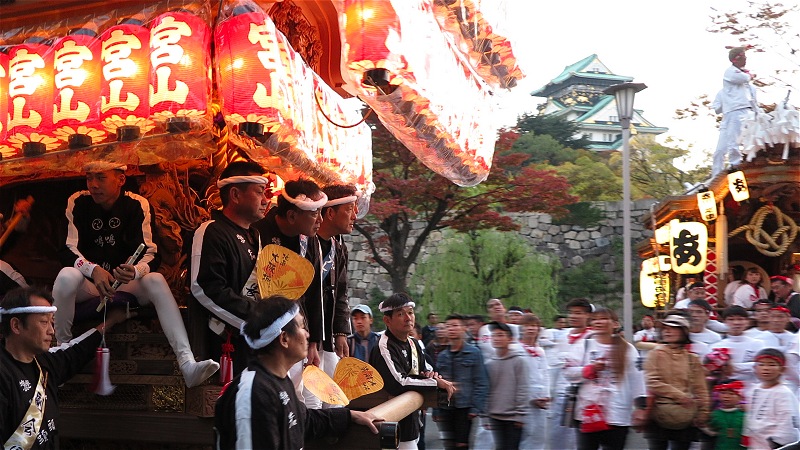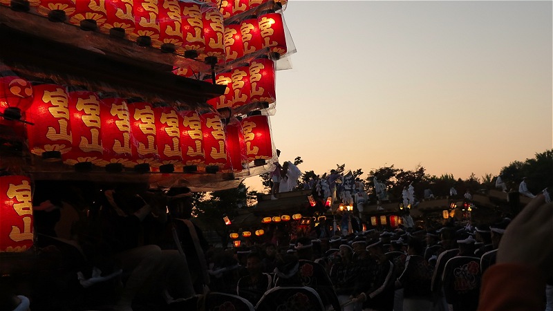 16:40、辺りが暗くなってきたので、ほとんどの地車の提灯にも灯りが・・・
