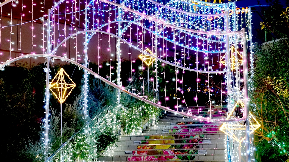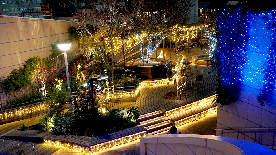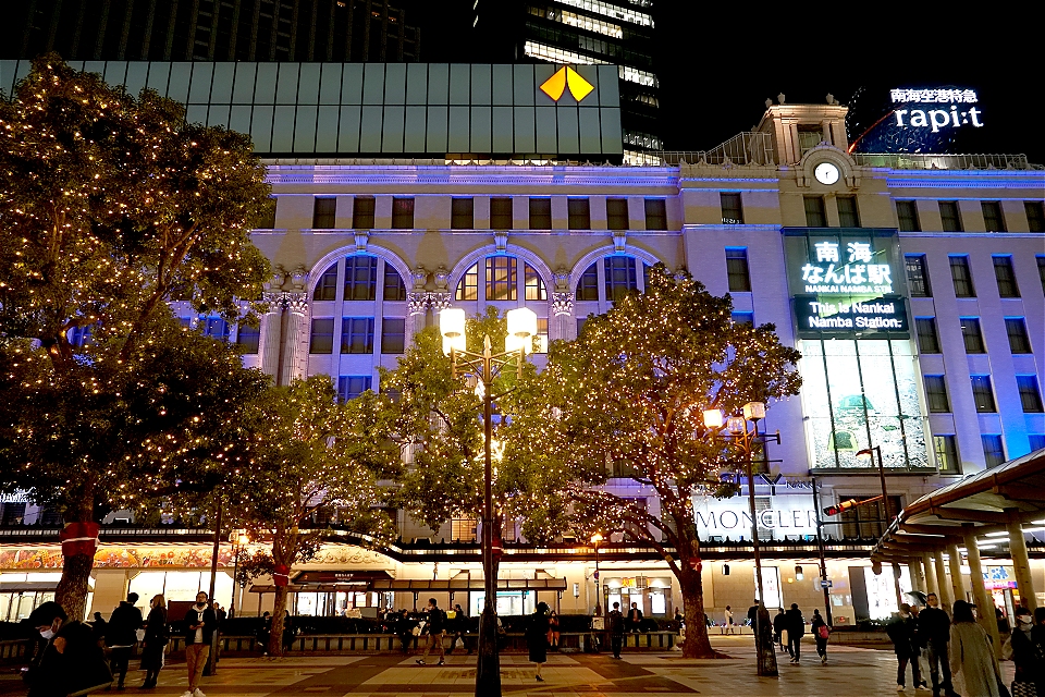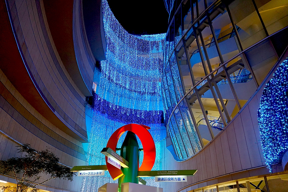 大阪・光の饗宴ということで、南海なんば駅にやってきました。 このなんばエリアでは「なんば光旅」ということで、LED70万個を使用しライトアップされてます。 その中でも特にイルミネーションが奇麗ななんばパークスに・・・