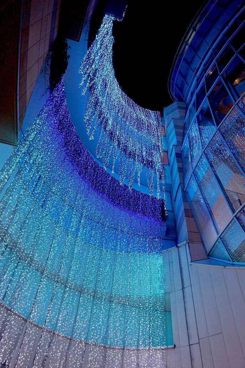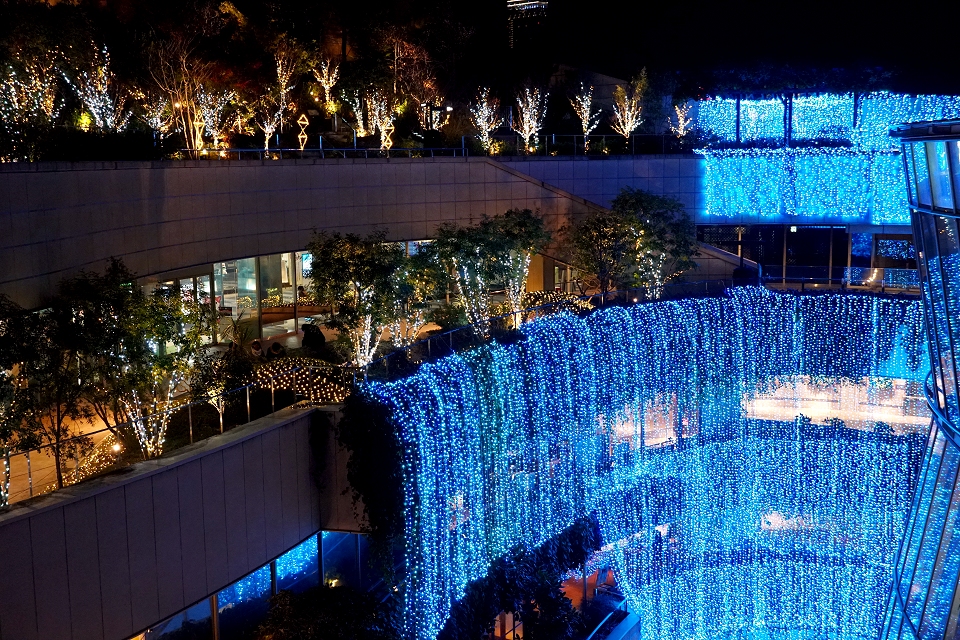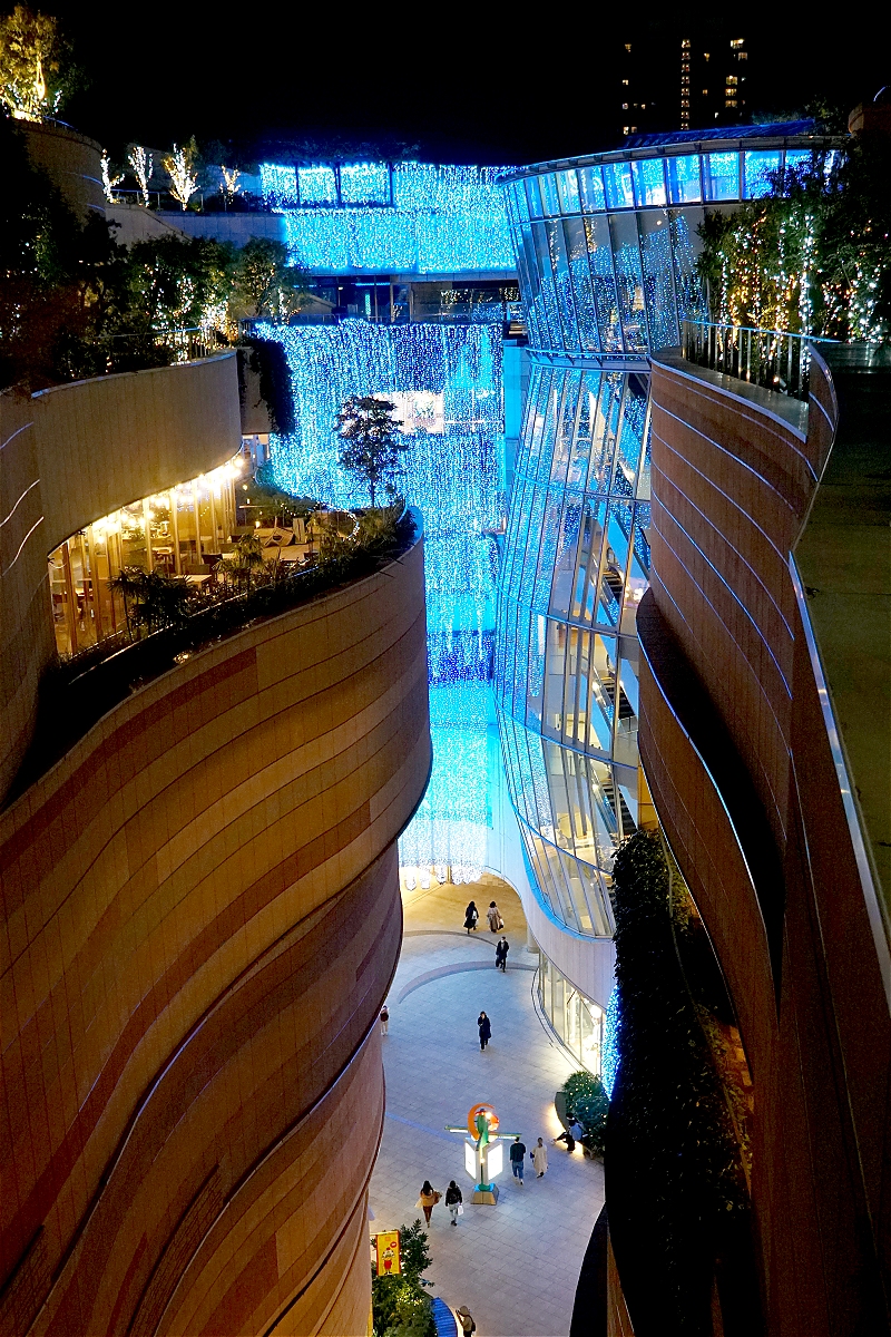 上からも撮ってみました・・・ 9階から2階までの「光の滝」です