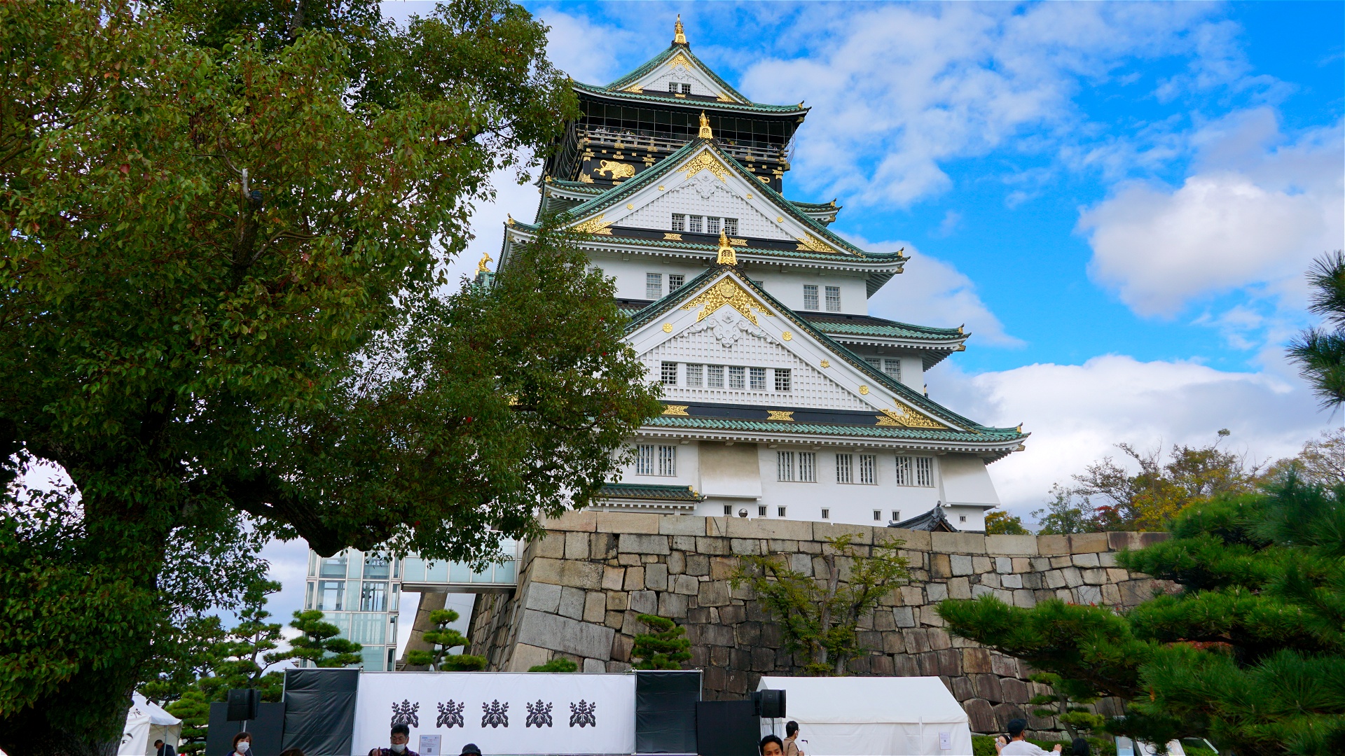 晴れたり曇ったり、時折冷たい風も・・・ そんな中、午後1時少し前、大阪城天守閣の下に到着しました。