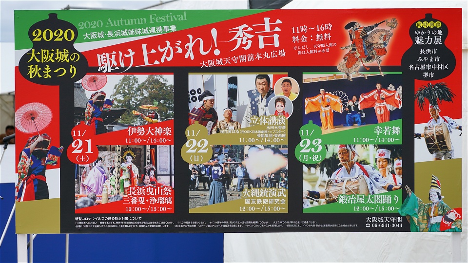 なぜここに来たかというと、こんなイベントが・・・ 2020 大阪城の秋まつり 駆け上がれ!秀吉 となってます。 見出しからすると、秋祭りの一部なんでしょうか?少しインパクトが・・・