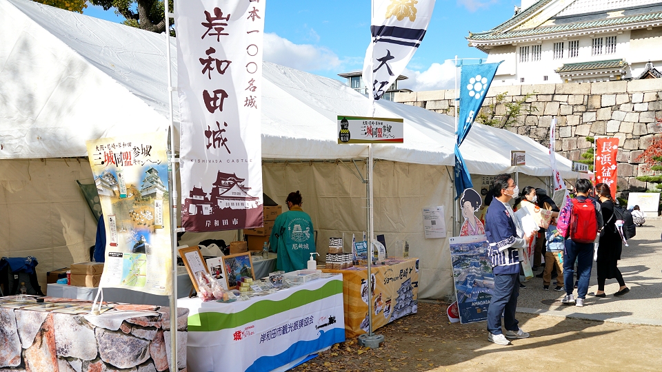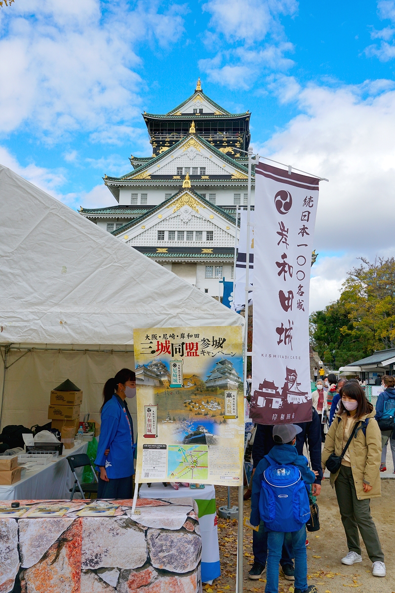 大阪城にゆかりのある地域からも応援出展「出店?」が並んでます。 大阪城、岸和田城、尼崎城・・・「三城同盟」というのがあるようです。