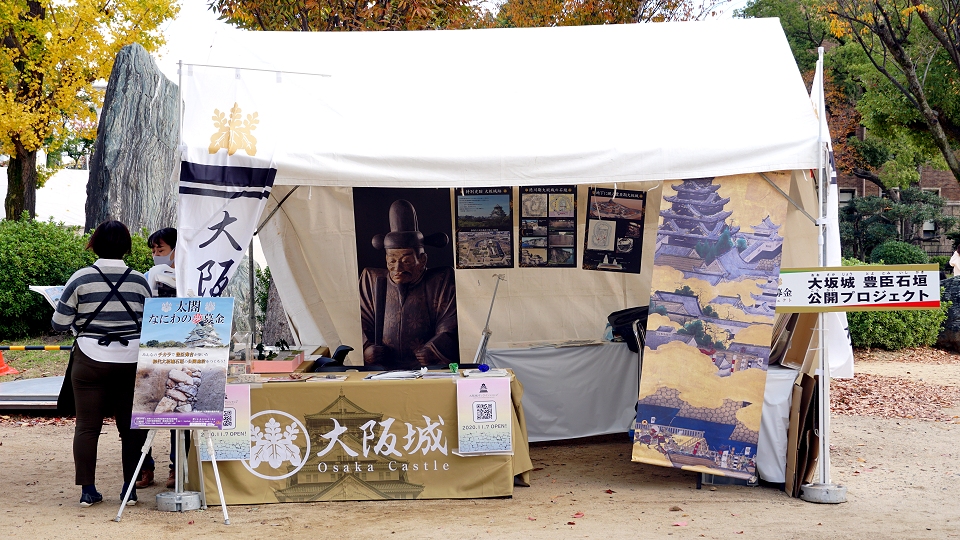 さてこちらは大阪城・・・と言っても石垣公開プロジェクトブースです。 今の大阪城、秀吉さんの大坂城、使い分けているのかなぁ・・・