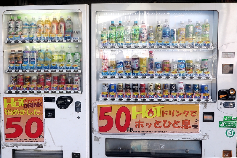 その前にちょこっと飲み物を・・・商店街入り口の自販機をズームアップ・・・ 自販機にしては高くないような気が・・・