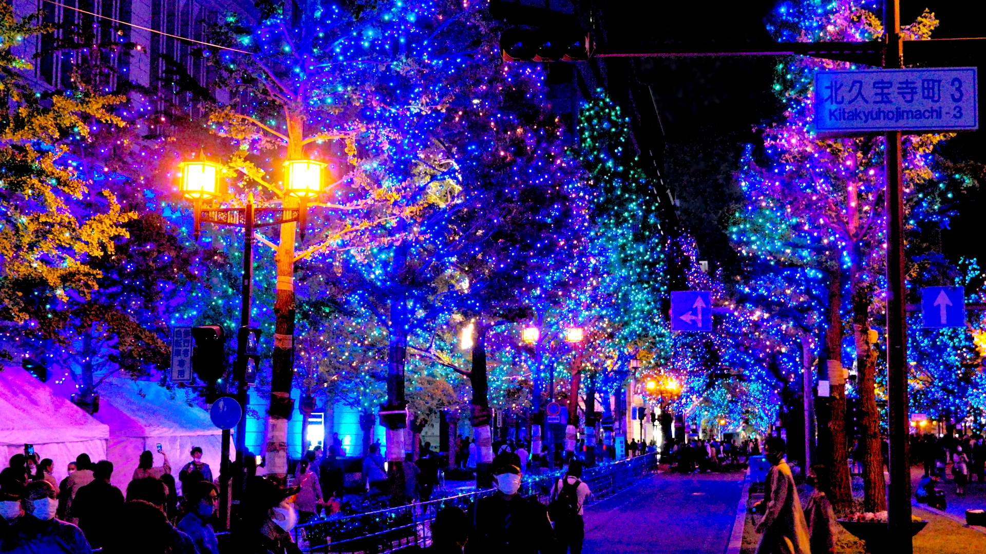 最後にライトアップされた御堂筋、北久宝寺通りの近辺を・・・