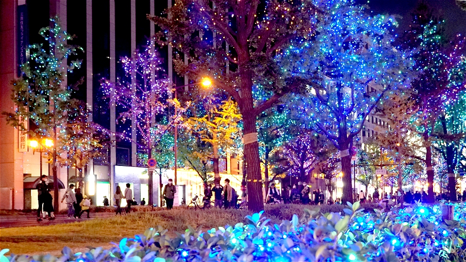 多分御堂筋の中でもこのあたりのライトアップが一番きれいかも 五色のLEDが全部そろってます。