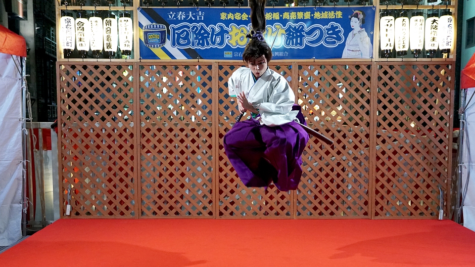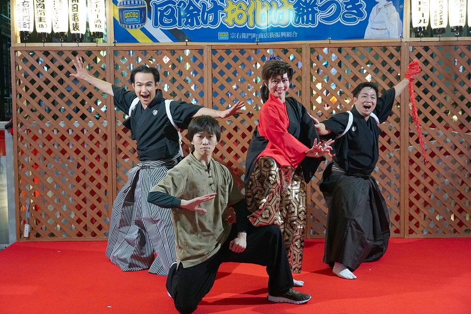 舞台ではいろいろなパフォーマンスが・・・ 助太刀屋 十八番(すけだちや おはこ)の殺陣ショーはなかなかのものです