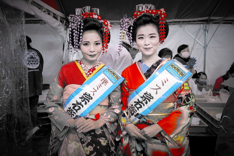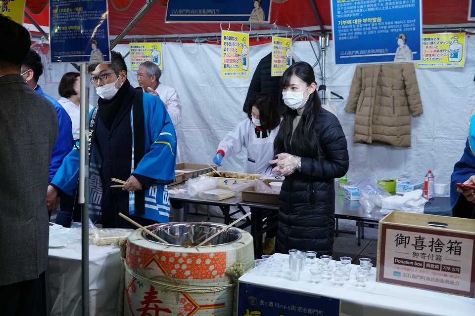 実はお酒をふるまってくれた人は昨年のミス宗右衛門町だったのです 何かとご縁のある方で、お別れの際もピースサインを・・・