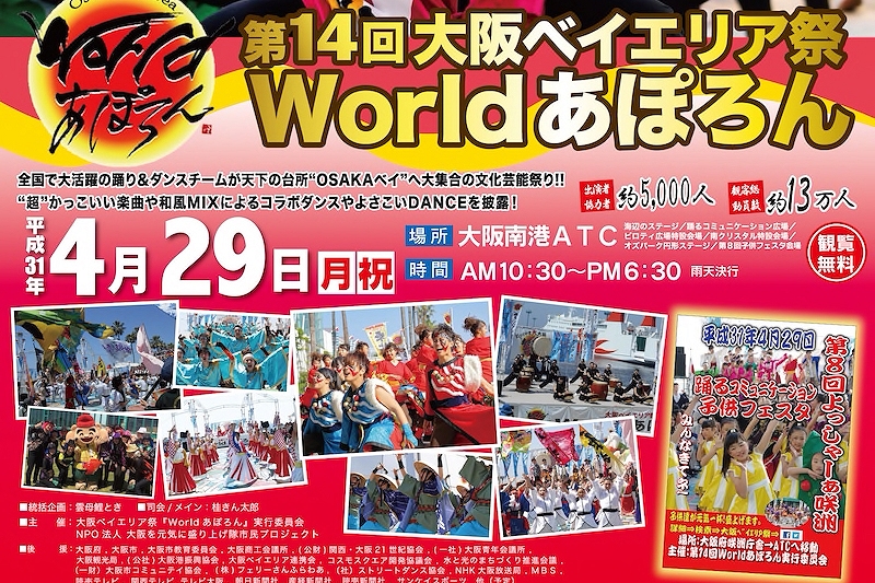 15周年記念 第15回大阪ベイエリア祭 Worldあぽろんは5月10日開催予定です 連休も終わってしまったというのに・・・ それも平成時代のお祭りを・・・