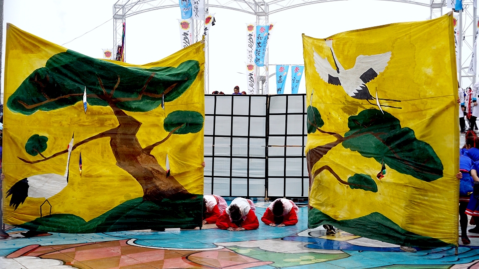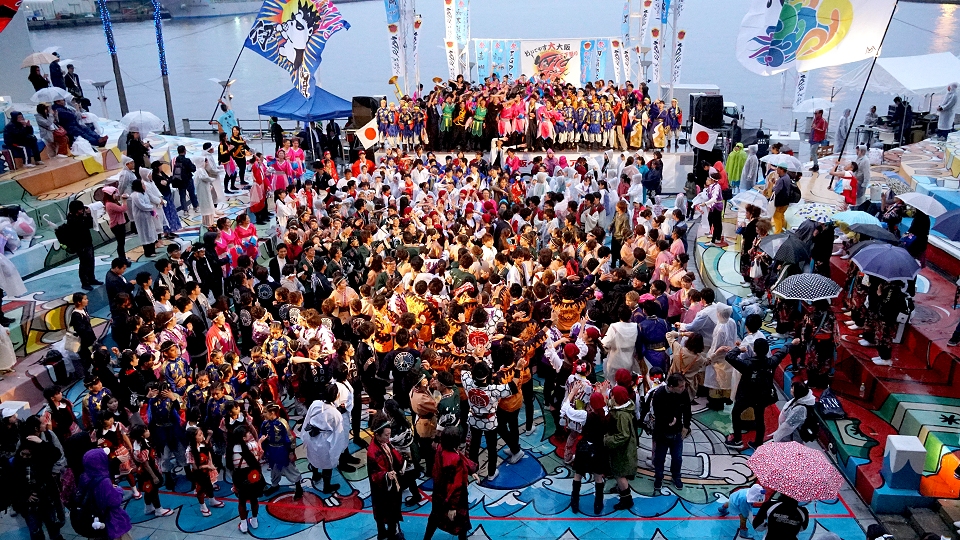 そして最後に、出演者も見学者もみんなで「総踊り」を・・・ 雨が降ってなければ、会場はどうなっていたことやら・・・