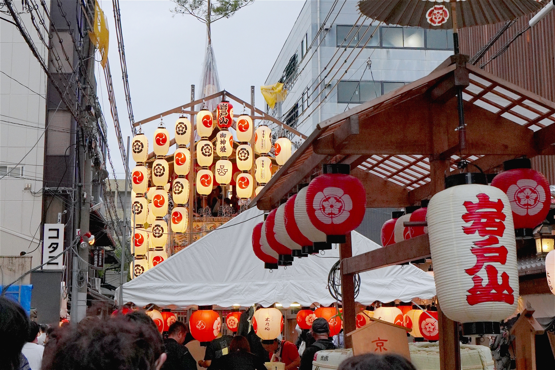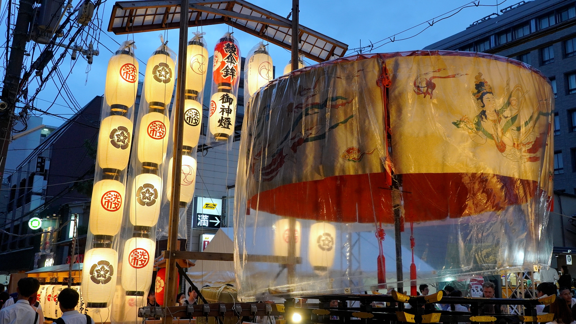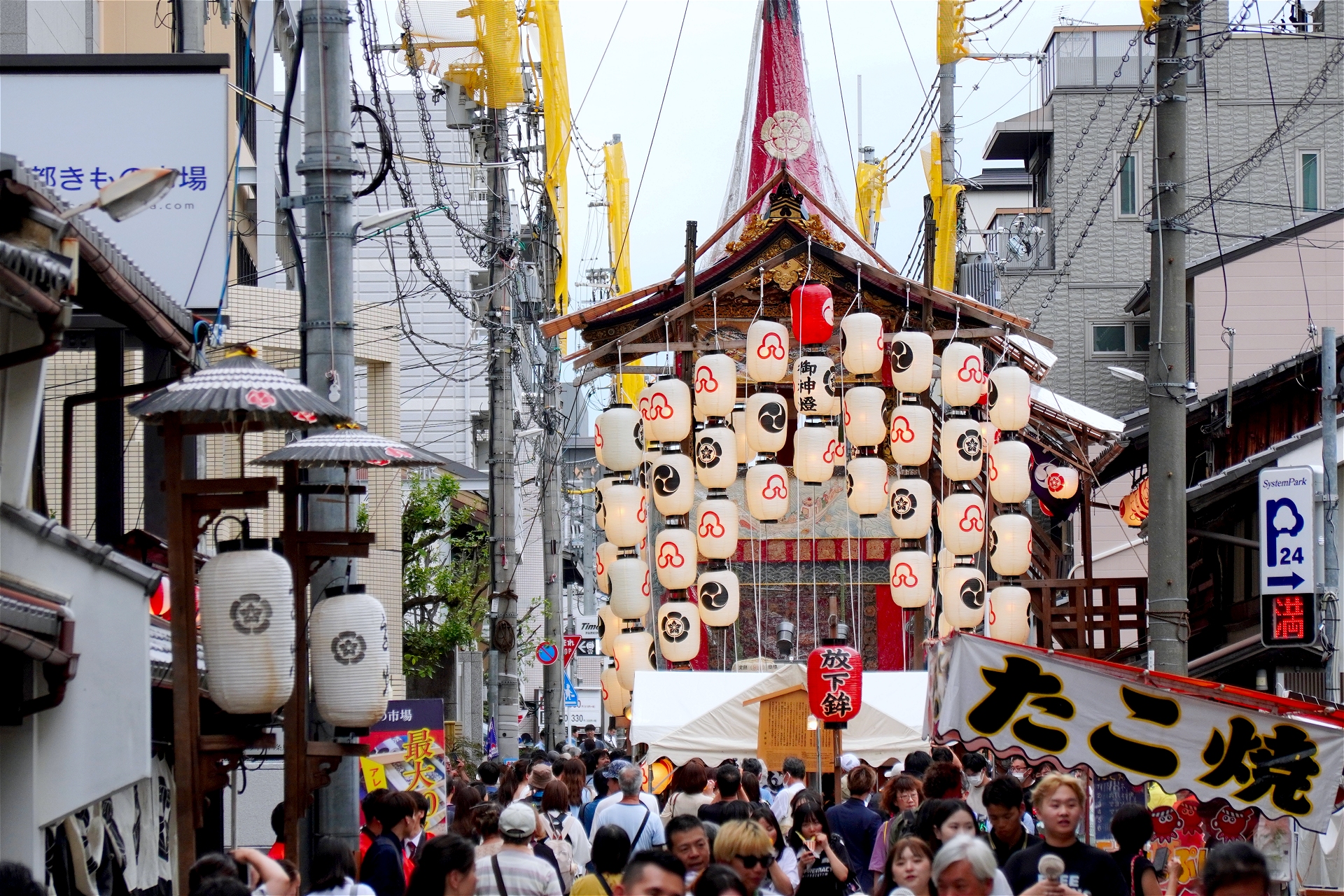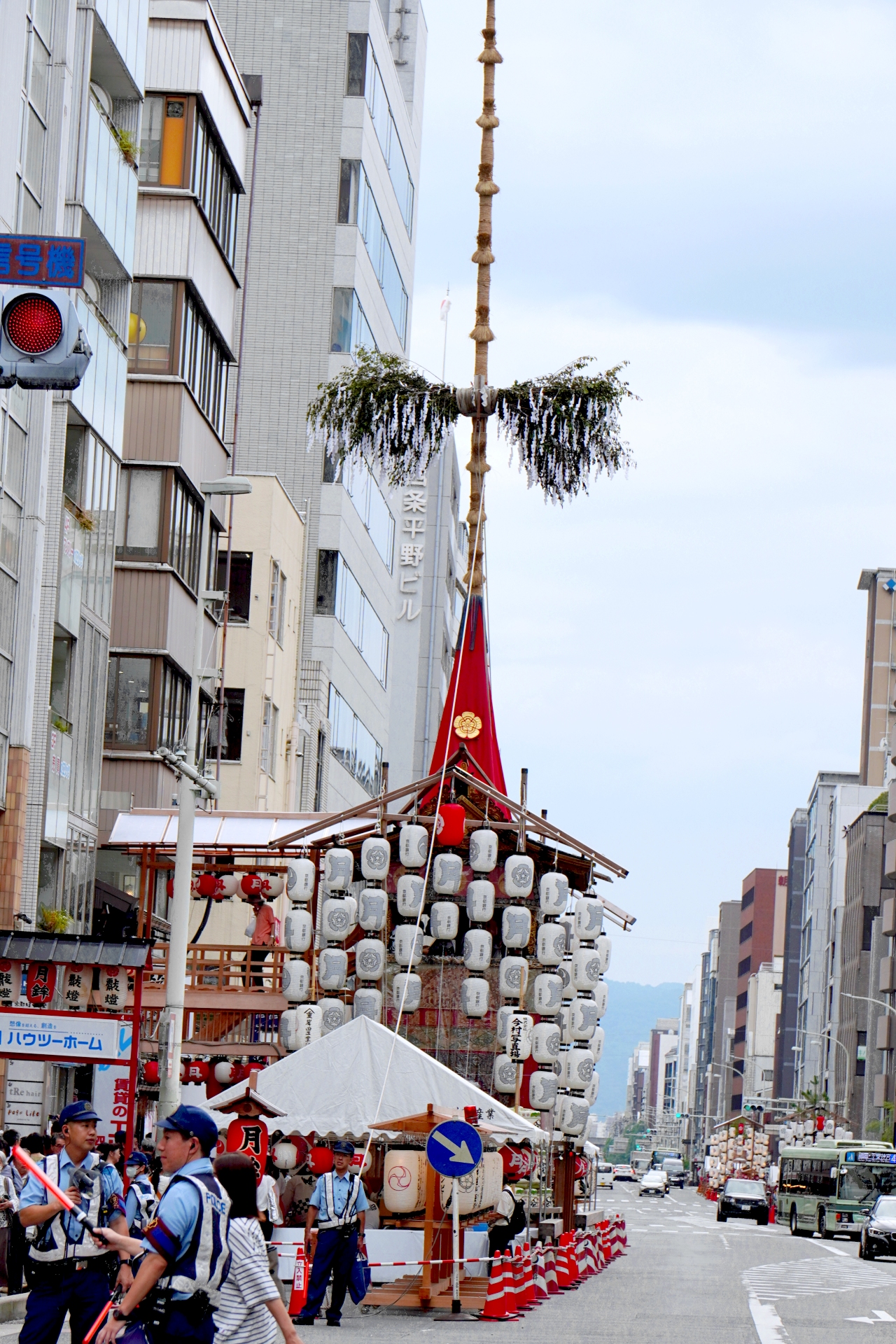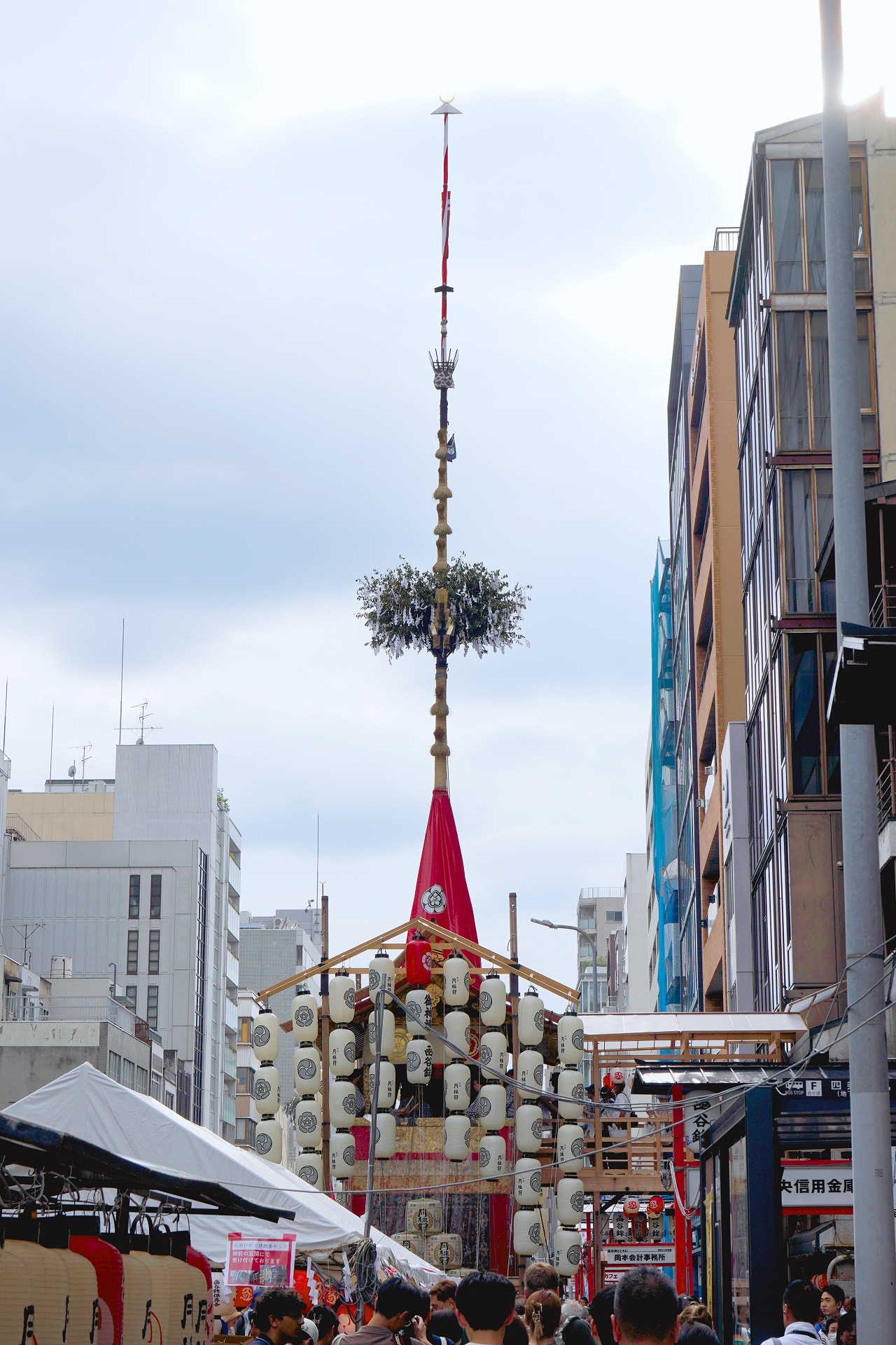 地下駅から地上へ上がると四条通、そしてそこにはひときわ大きい山鉾が… 函谷鉾です