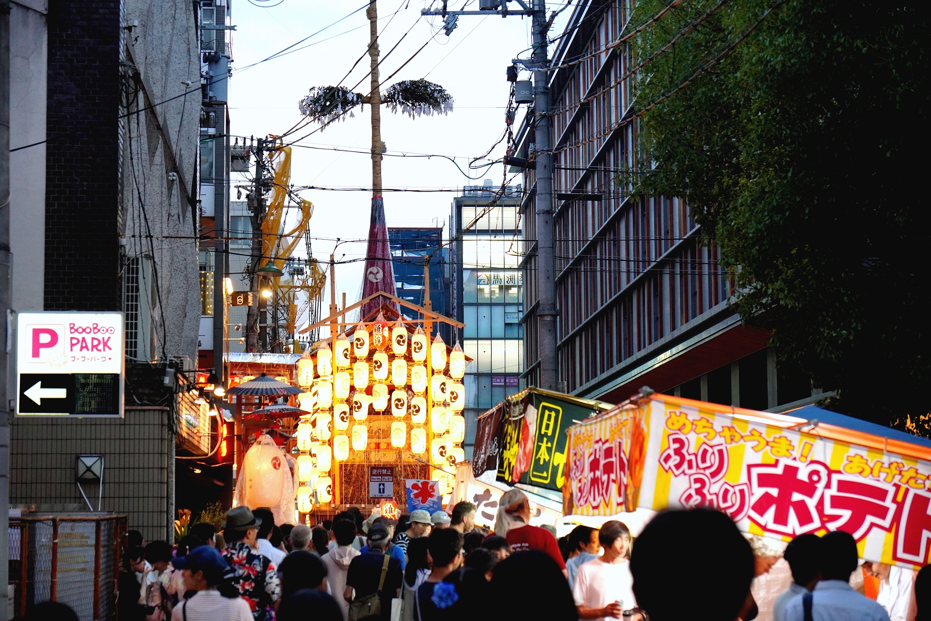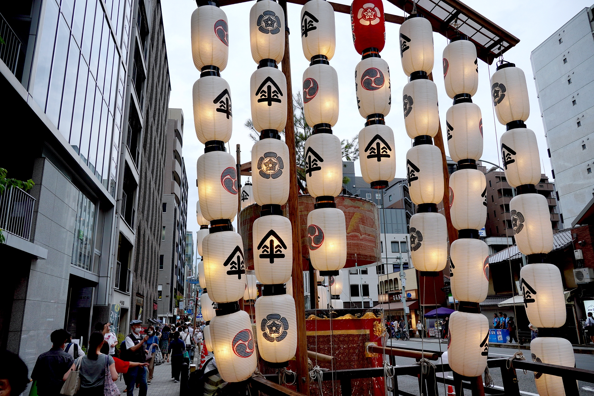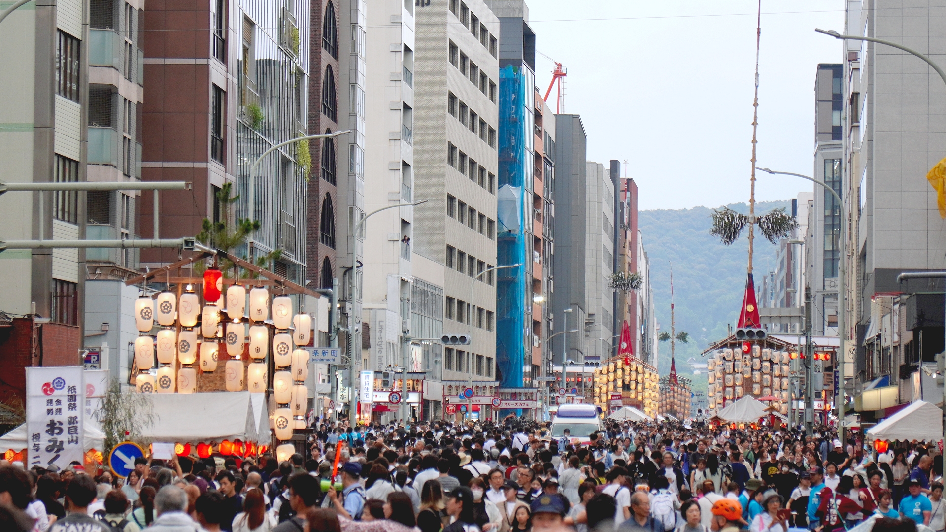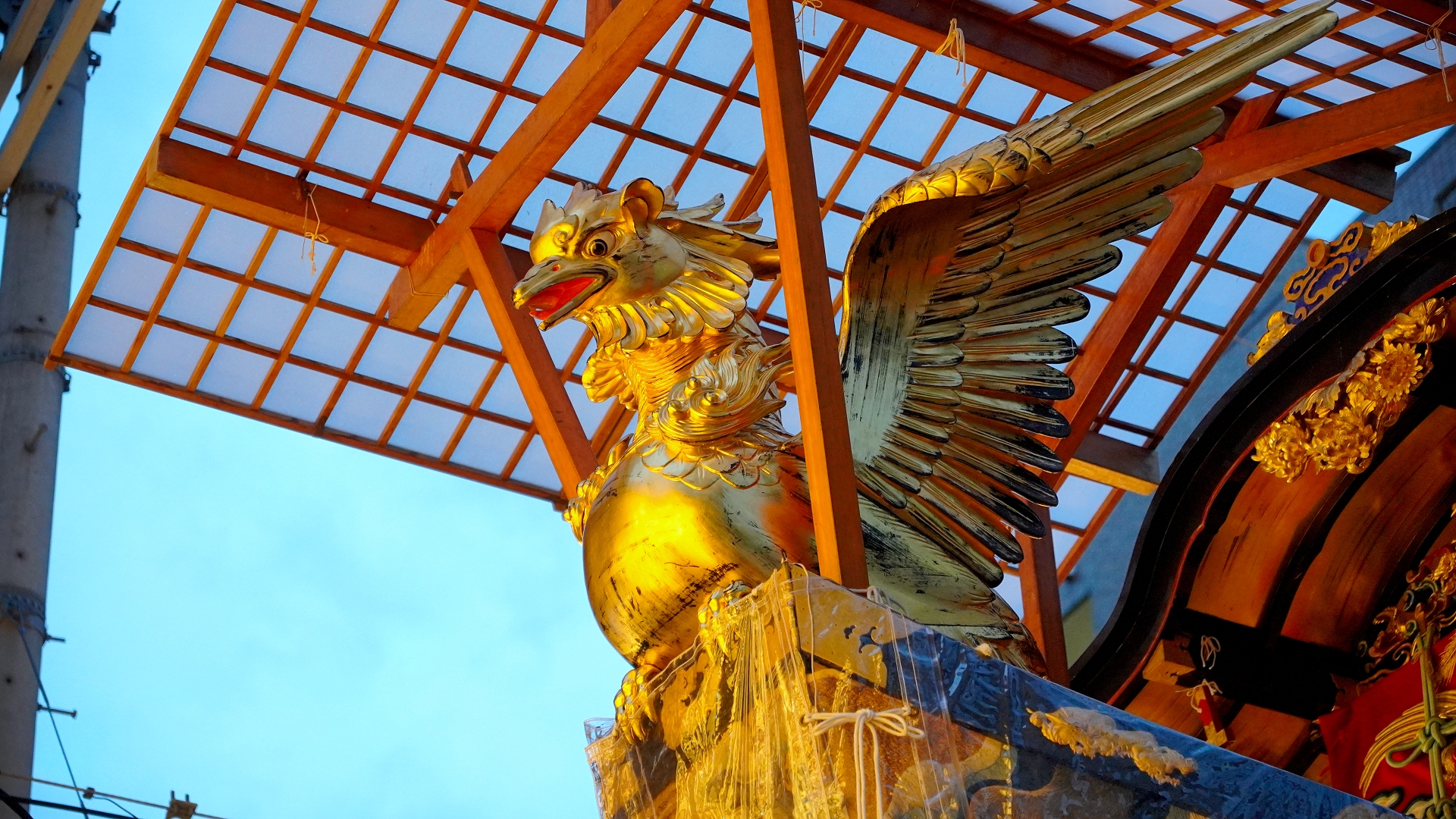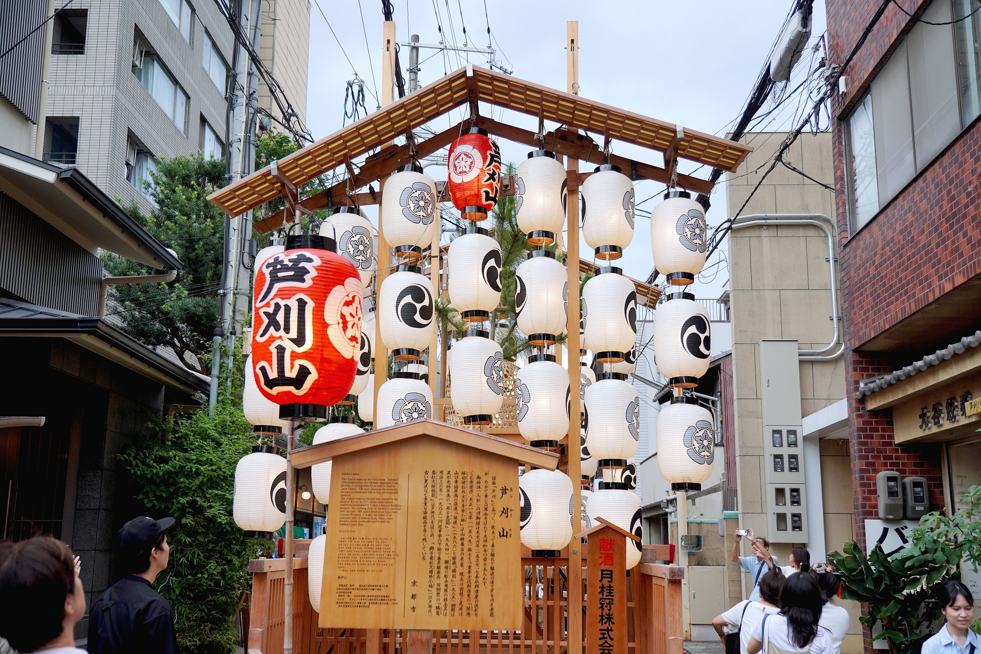 地下駅から地上へ上がると四条通、そしてそこにはひときわ大きい山鉾が… 函谷鉾です