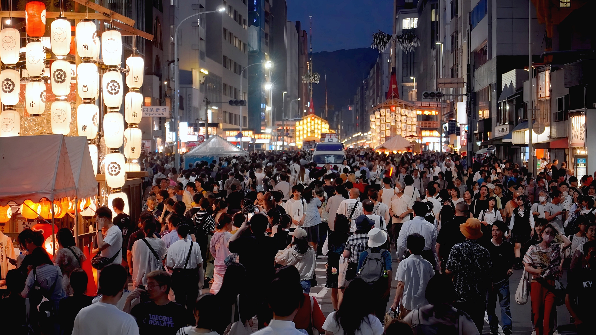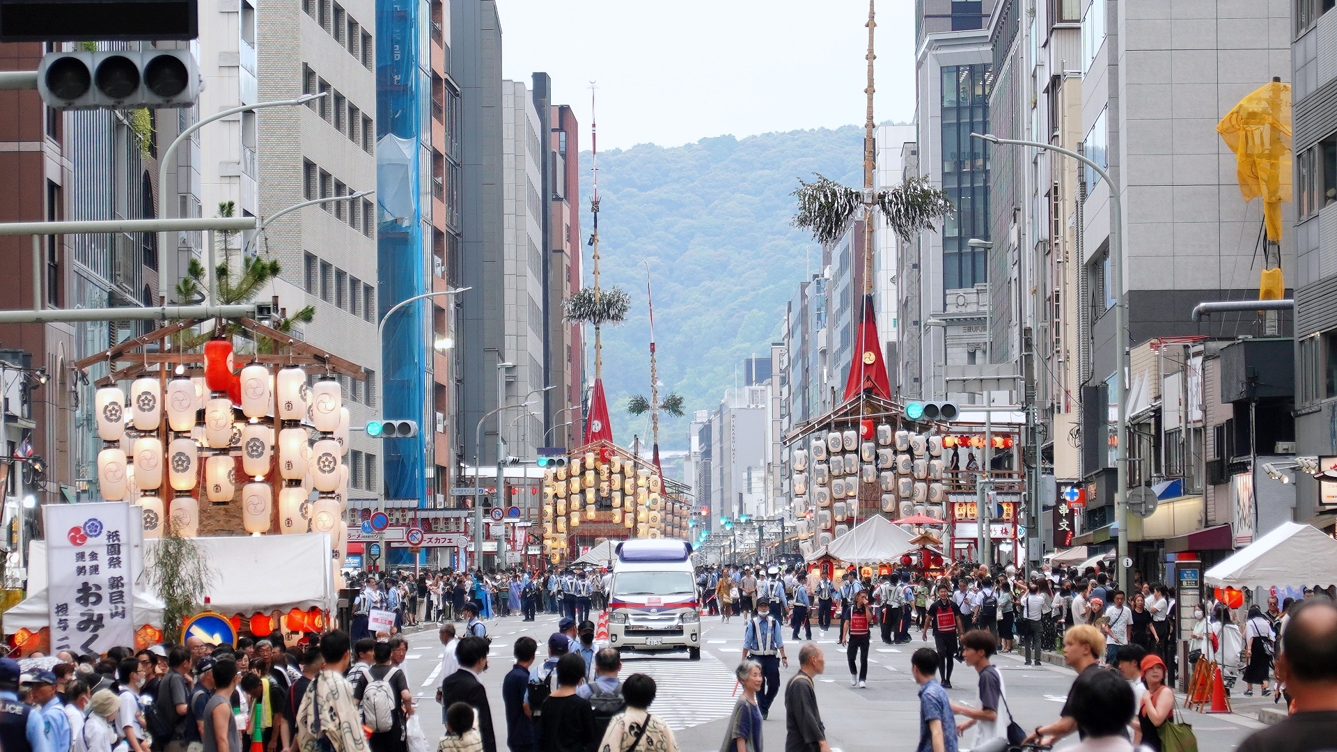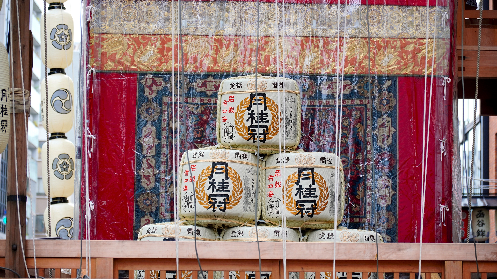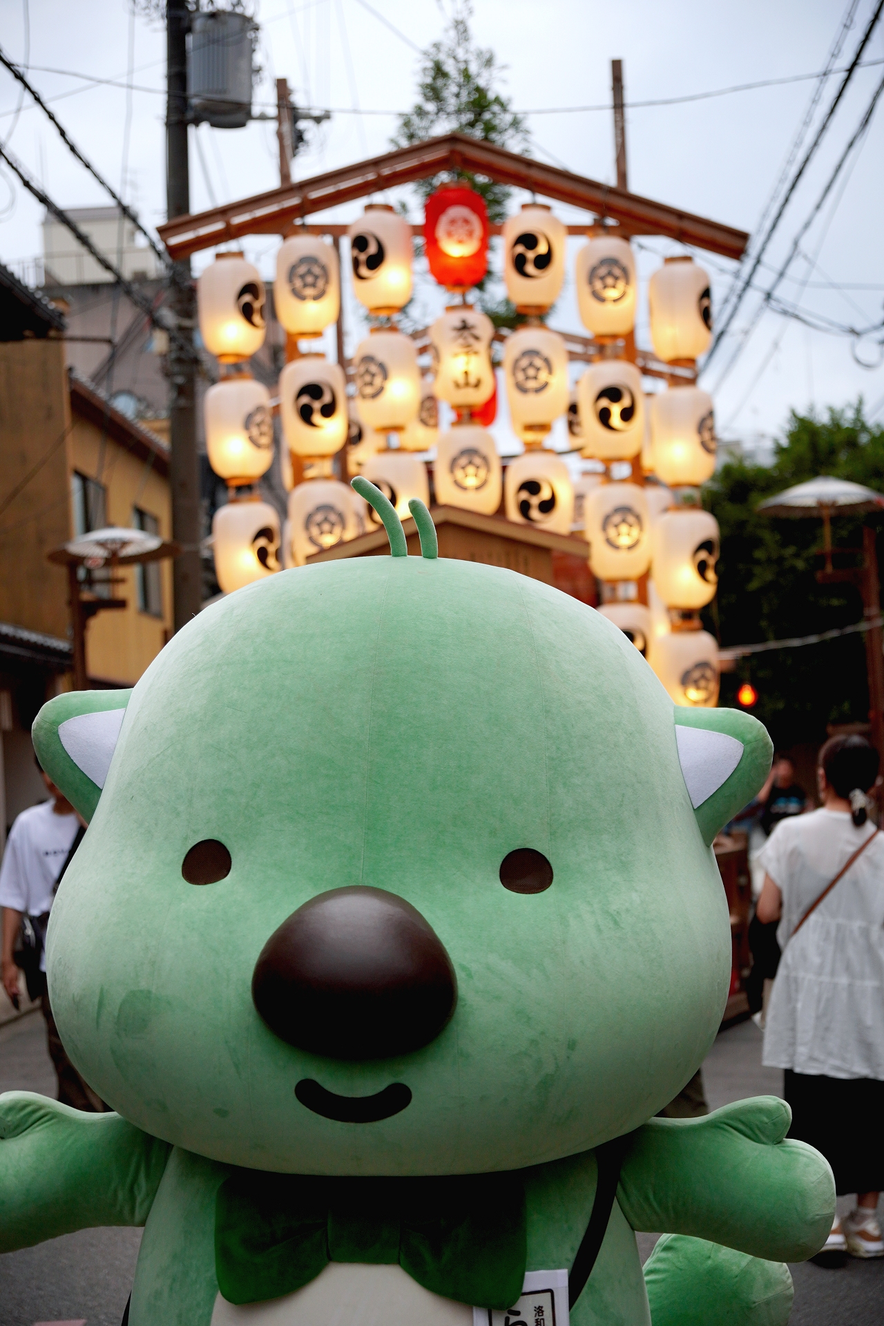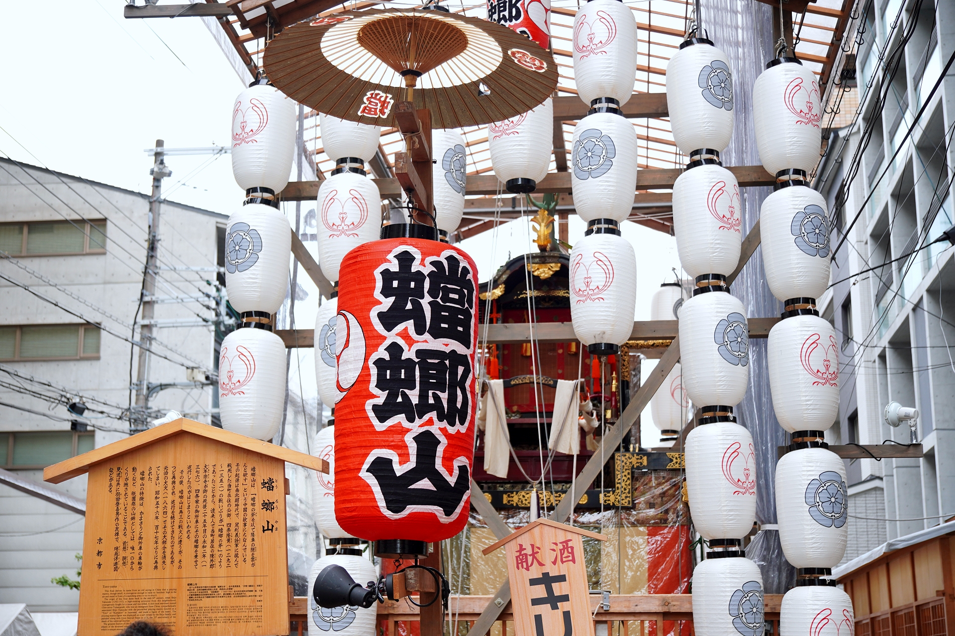地下駅から地上へ上がると四条通、そしてそこにはひときわ大きい山鉾が… 函谷鉾です
