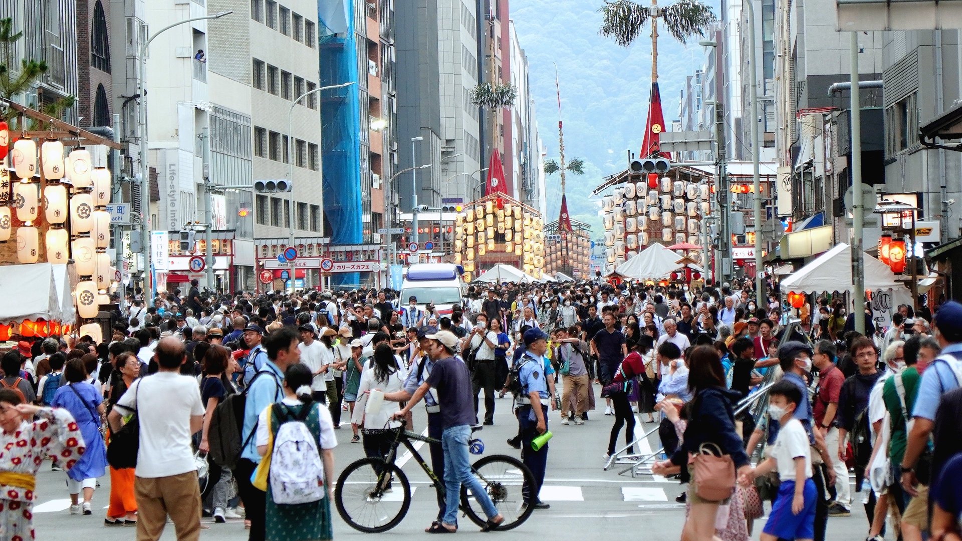17:05、四条通りを横断、まだ交通規制はかかっていません
