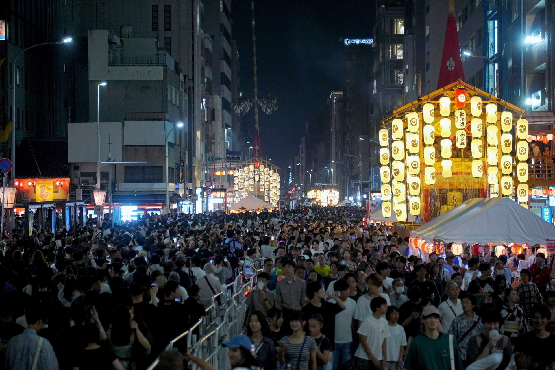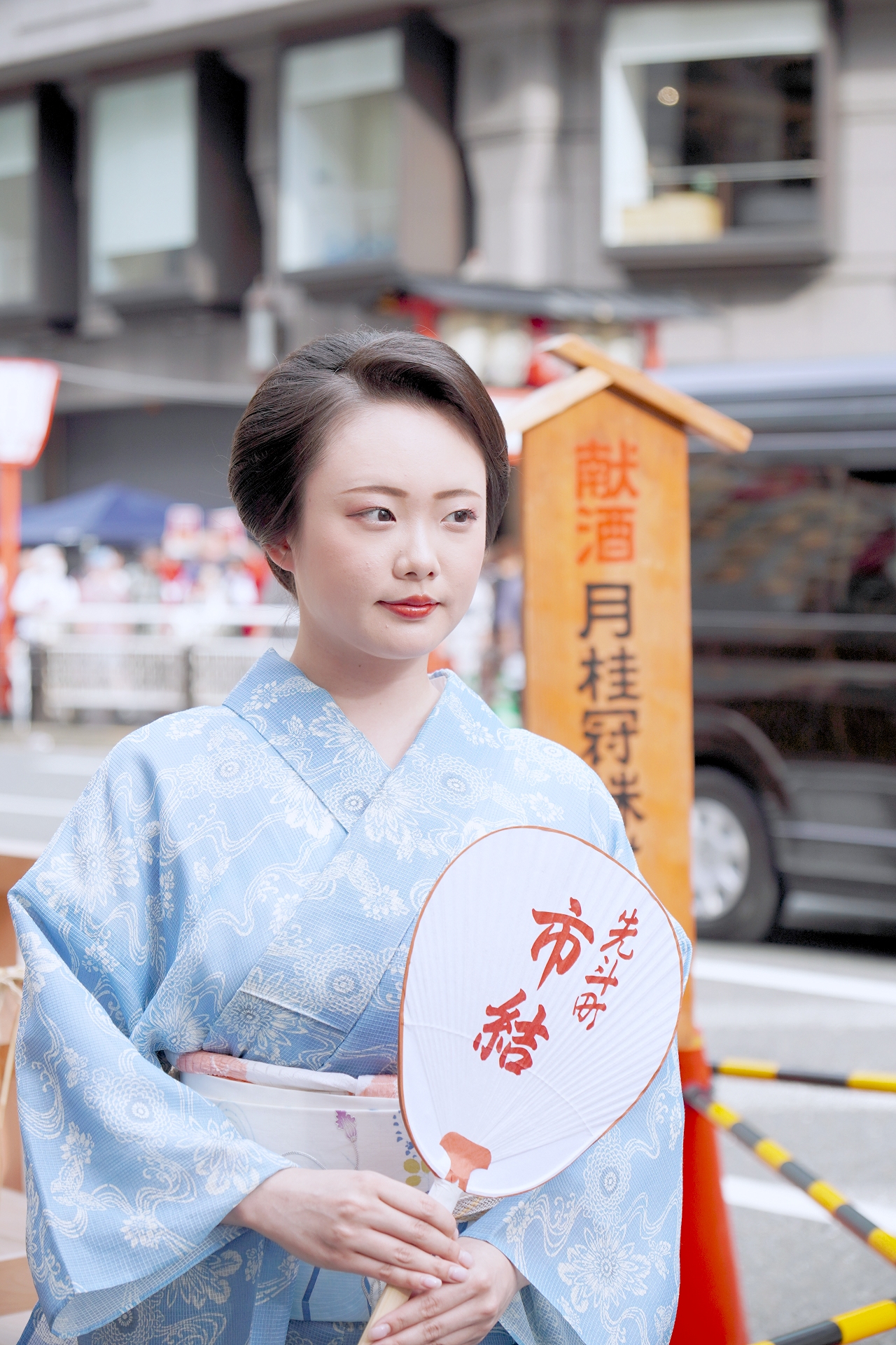鉾の前には芸妓さんも…プロモーションビデオでも撮ってたのかな…