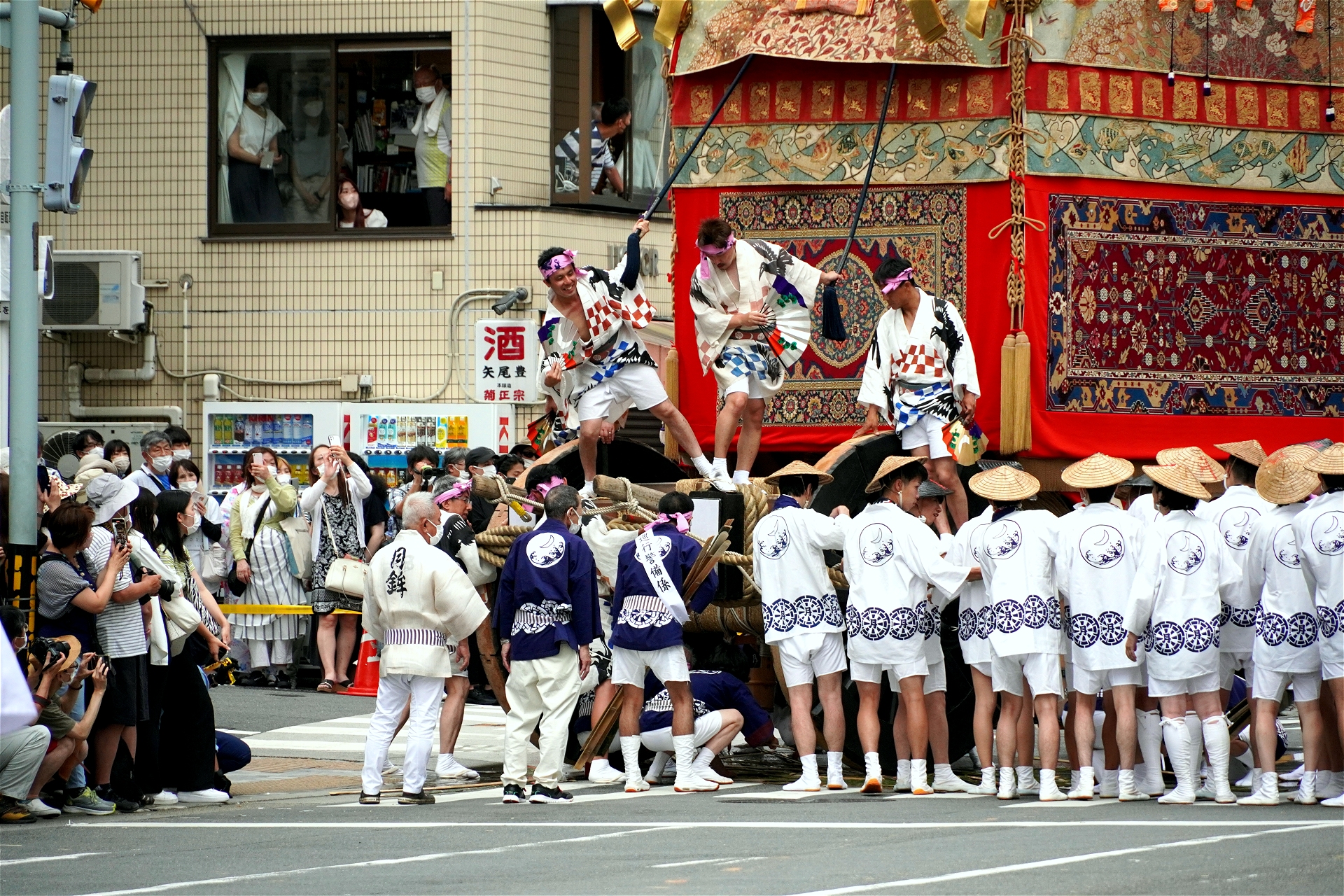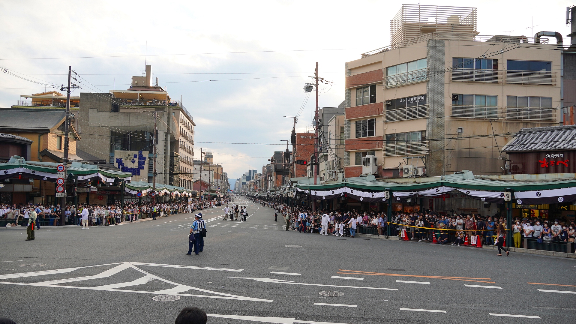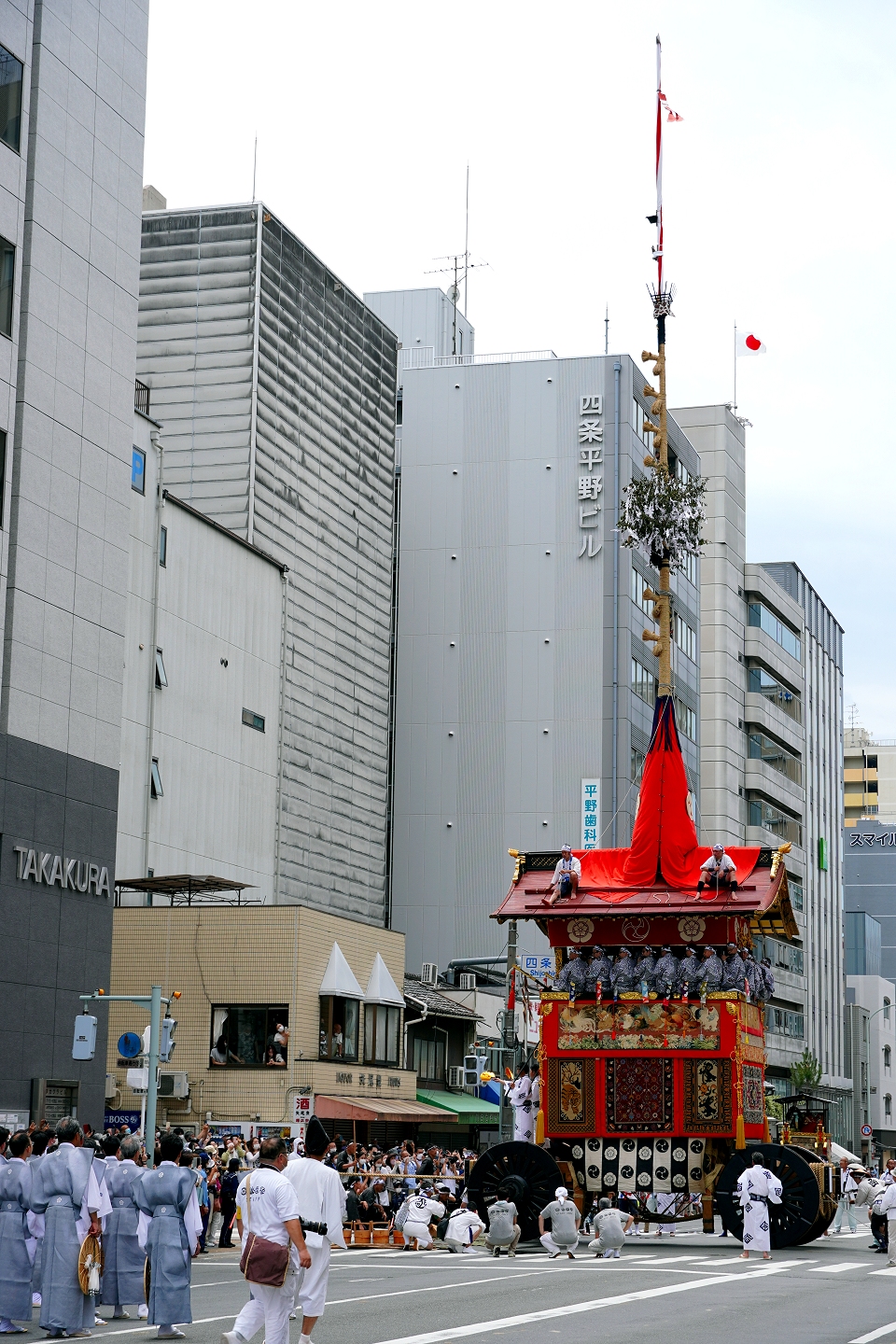 13:18、四条通に到着 ちょうど先ほどの函谷鉾が辻回しをしているところでした。