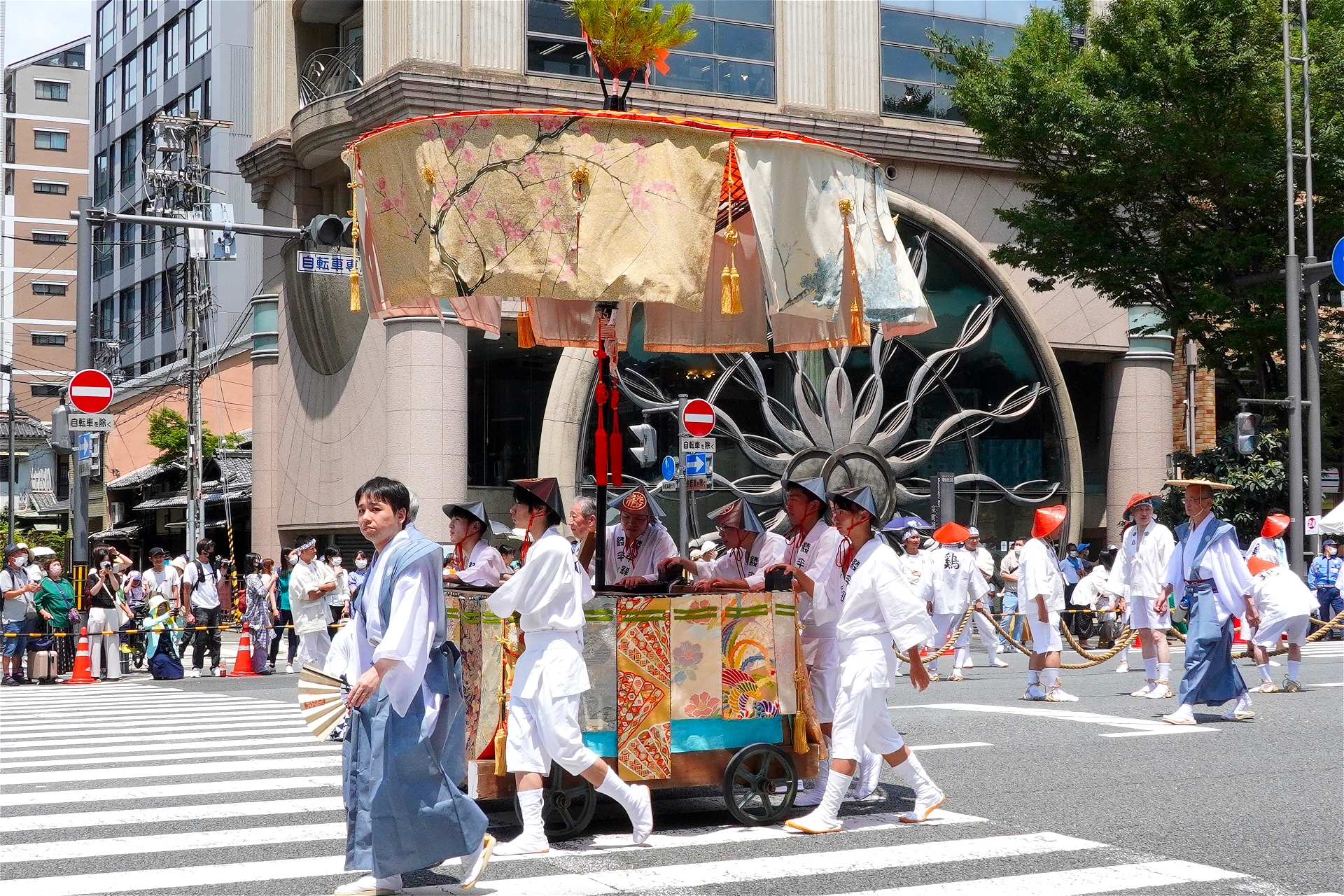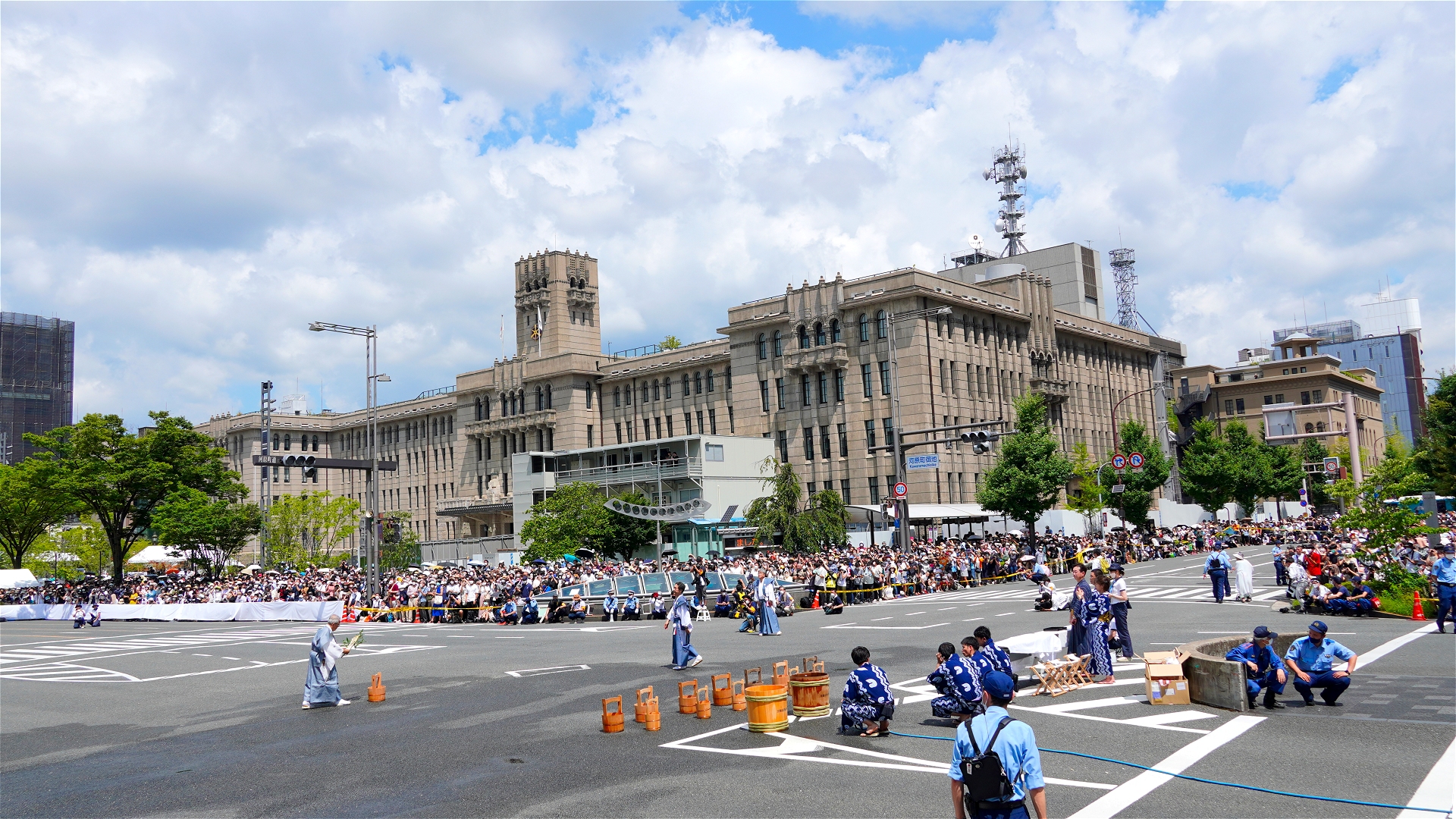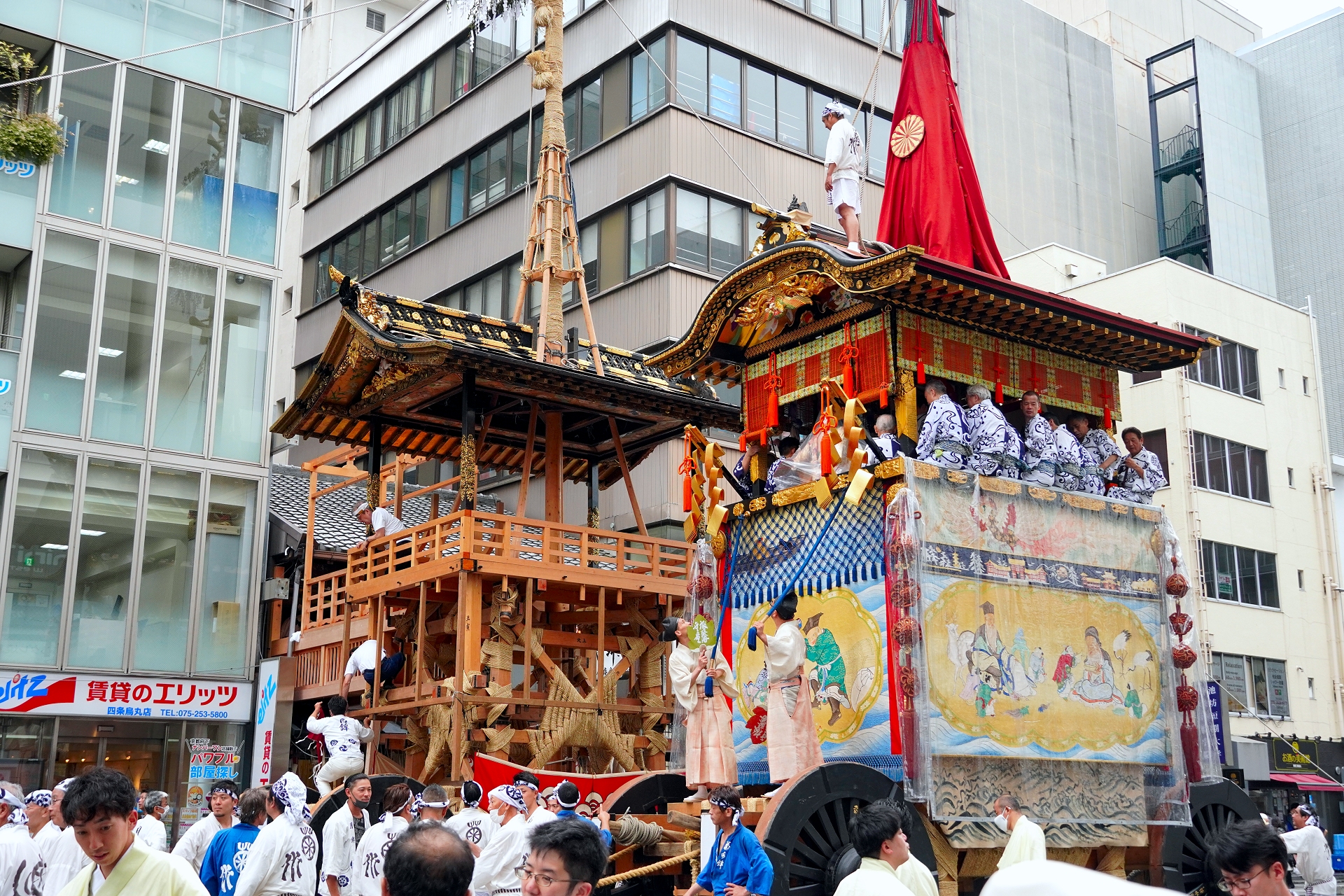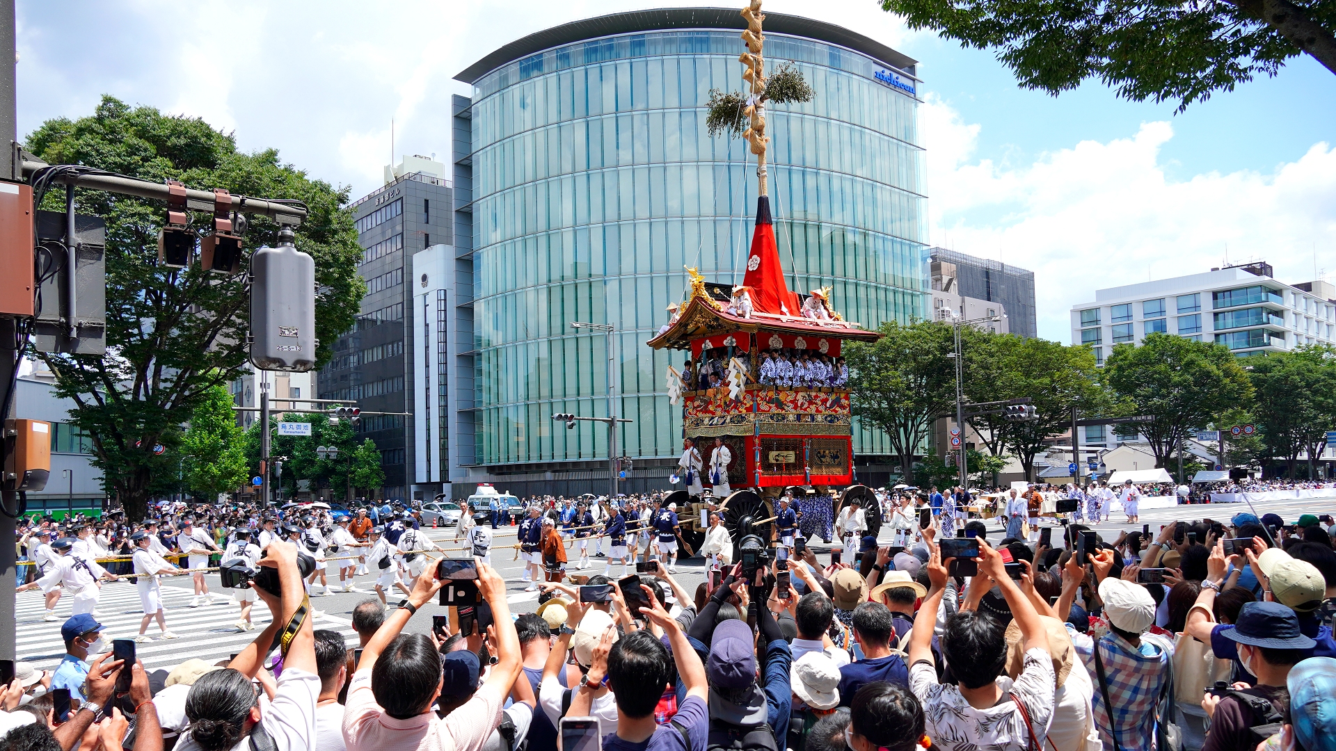 13:18、四条通に到着 ちょうど先ほどの函谷鉾が辻回しをしているところでした。