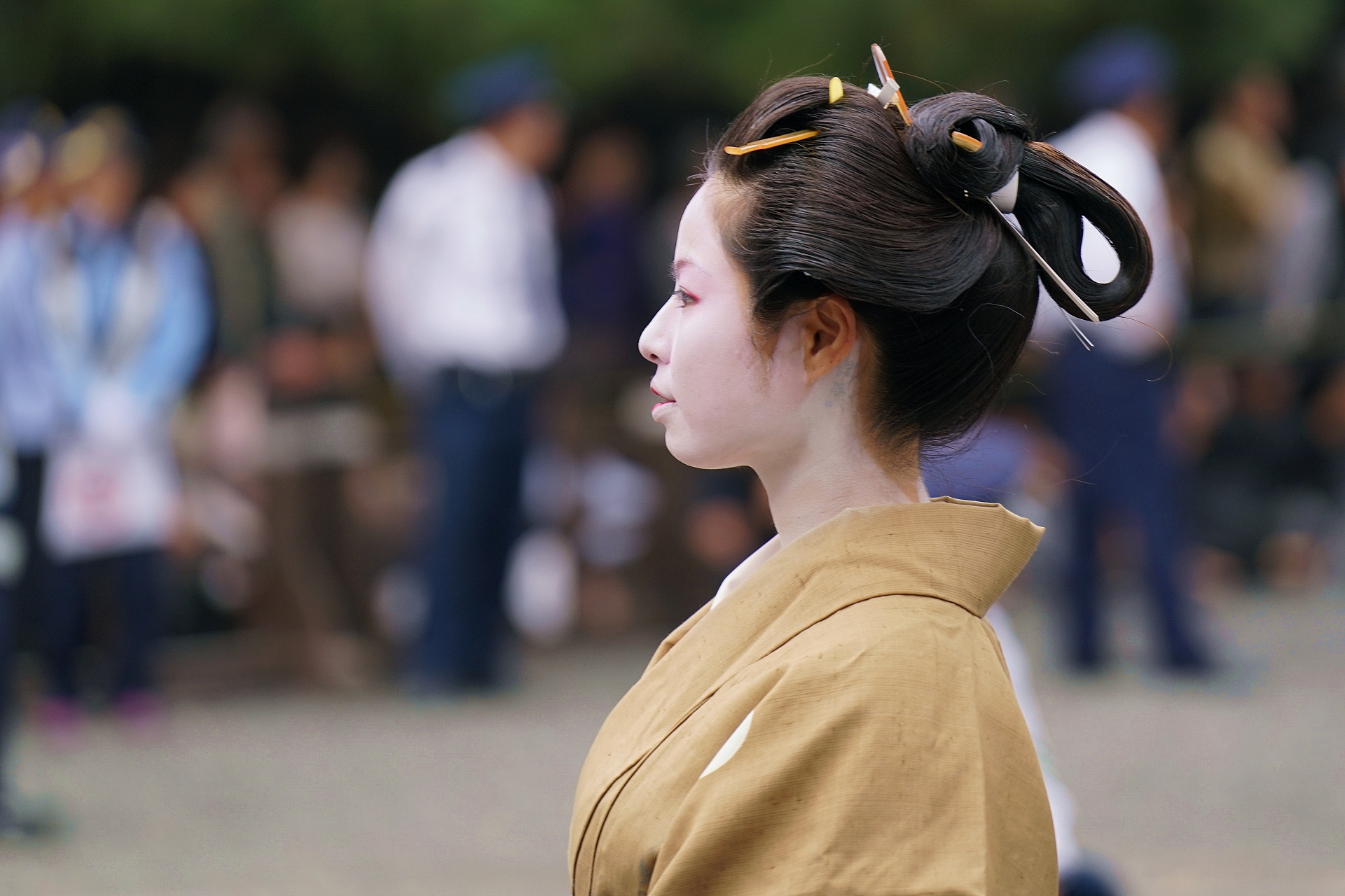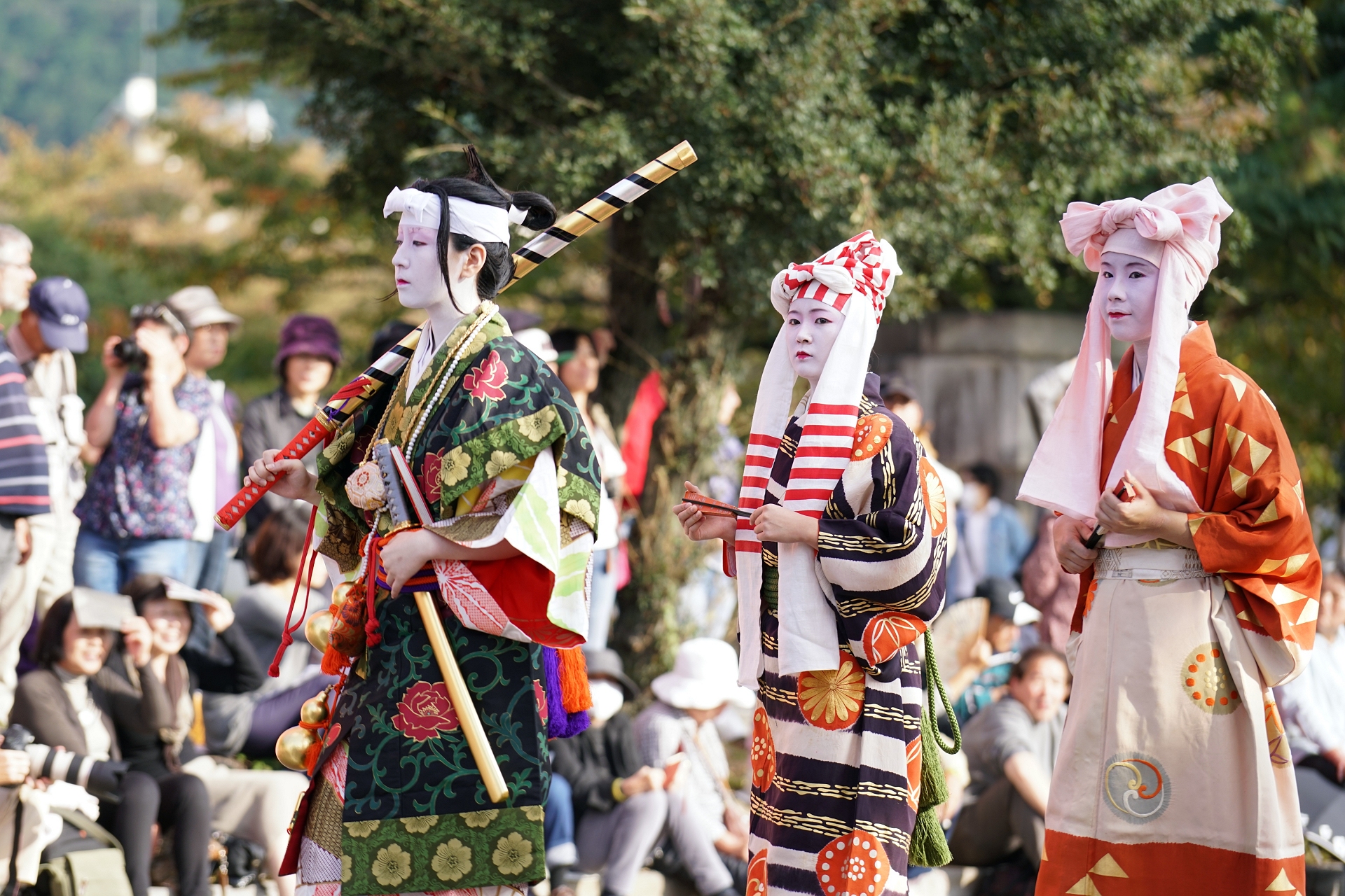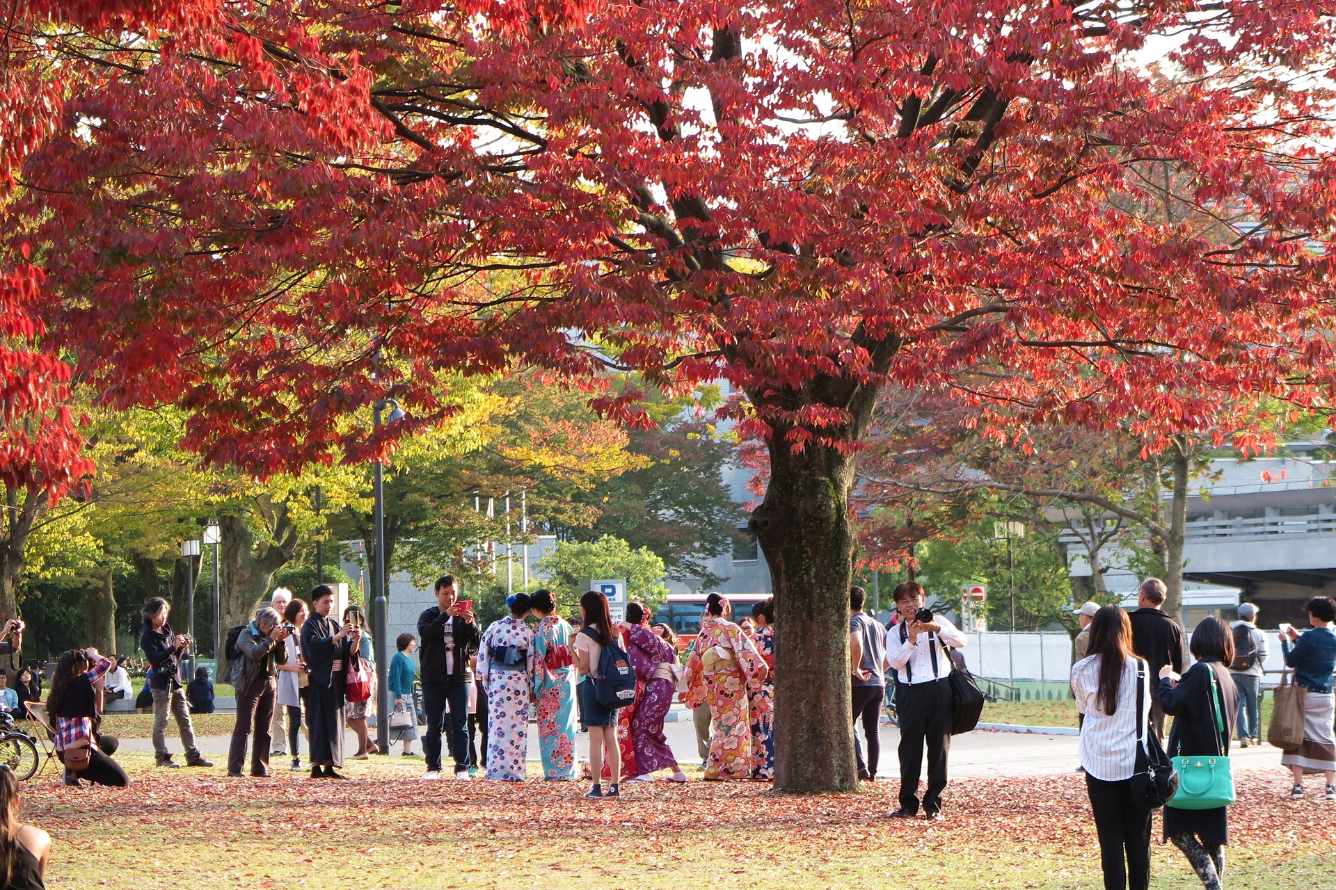 参道横の広場です。 完全に色づいた木も・・・その横には着物姿の・・・・・でへ・・・・・ Oichanが行かないわけがない・・・ でも・・・でも・でも・・・