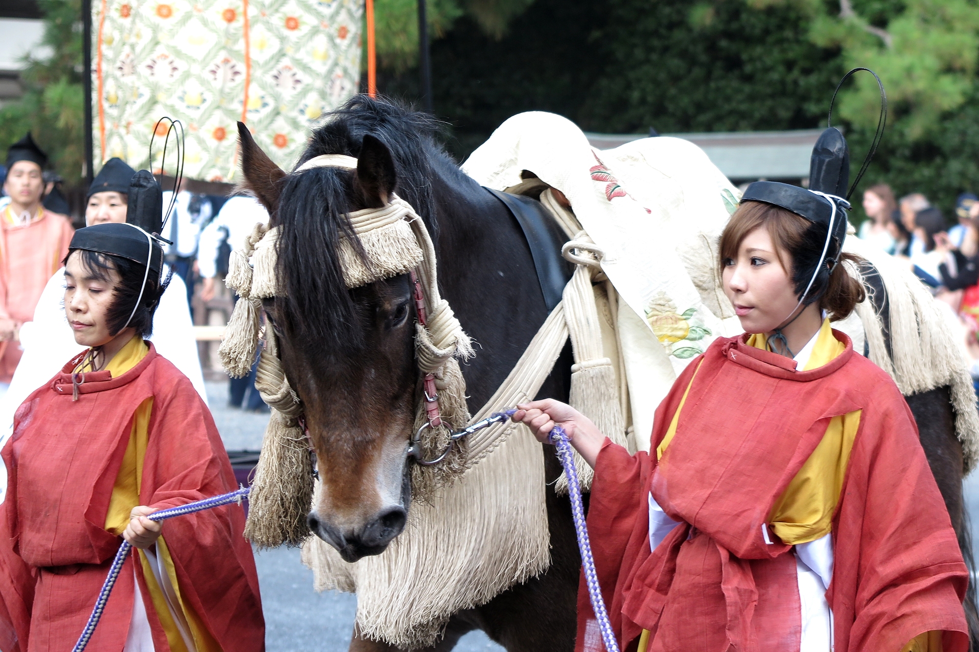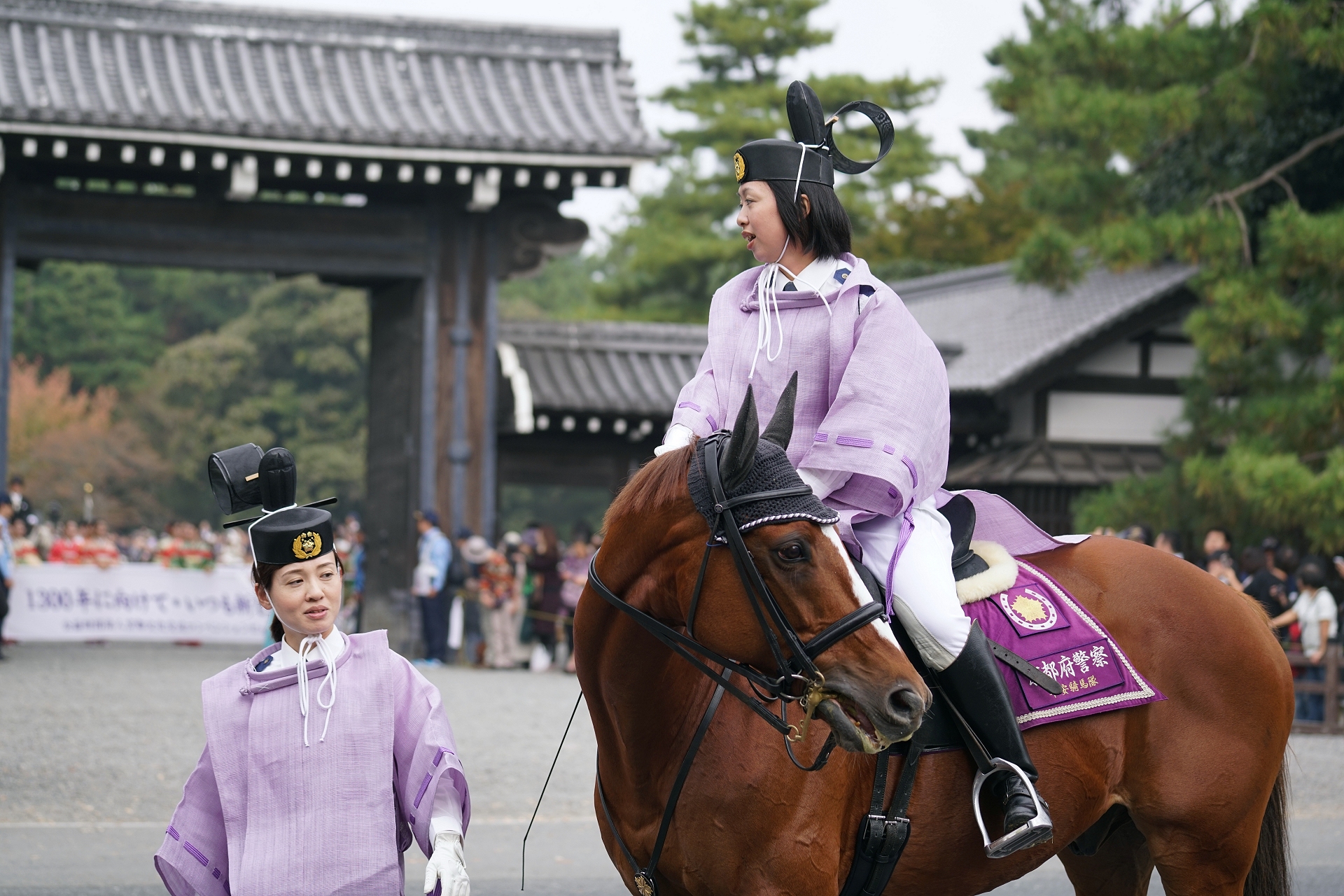 12:09、誰かが馬で・・・・ん?馬の背に「京都府警」の文字が・・・ ということは婦警さん???