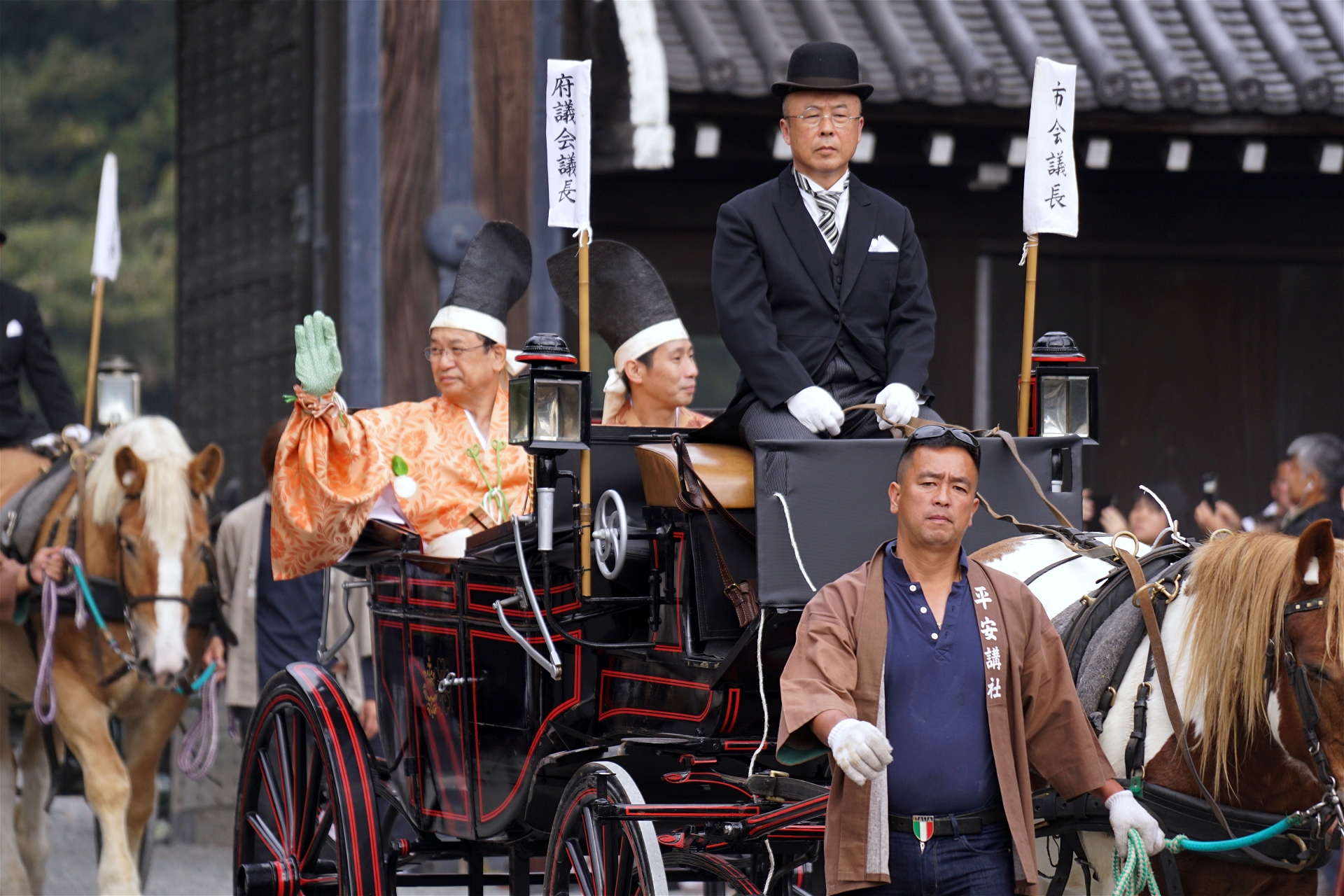 15:23、延暦武官更新列、右側の金ピカ鎧が、坂上田村麻呂 しかしサングラスはないでしょうが・・・もちっと考えてよ・・・