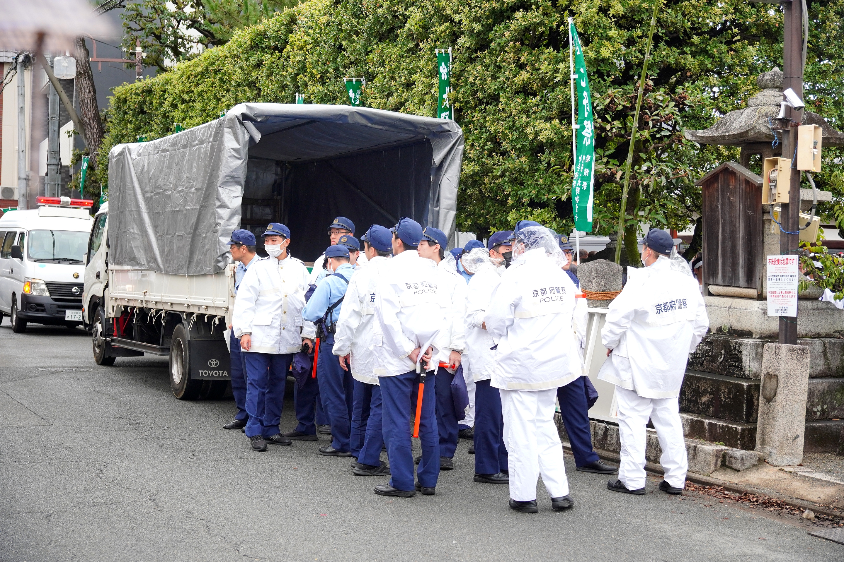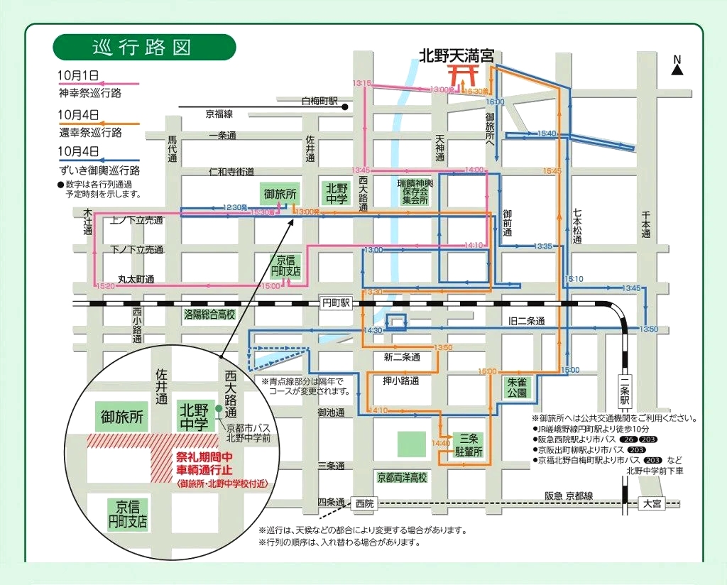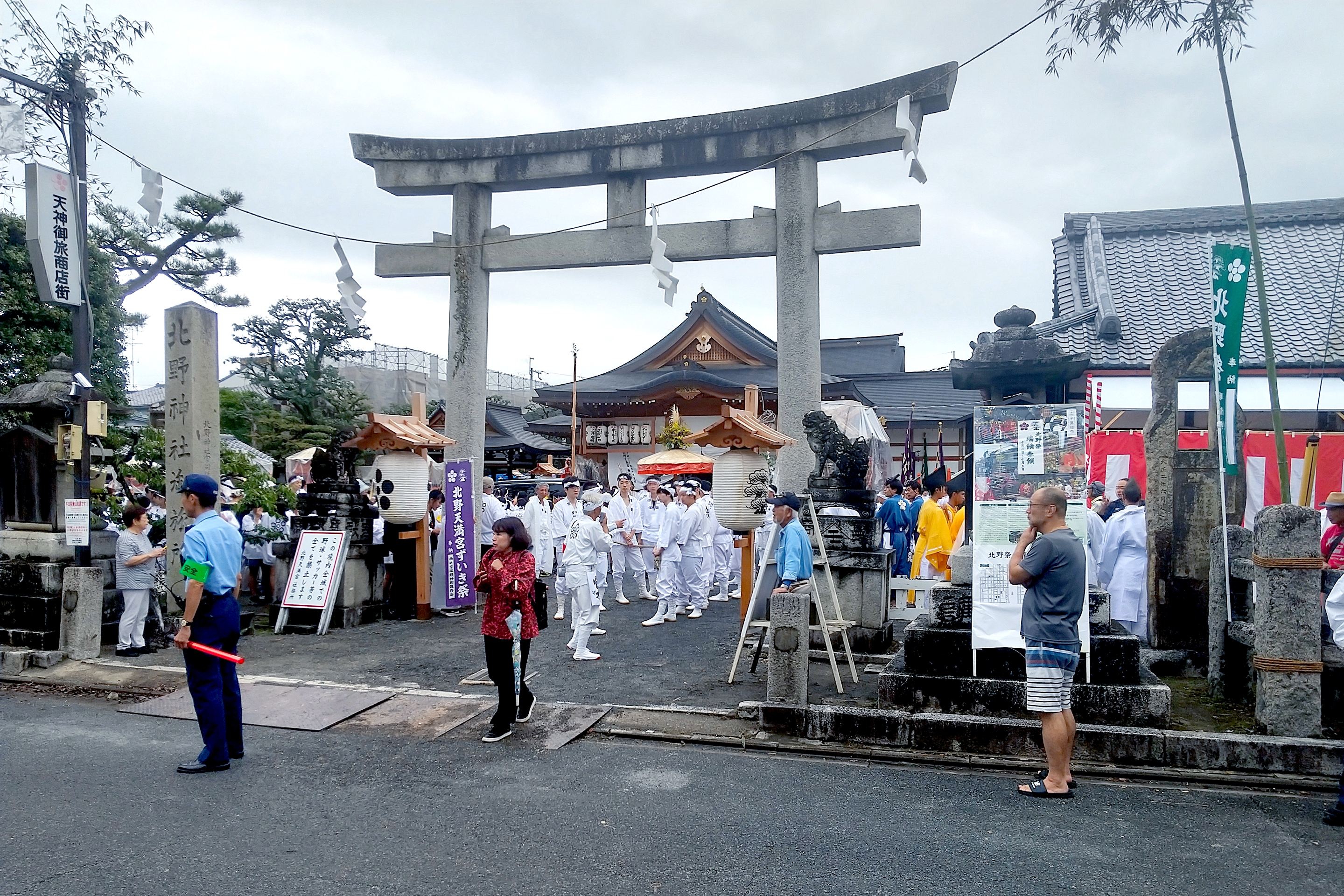 というわけで、12:30、目的地に到着 場所は北野神社の御旅所 ここから行列が北野天満宮に向け出発します