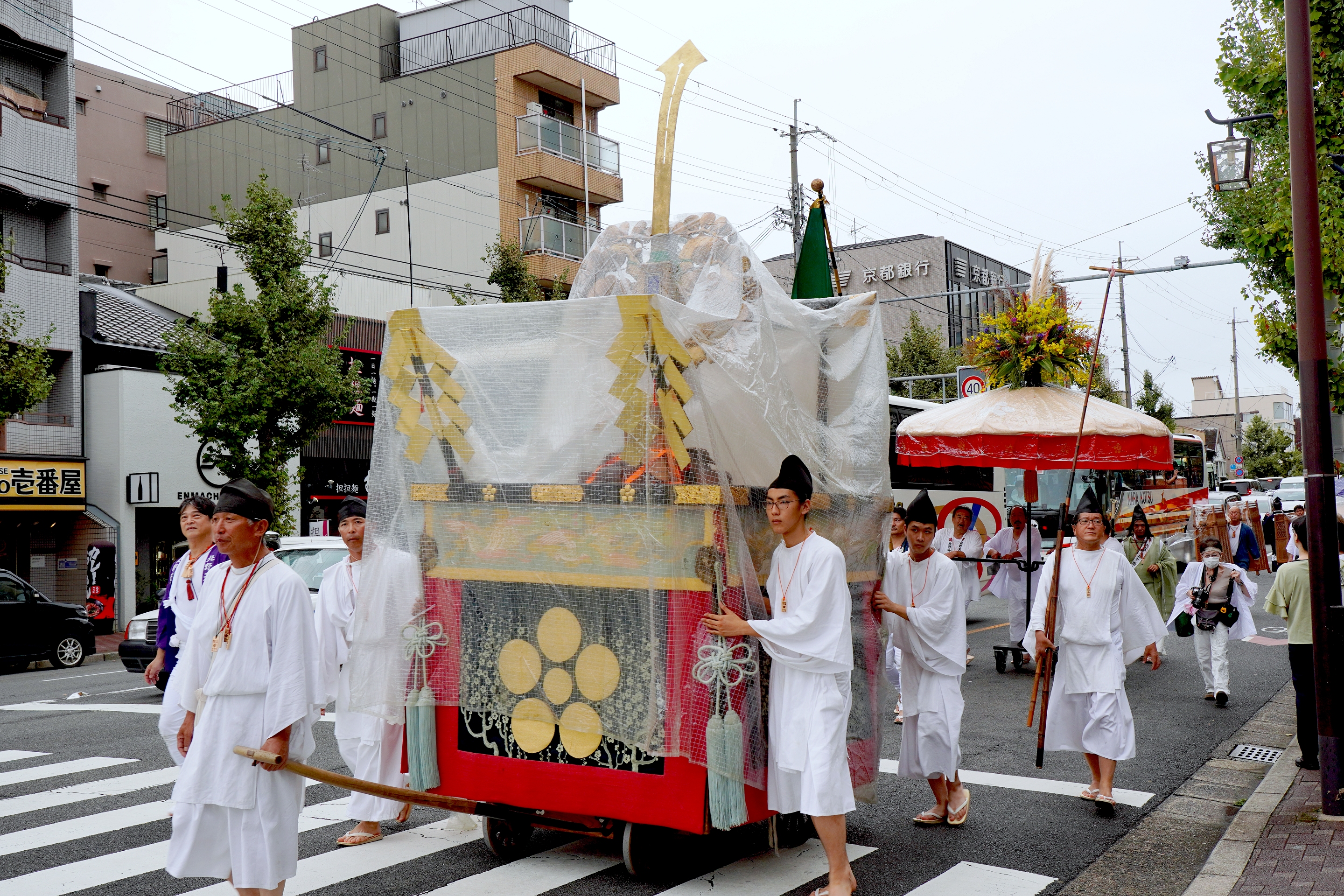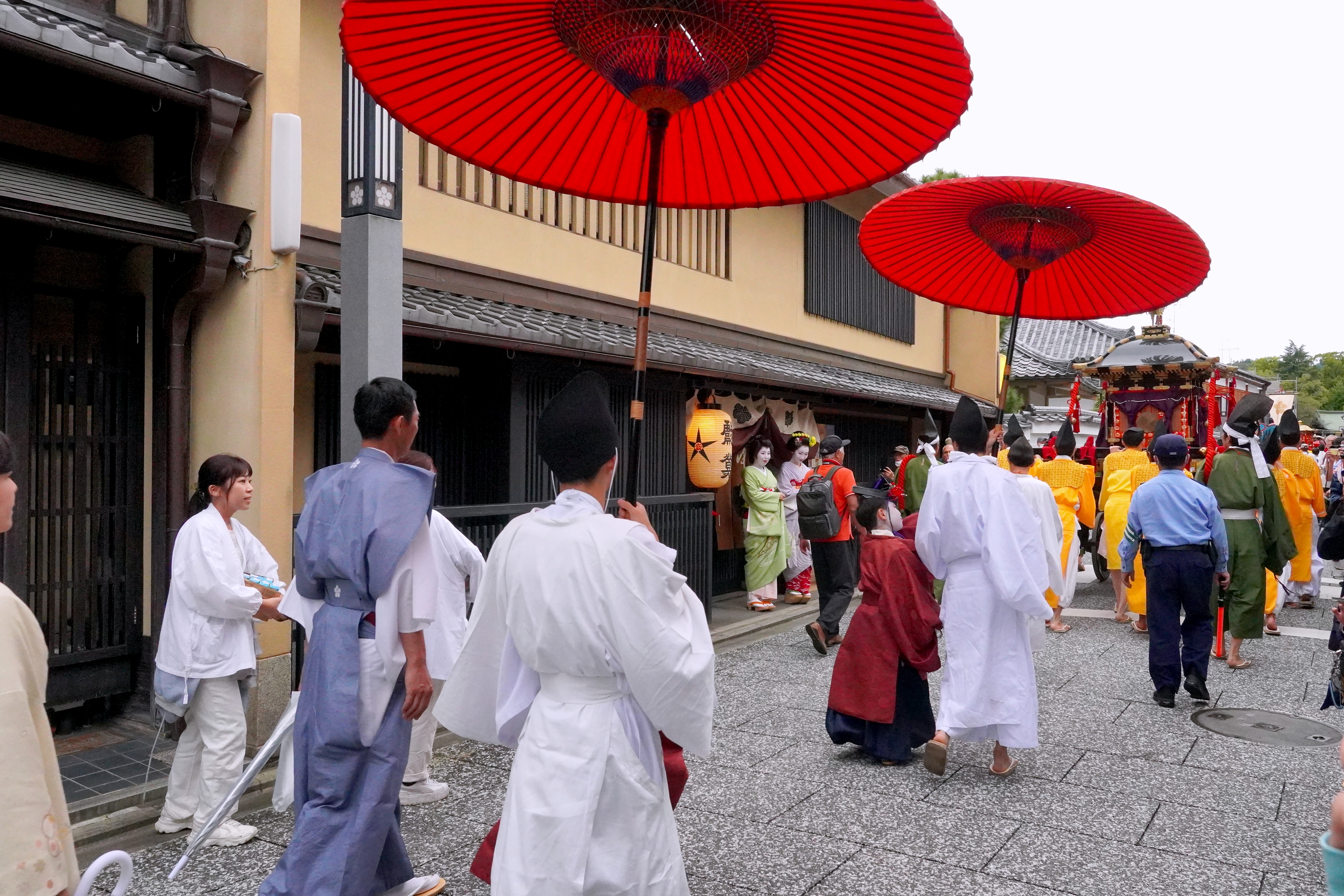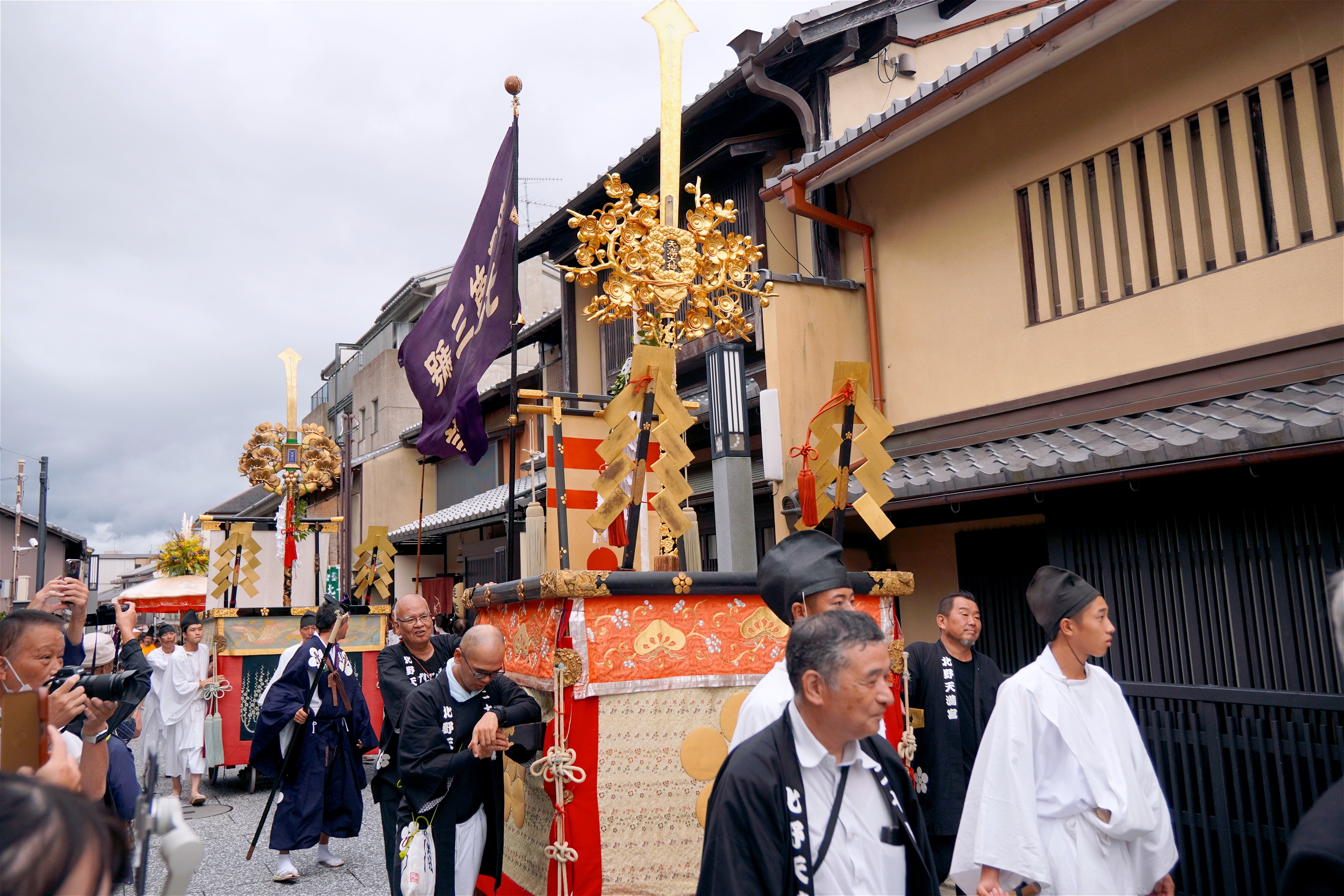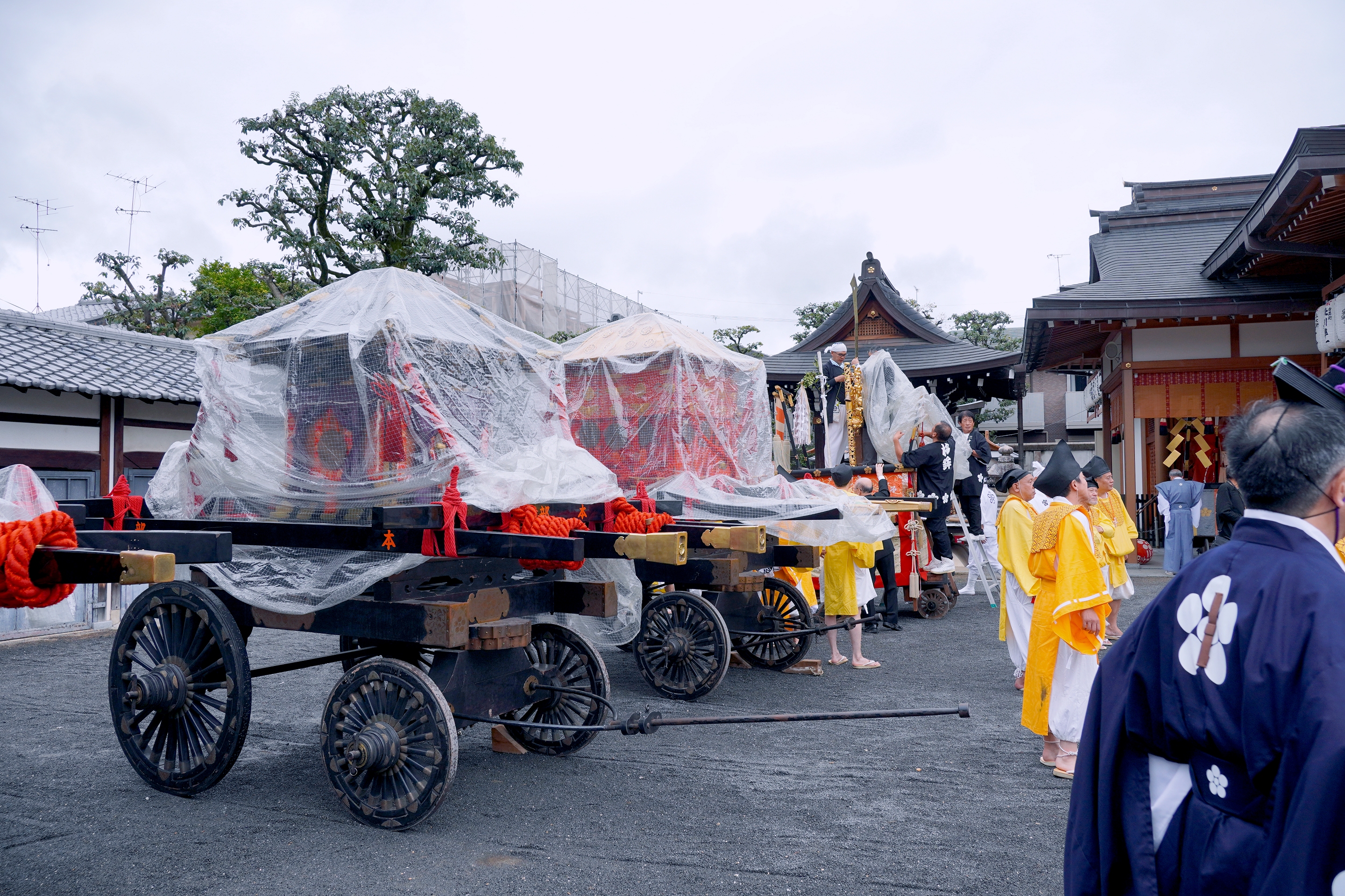 境内で出発を迎えているのですが 残念ながら神輿や鉾には全てビニールシートが… あ~「ずいき神輿」が…