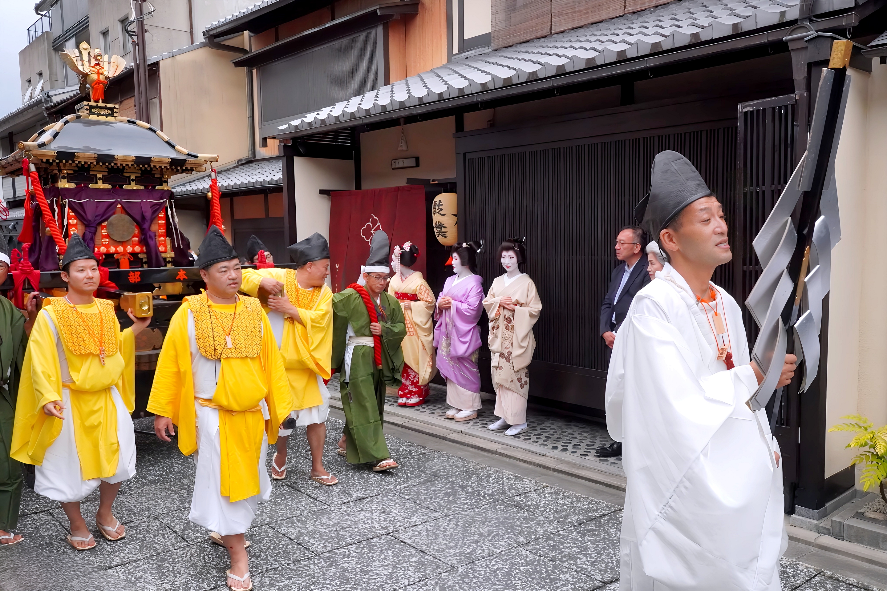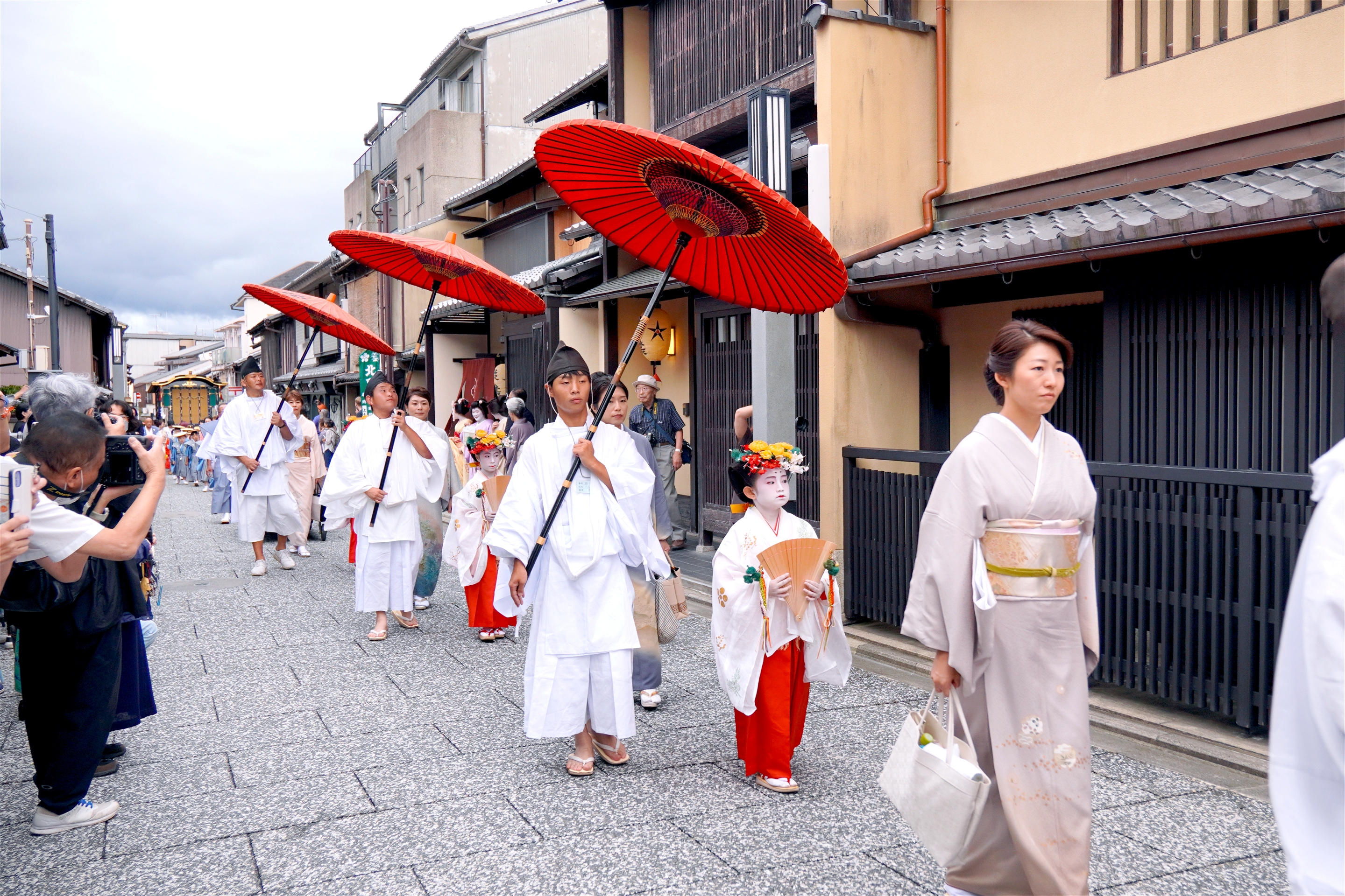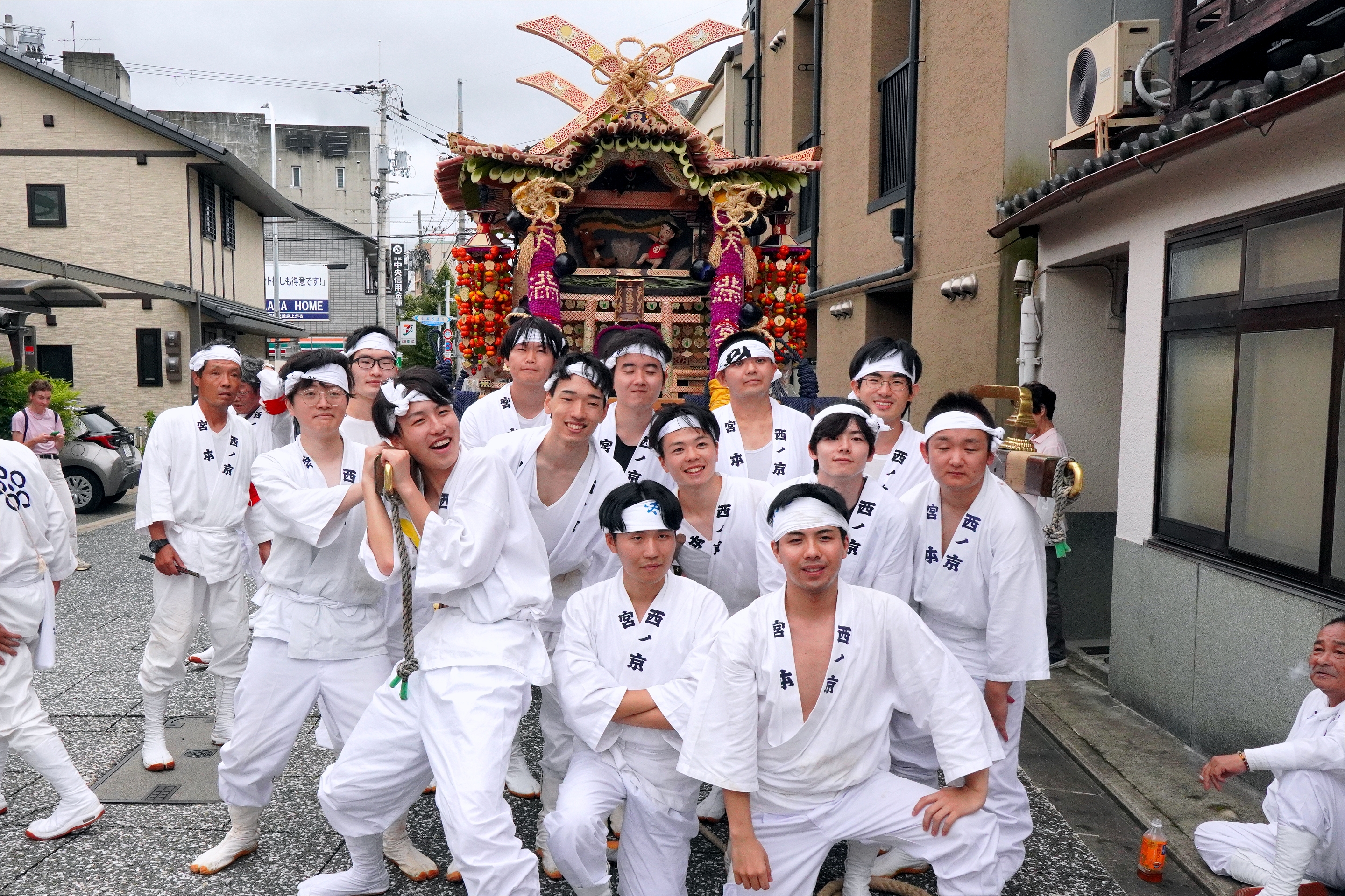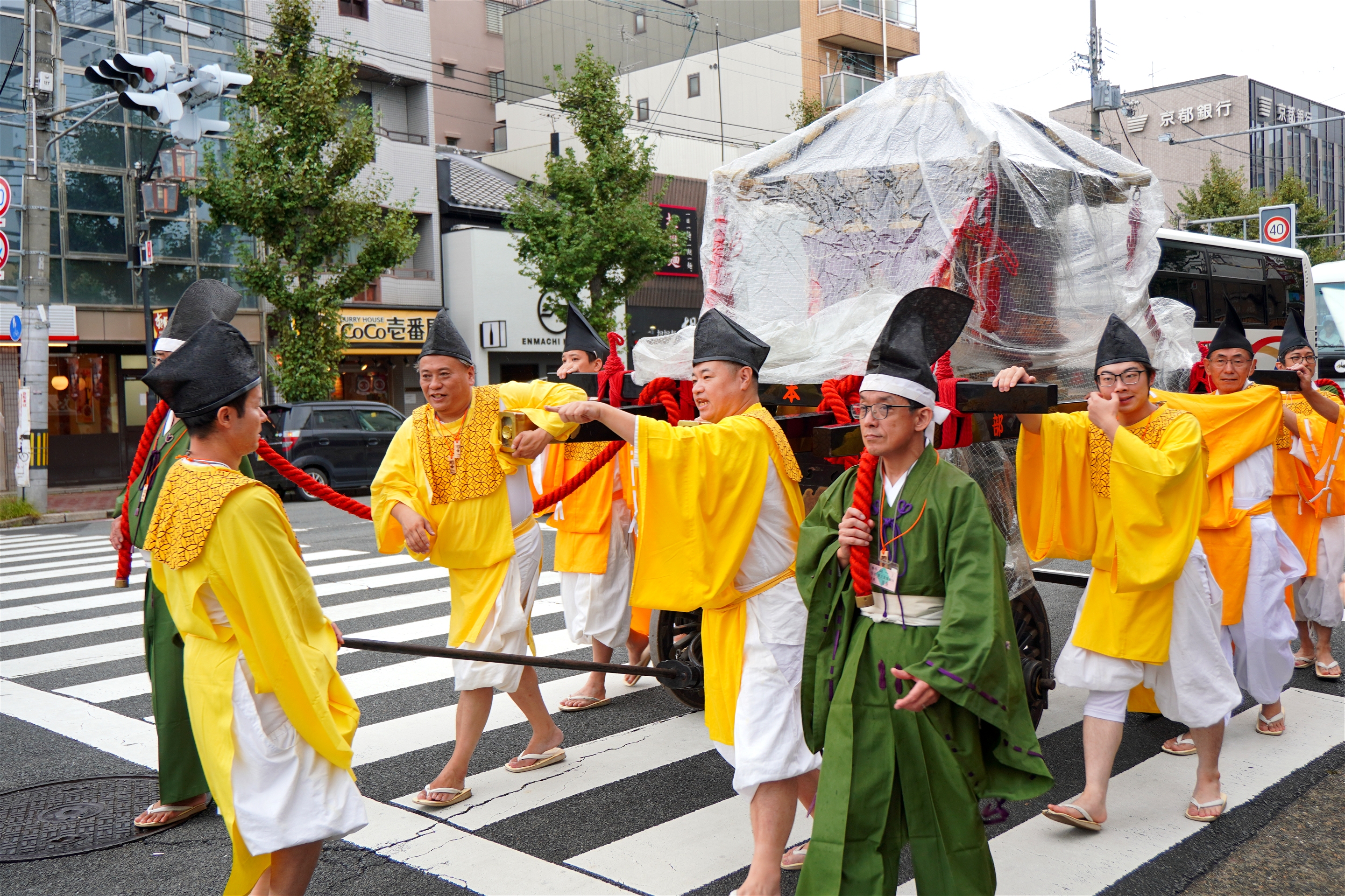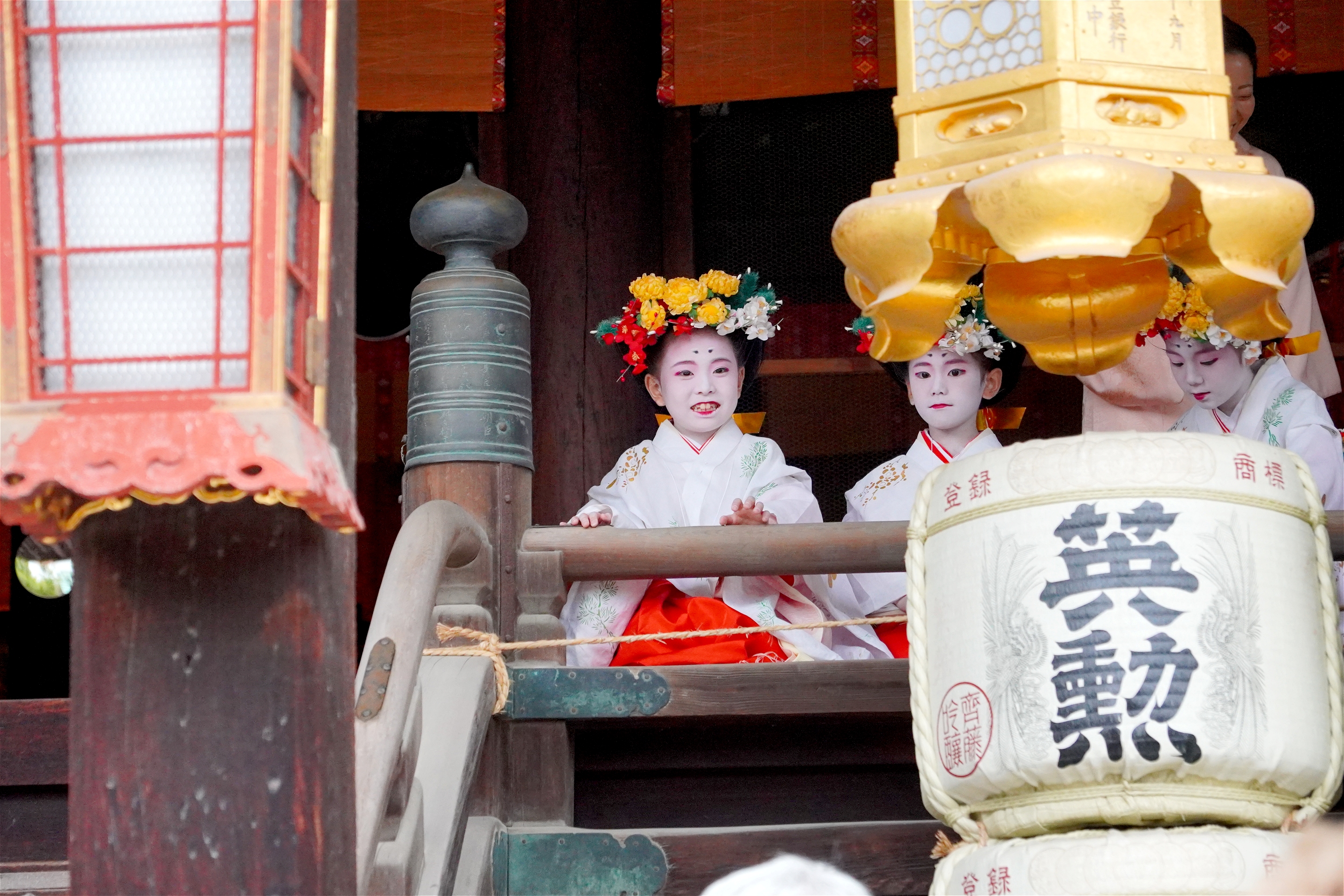 境内で出発を迎えているのですが 残念ながら神輿や鉾には全てビニールシートが… あ~「ずいき神輿」が…