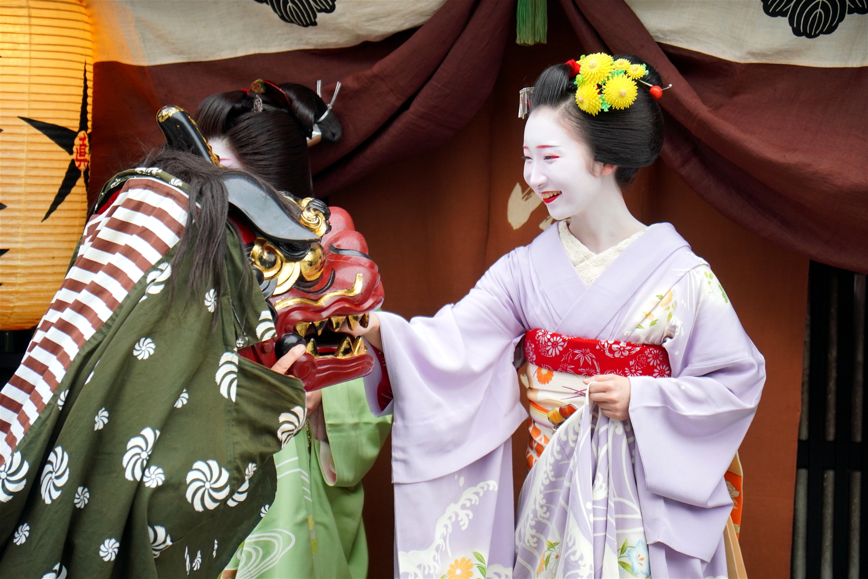 16:27、獅子舞が… いや舞妓さんが… 獅子の顔が優しく見えるのは気のせいかな