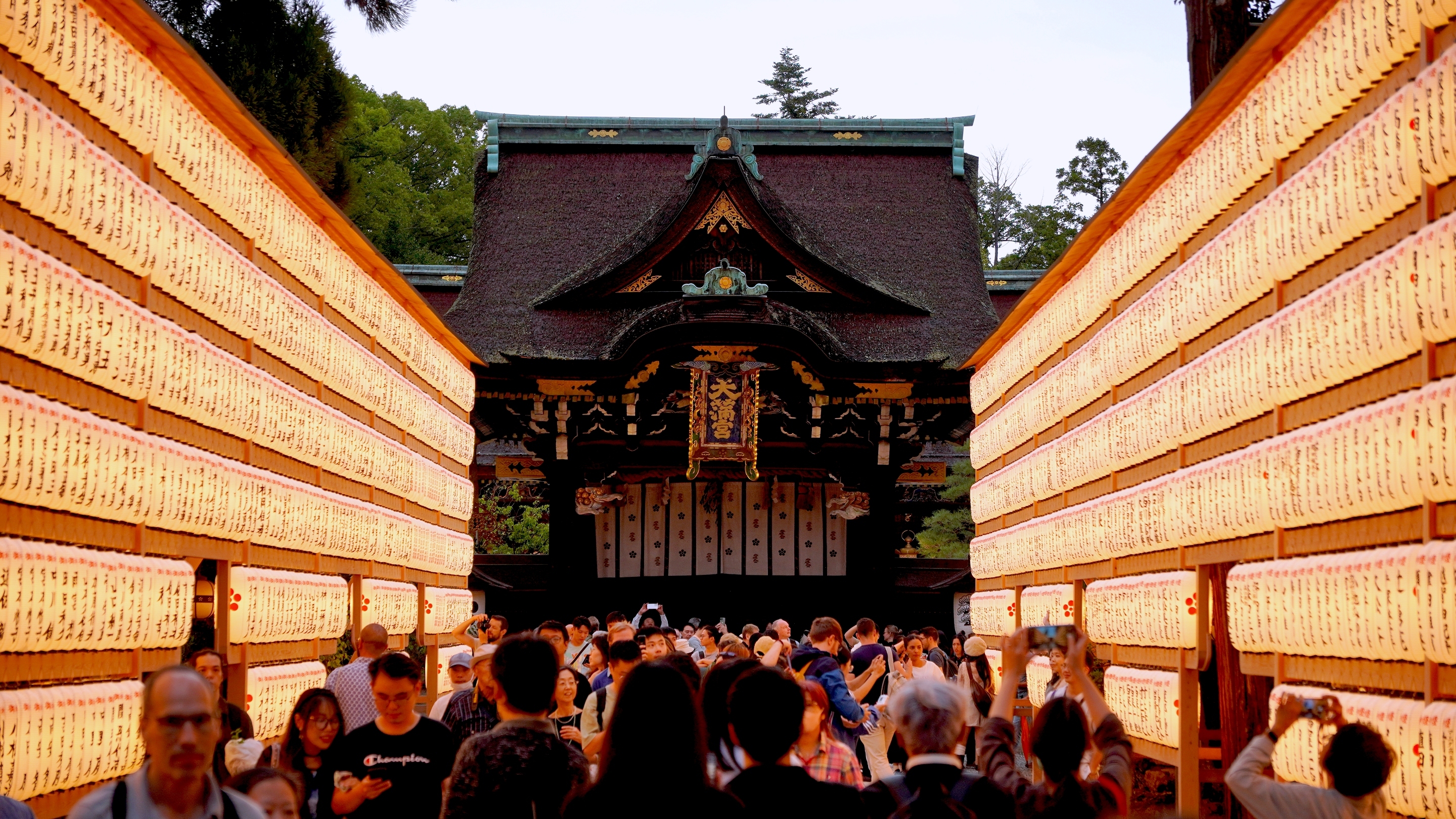 17:15、鳳輦が三基揃ったところで閉門のアナウンスが… さすが10月、日が暮れるのが早くなりました 提灯にも一斉に灯が…