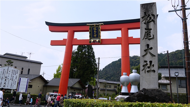 京都の西部、嵐山のすぐ近くです。 「松尾大社」なかなか立派なお社です。 それにしても、参拝者?祭りの見物人? の数がちょいと中途半端な気も・・・