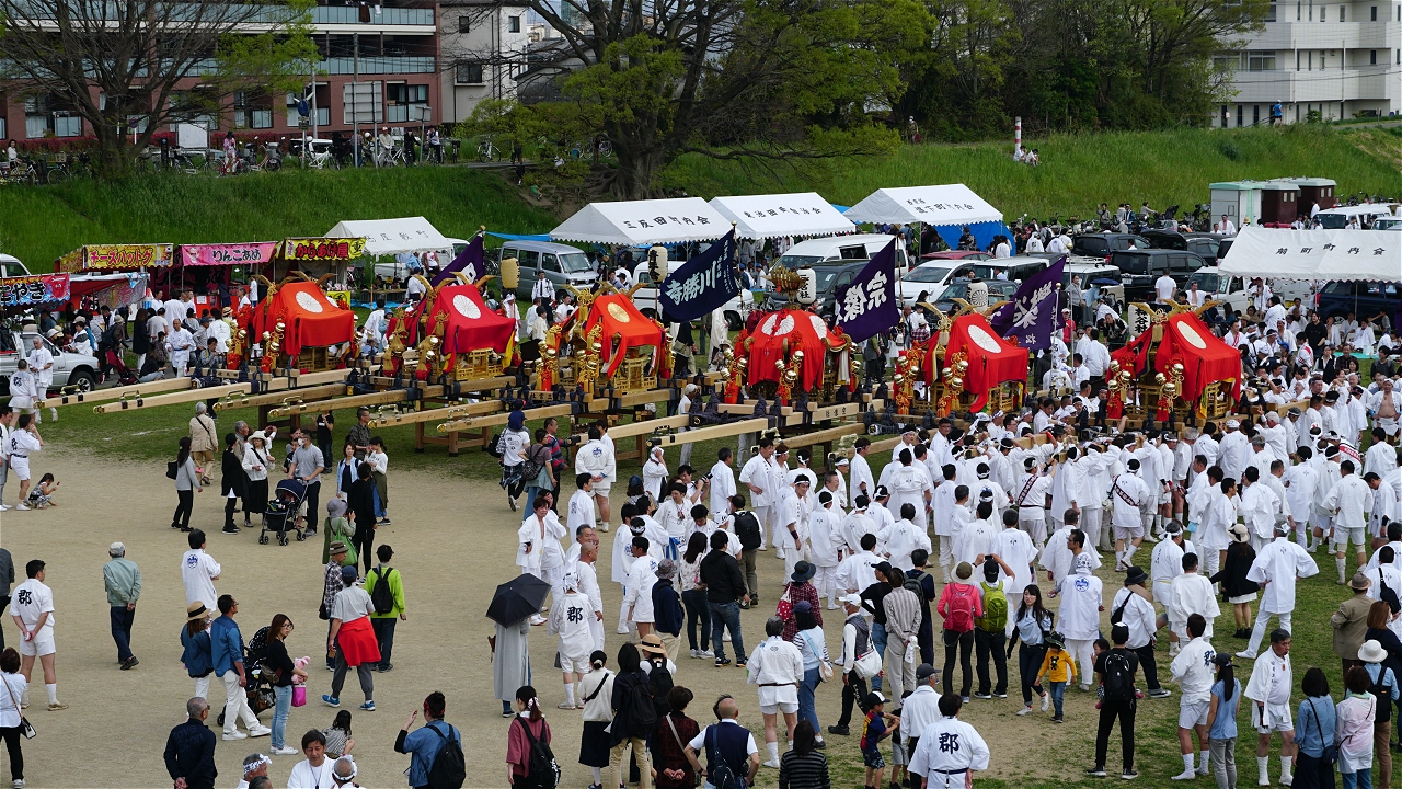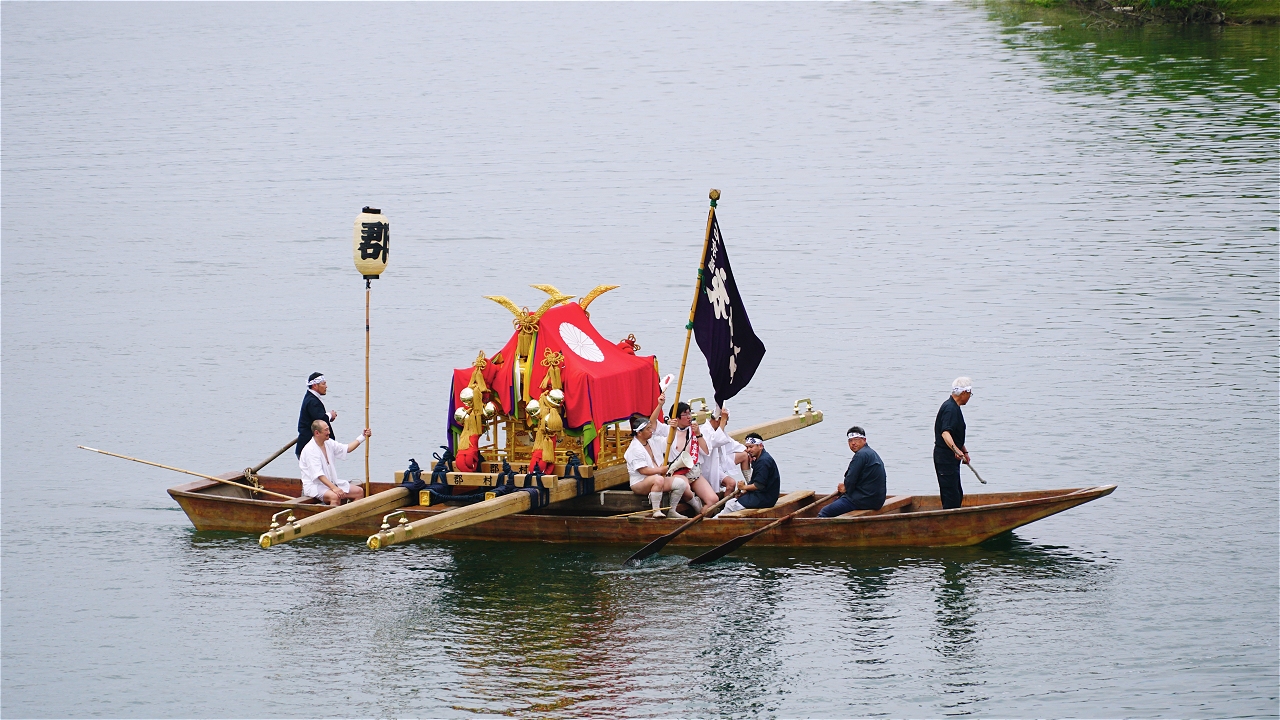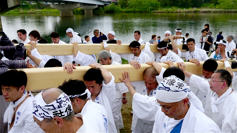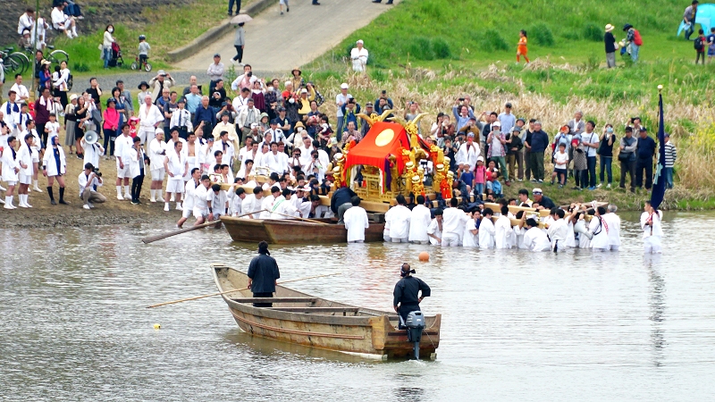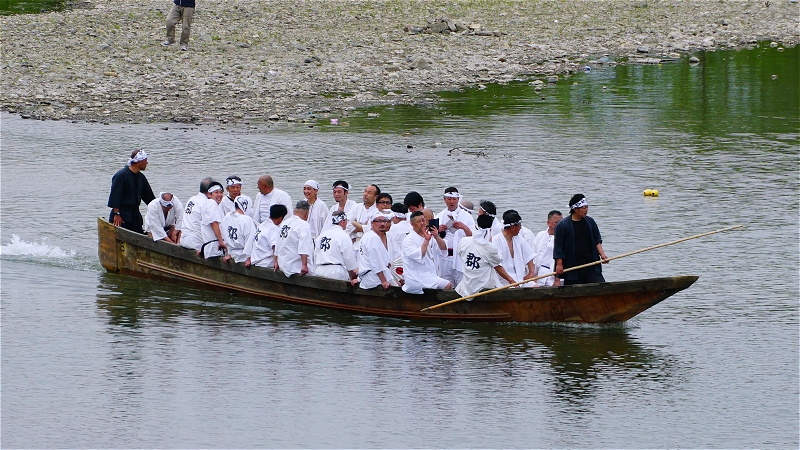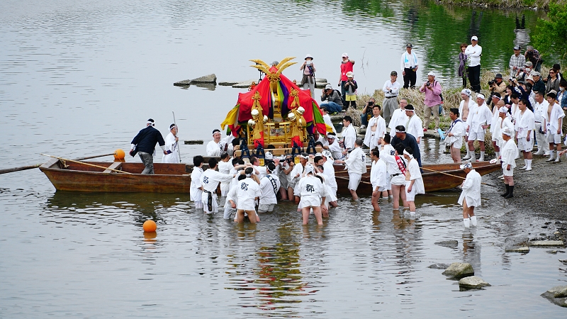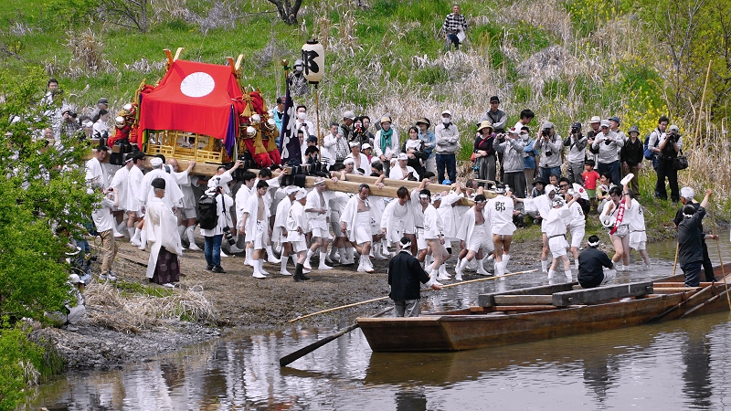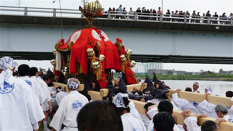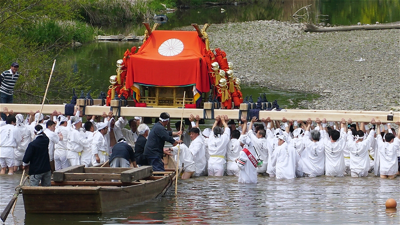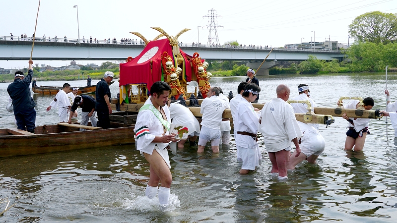 最初に出発した神輿がもう既に・・・ そして川の中に・・・