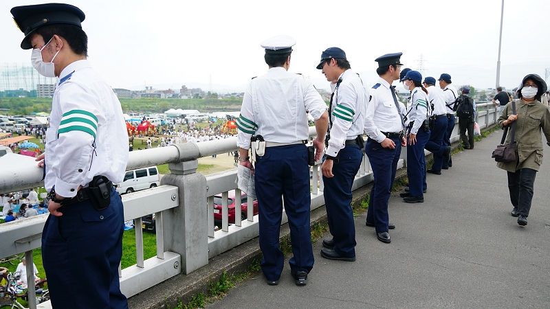 橋の上では・・・ ちょうどこの下をお神輿が通る時、人も車も通れません・・・