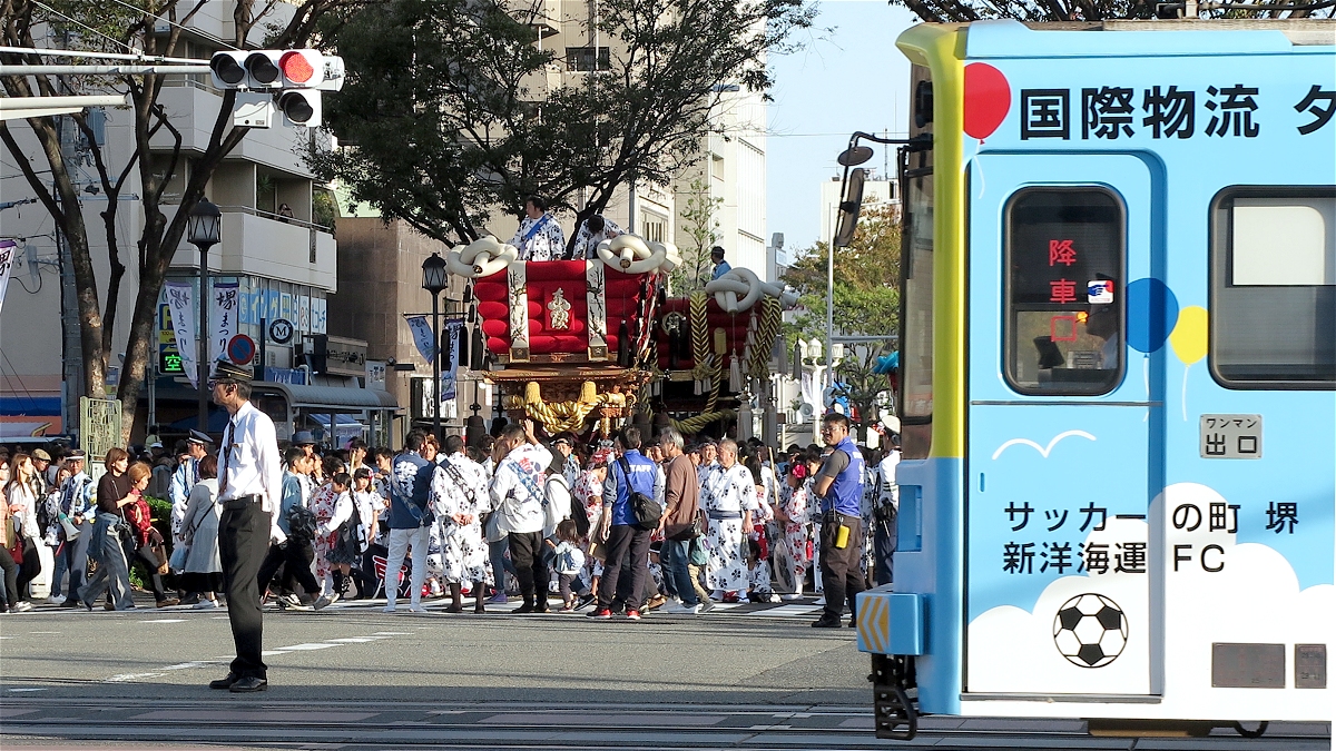 「どこかに行こう」とNETで行先を・・・ ありゃお祭りがるじゃないですか・・・お隣の堺市で・・・ とはいえもうお昼を回りかけている・・・急げ急げ・・・ と、特急電車で・・・もちろん自由席で・・・