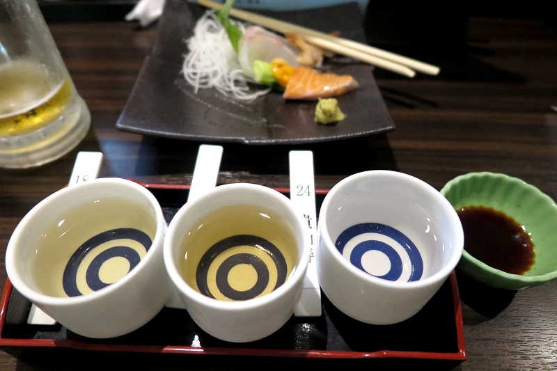 そしてお祭りの後はやっぱりこうなっちゃいました。 日本酒なんだけどけっこう黄色いお酒も・・・ 「菊姫山廃」「天狗舞山廃」「貴仙寿」でした