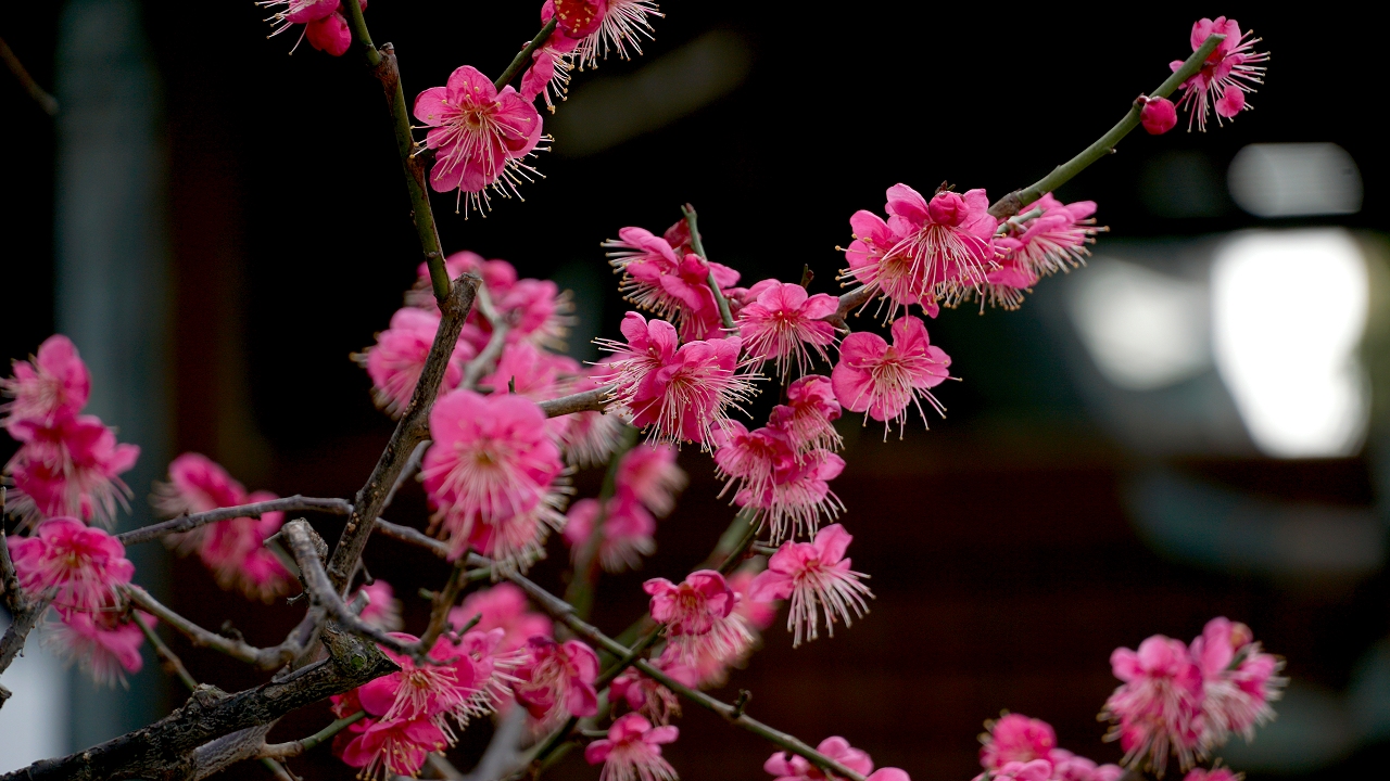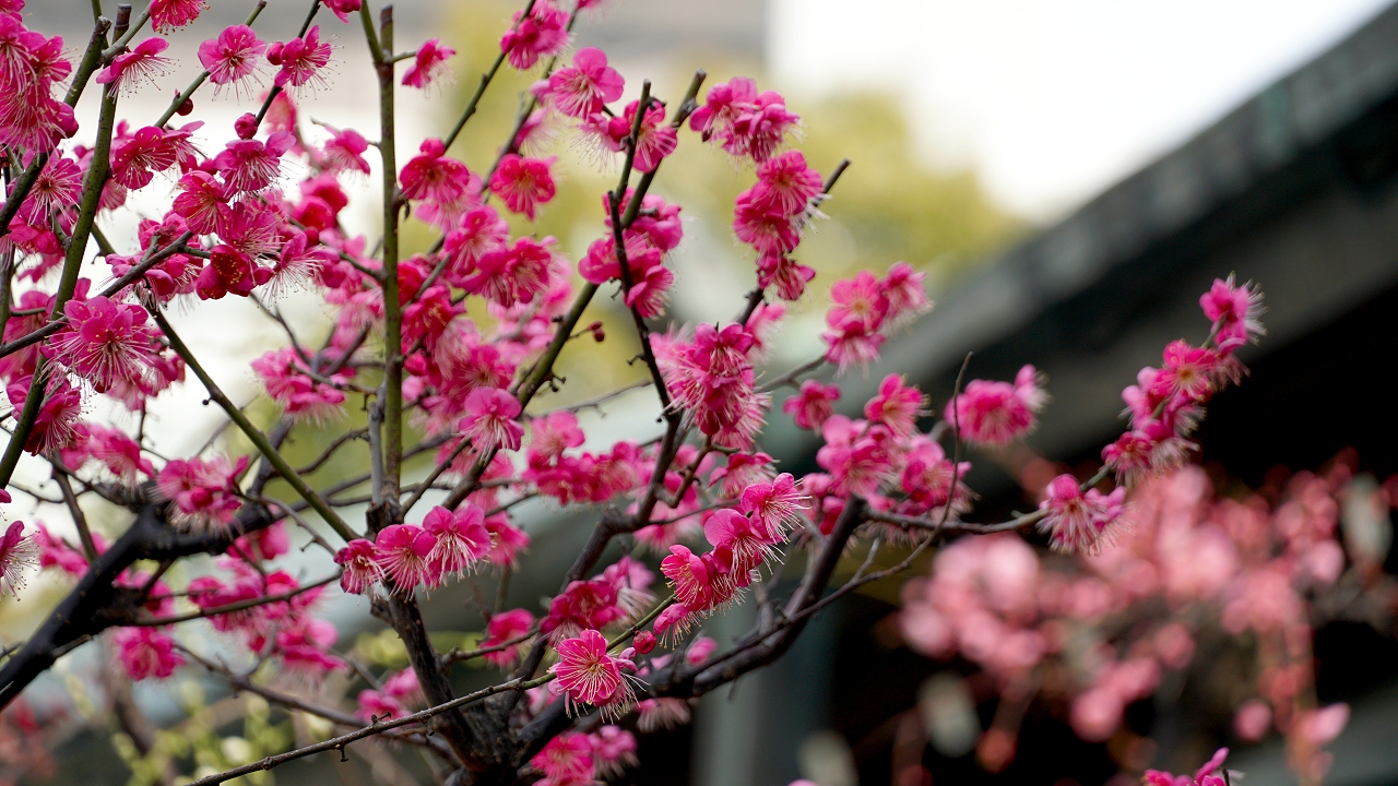 境内には満開の紅梅も・・・
