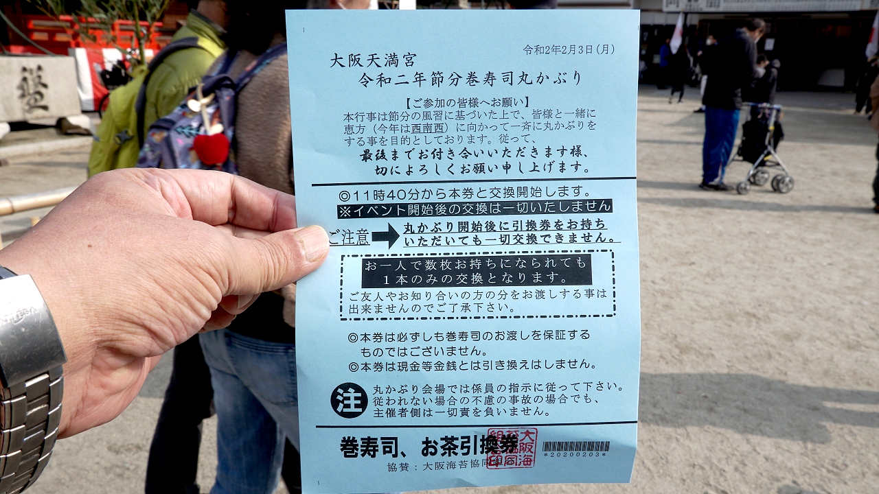 というわけで最初は大阪天満宮さんからです ここ天満宮は節分といえども豆まきはありません その代わりとっても嬉しいことが・・・