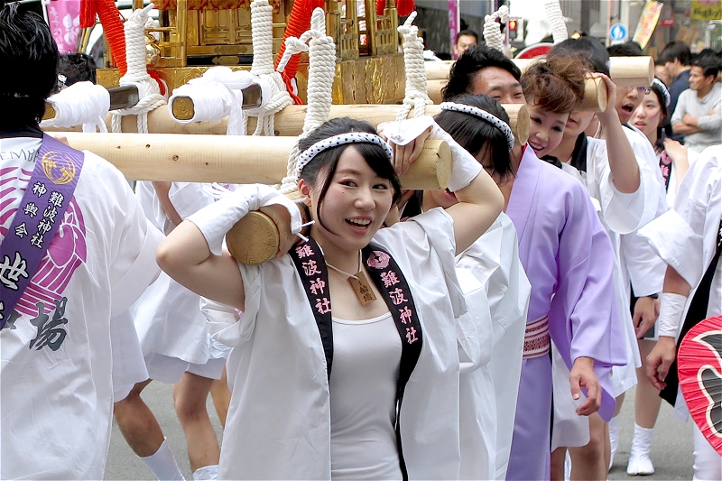 お神輿探しを・・・ そこにちょうど女担ぎ手さんが・・・ちょこっとお願いすると恥ずかしそうに