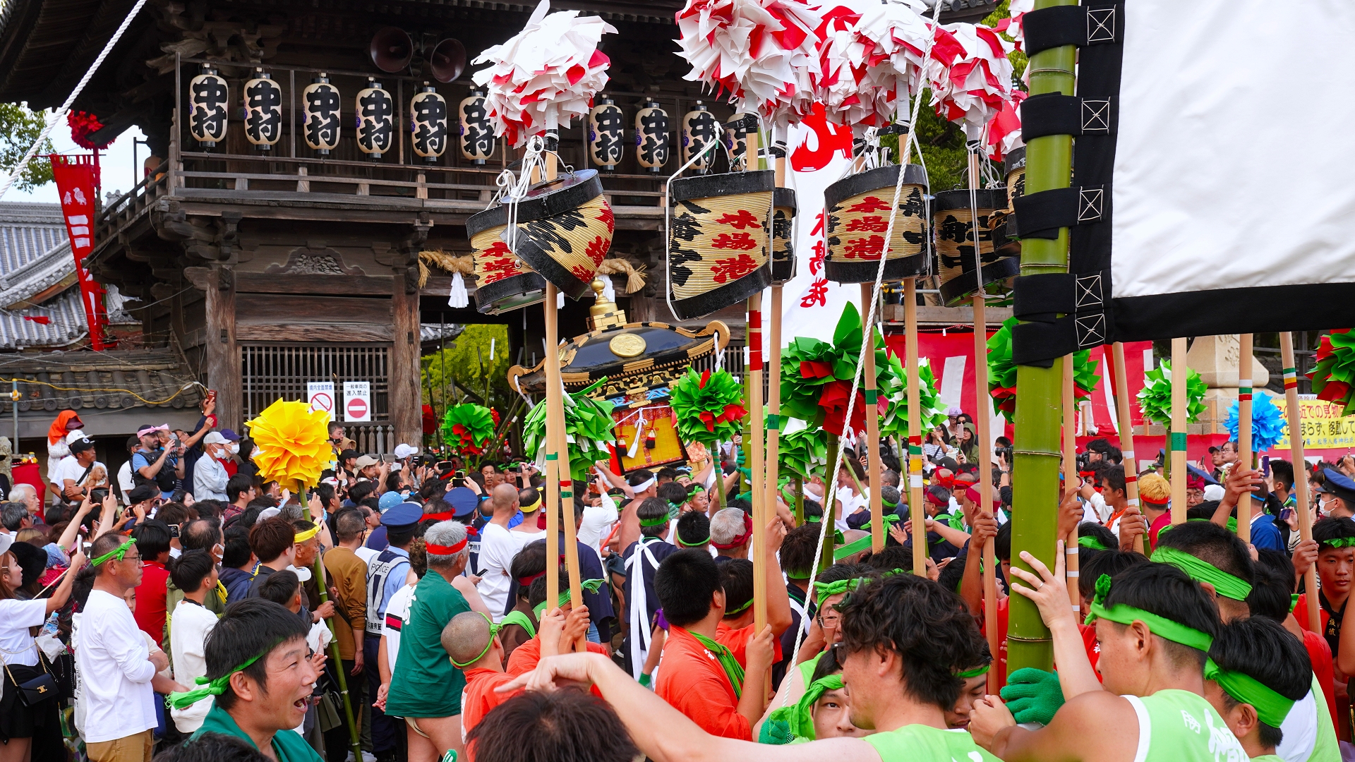 時間は既に3時前、 このあとまだ屋台が入ってくるのですが、 このあたりで脱出しておかないと細い山道通路、 いつまた屋台が降ってくるやら… すでに最寄りの駅は群衆でブロックされてるし・・・ ということで元来た道をよろよろと… 3時半の梅田行特急電車に…