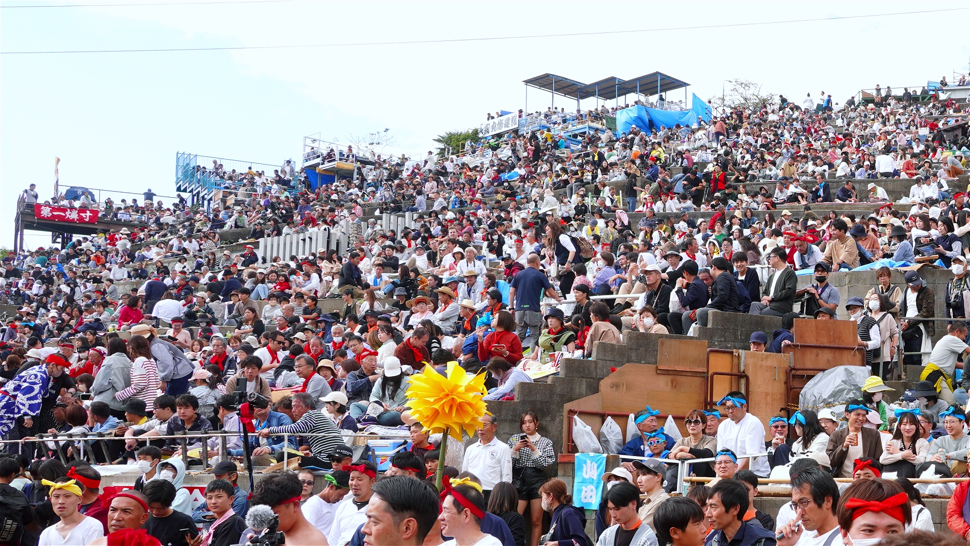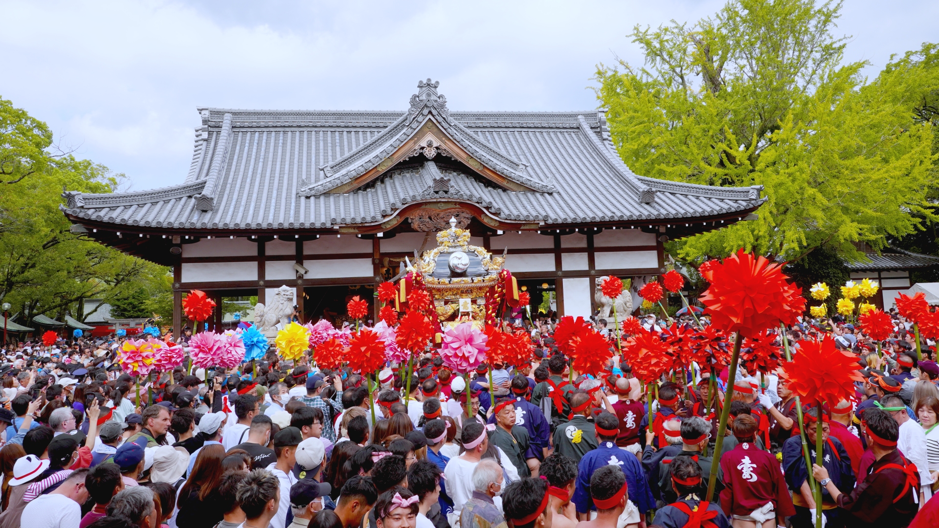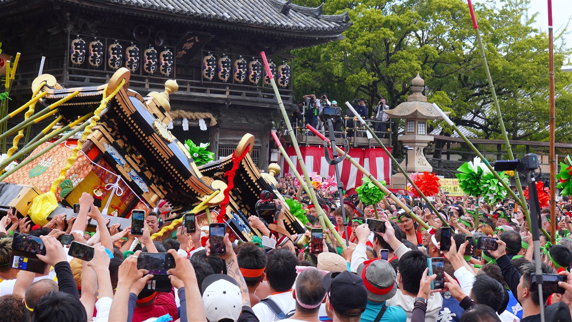 13:30、 この後この神輿や屋台は、 少し離れた本宮御旅山に向かいます… Oichanも追っかけることに… ここからが見どころお旅山までの渡御神事です 神社を出て西へ約800m、 ひょこひょこと… お旅山の練り場に到着… な、何なんだこの景色は…