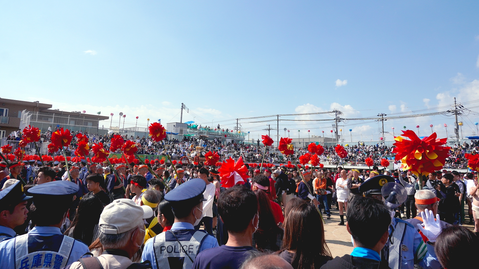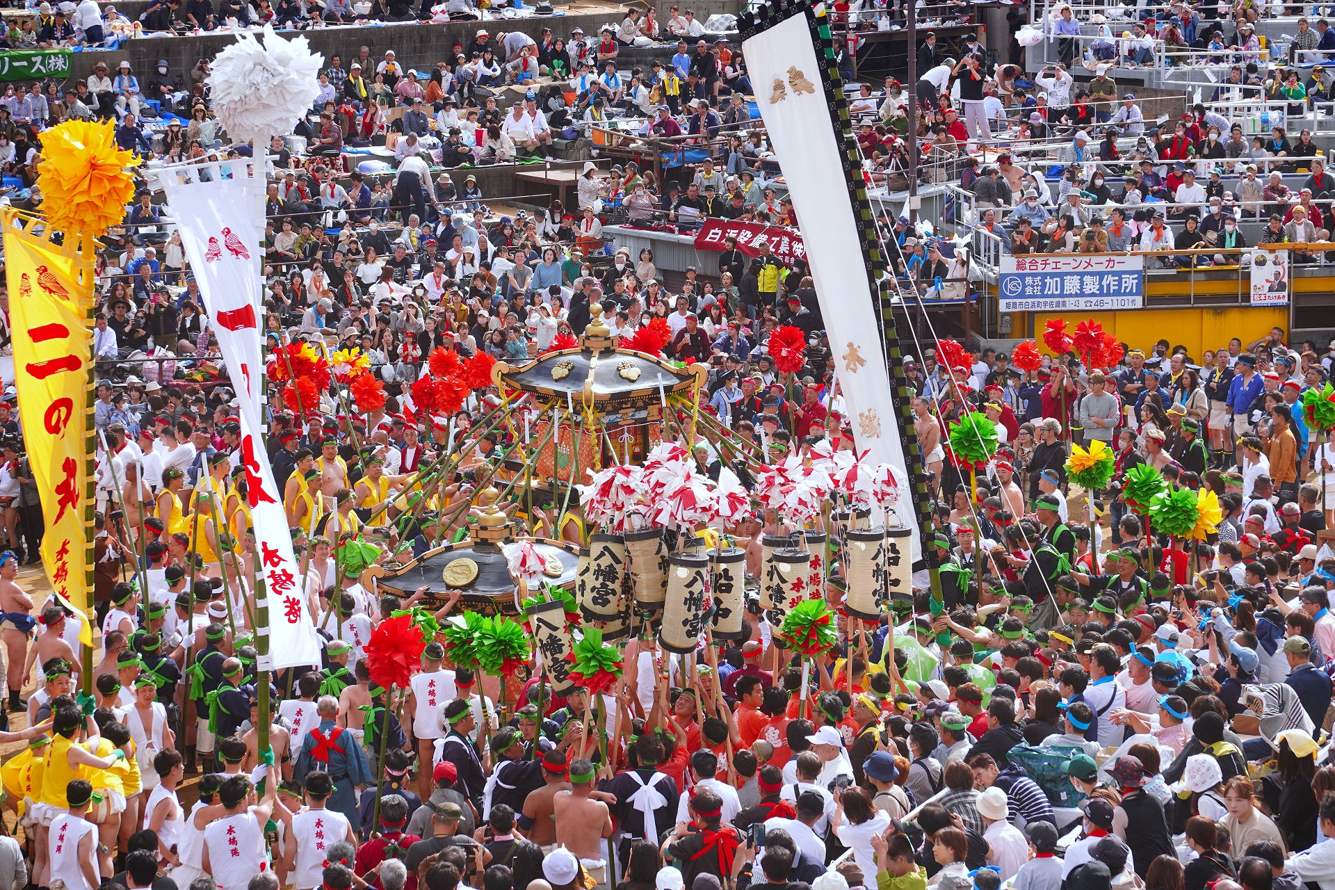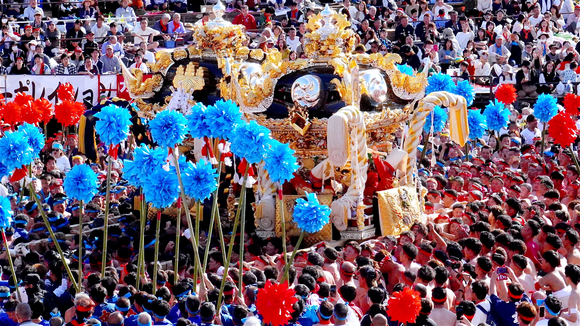 2時半過ぎ、神輿が退場した後、屋台が練り場に入ってきました