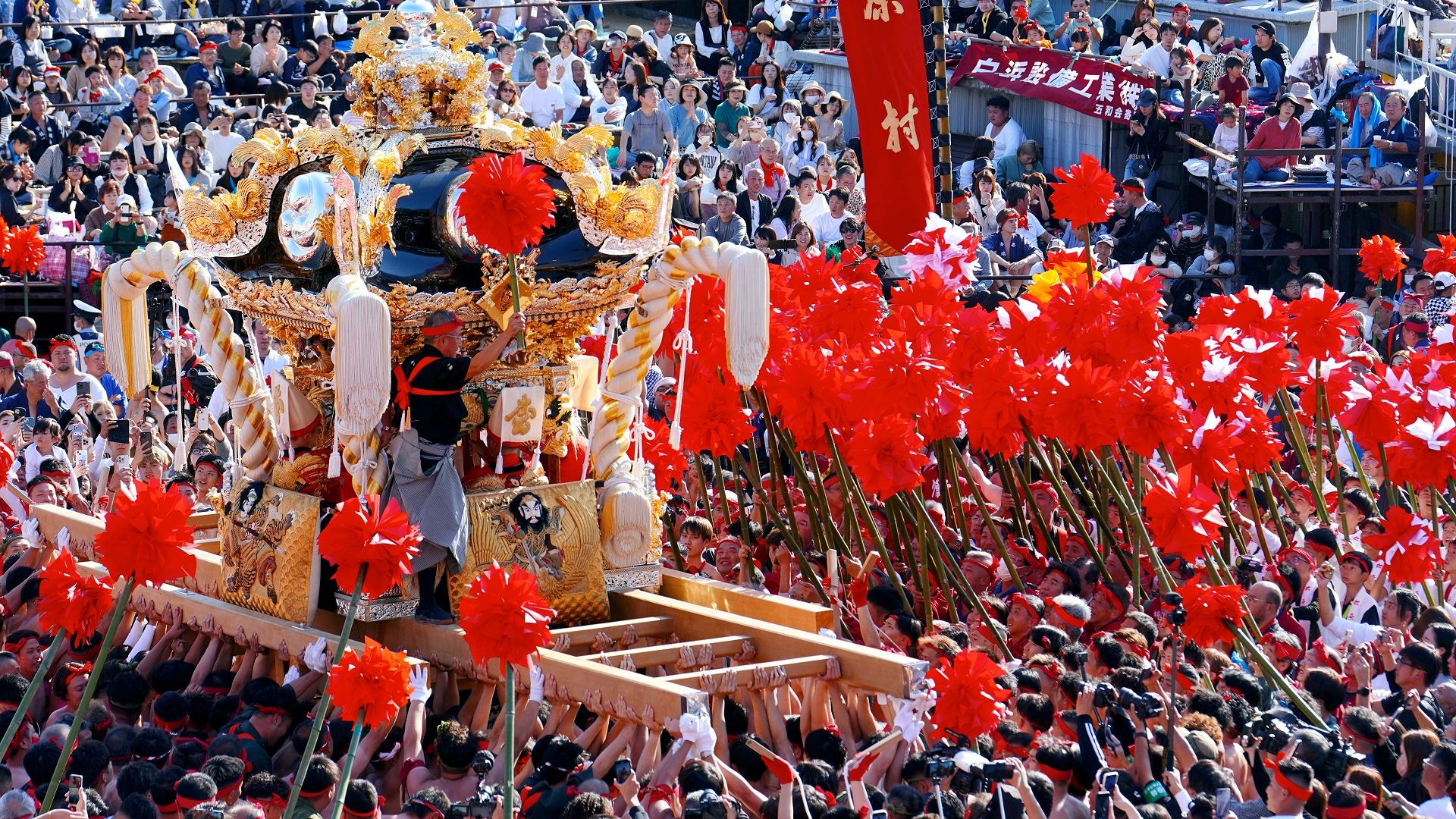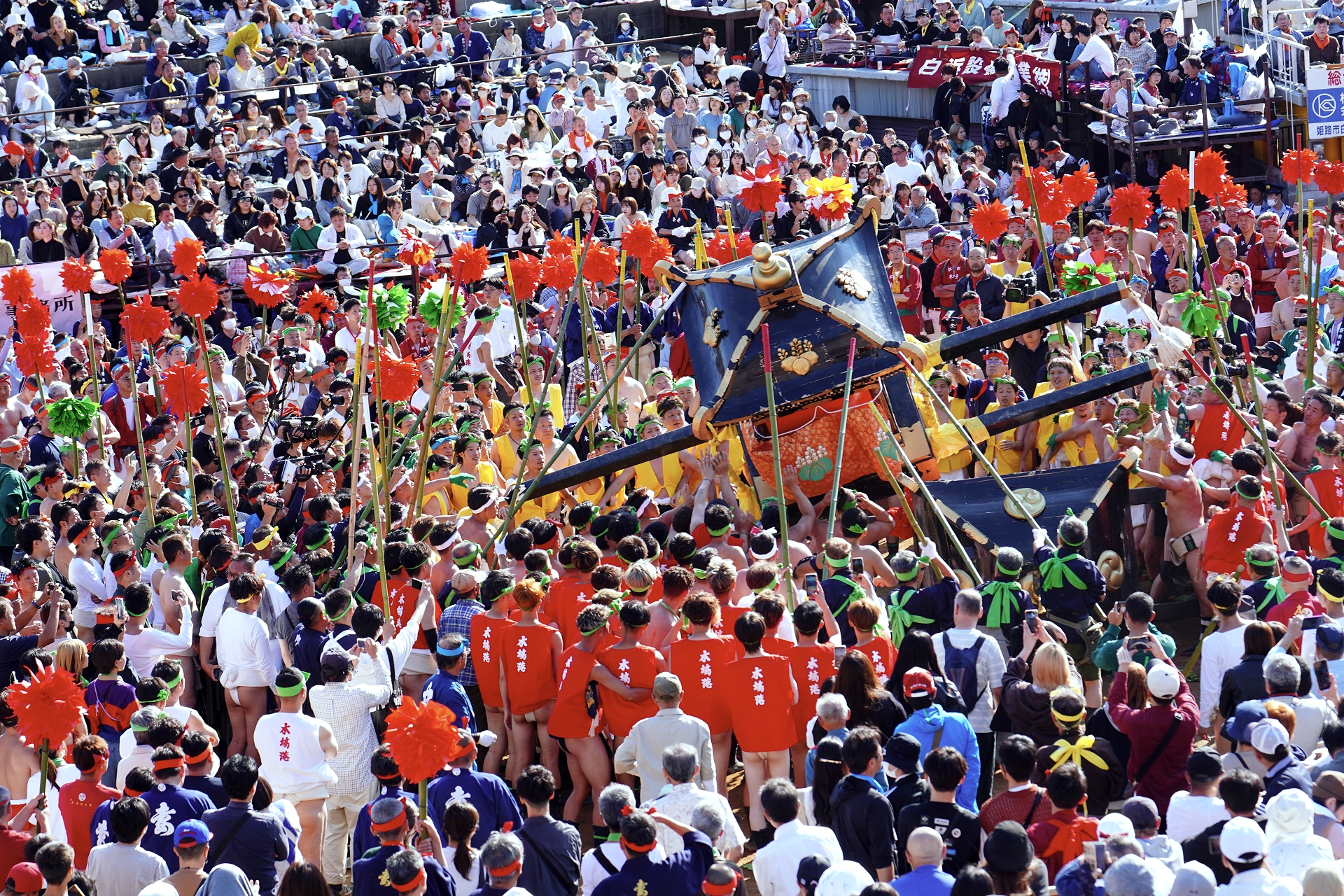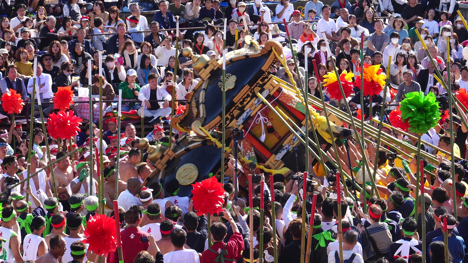 2時半過ぎ、神輿が退場した後、屋台が練り場に入ってきました