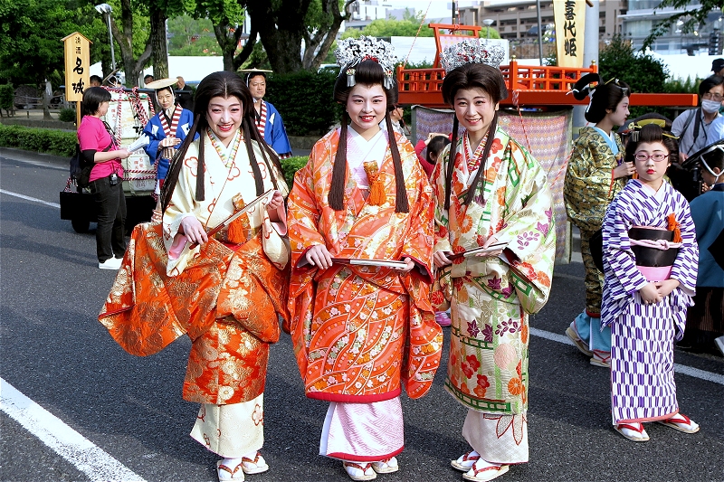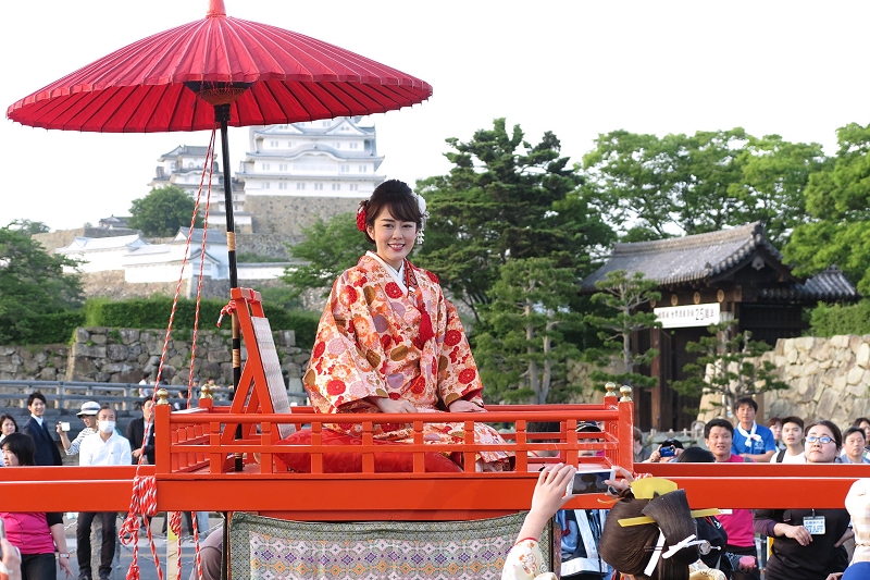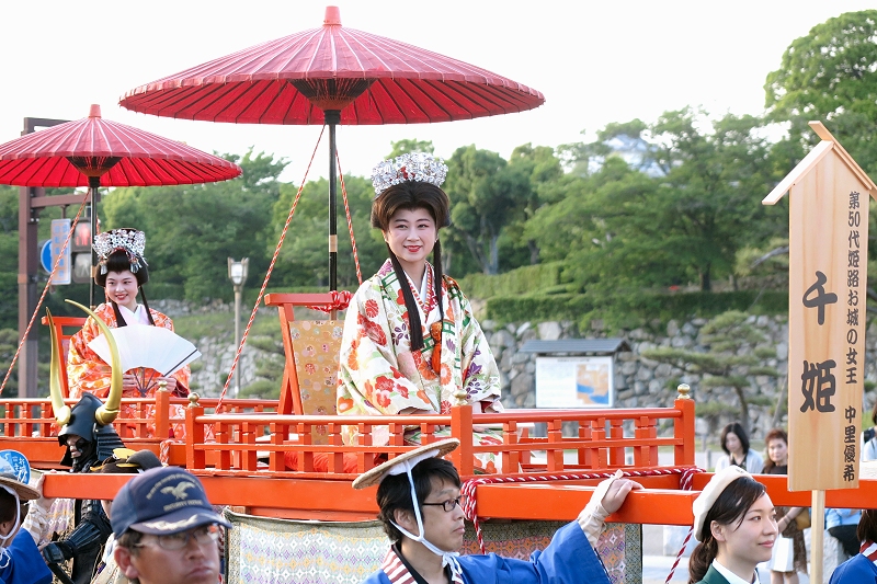 この方たちは昨年の第50代姫路お城の女王さんです。