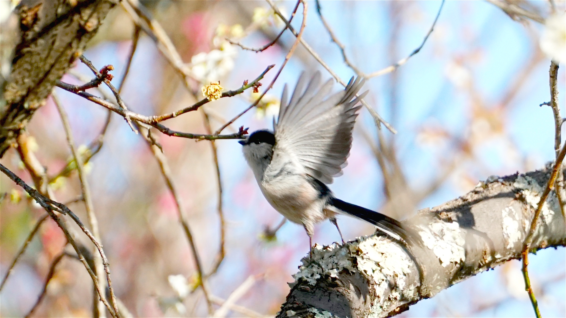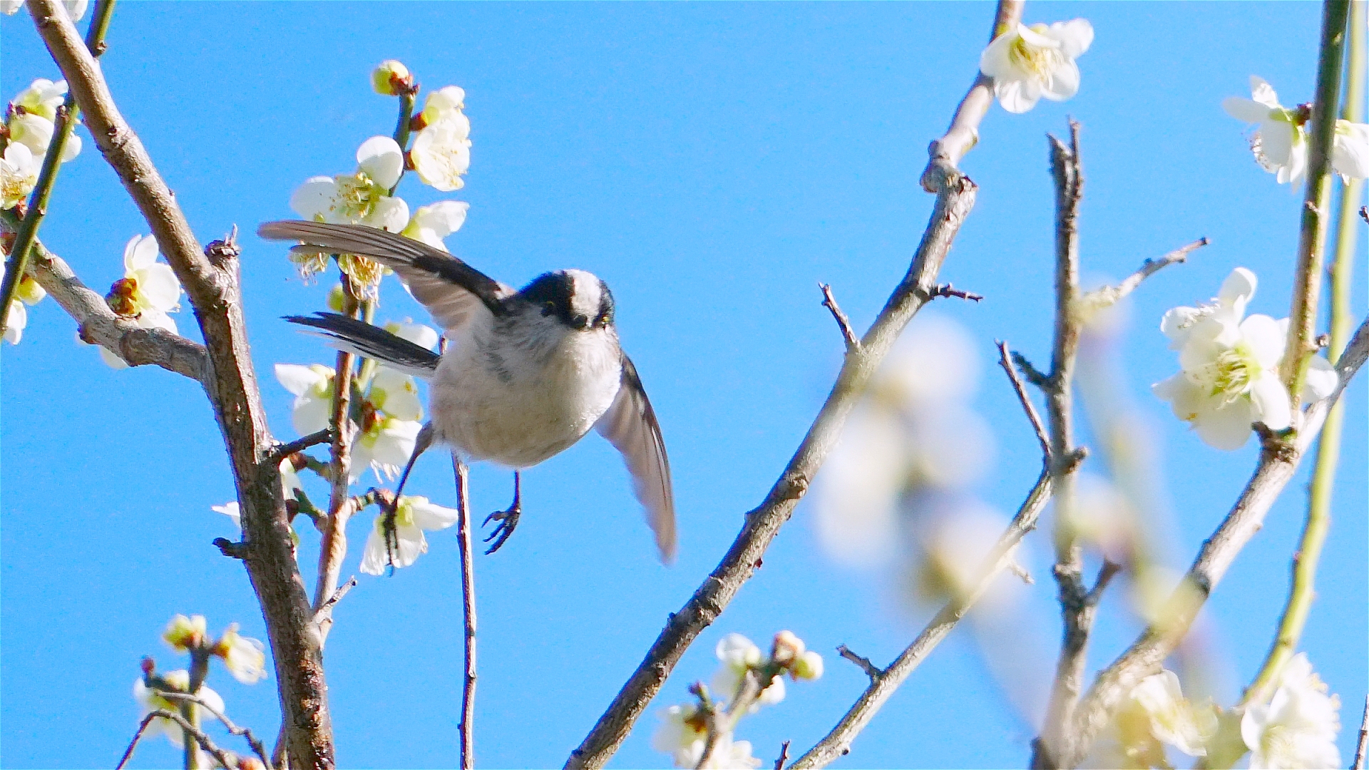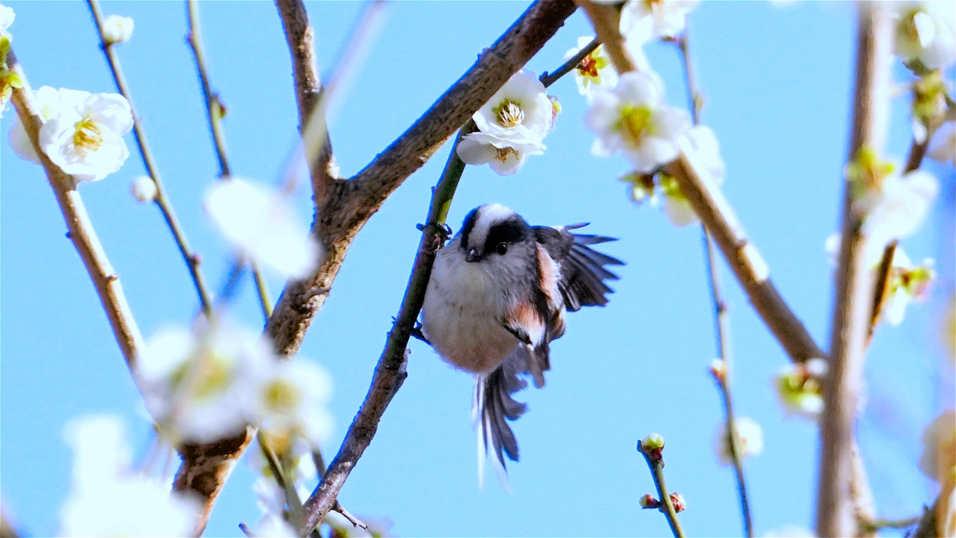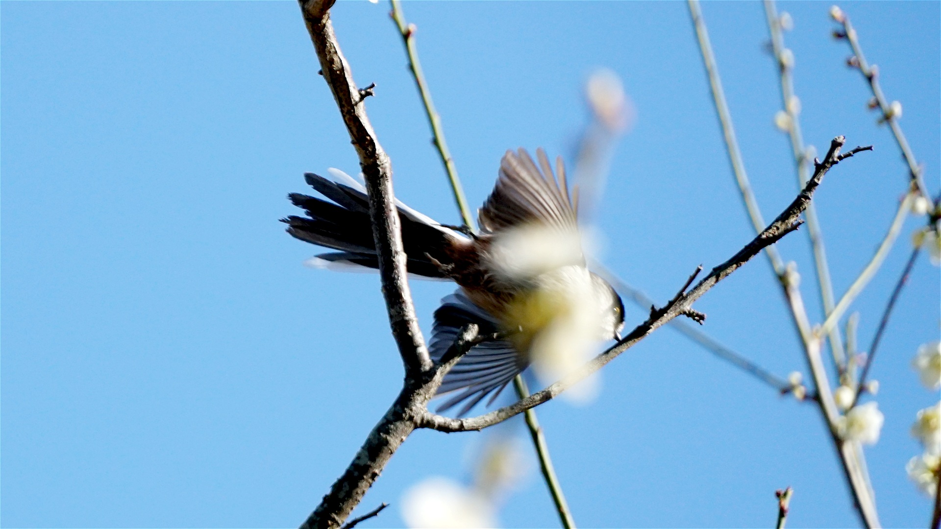 あああ・・・せっかく羽ばたきをとらえられたのに・・・ う、梅の花が邪魔しよった・・・