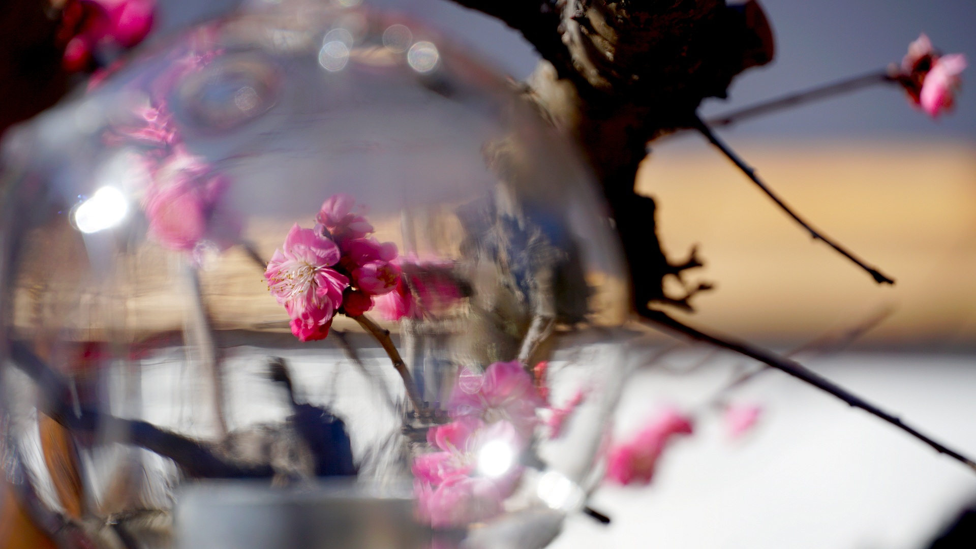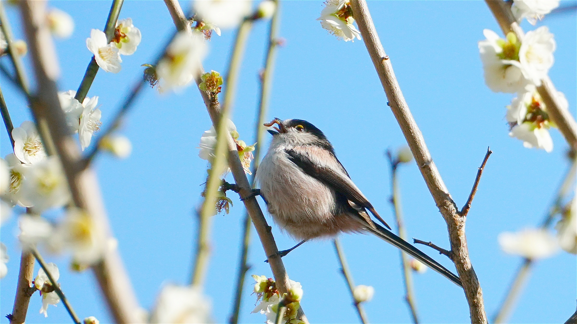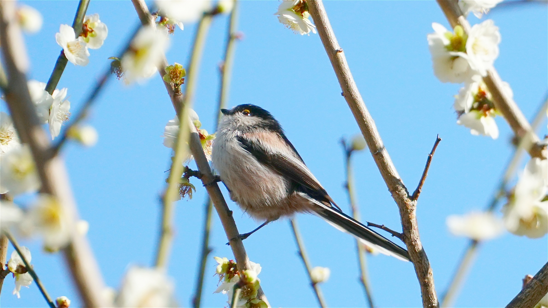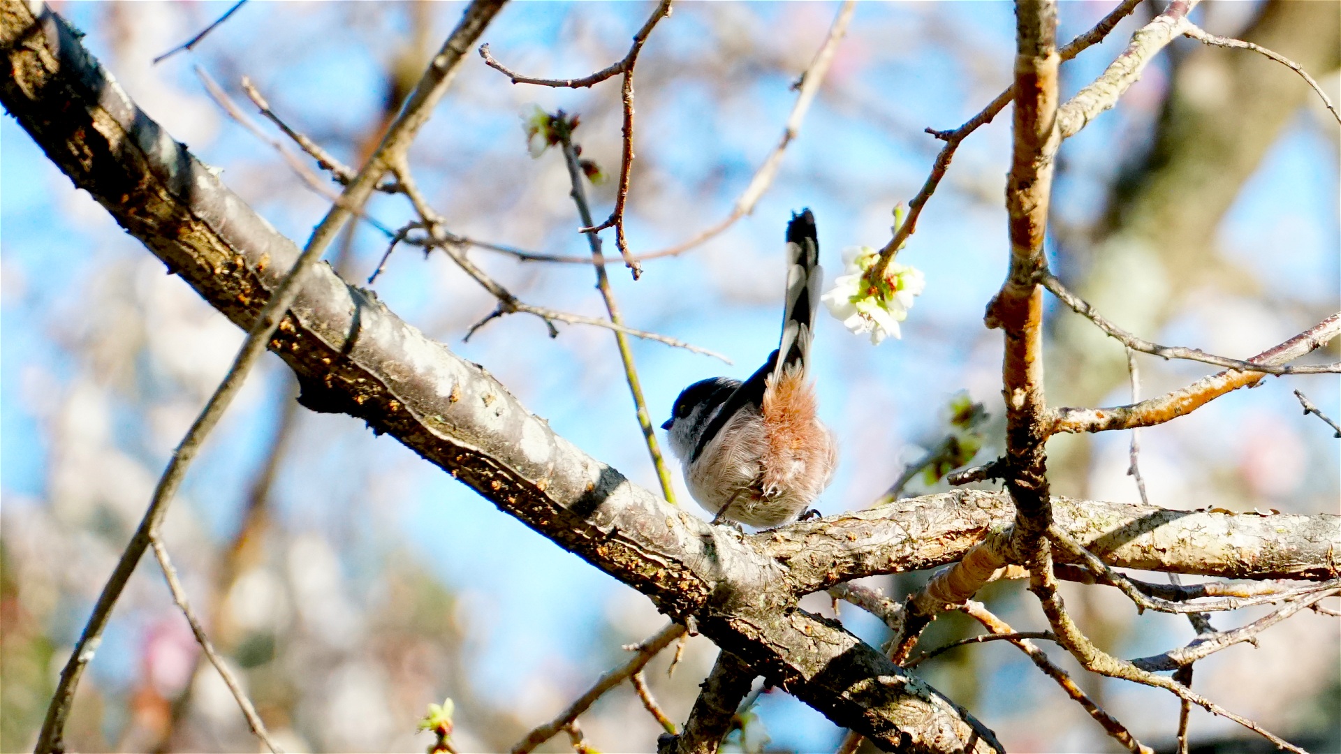 あああ・・・せっかく羽ばたきをとらえられたのに・・・ う、梅の花が邪魔しよった・・・