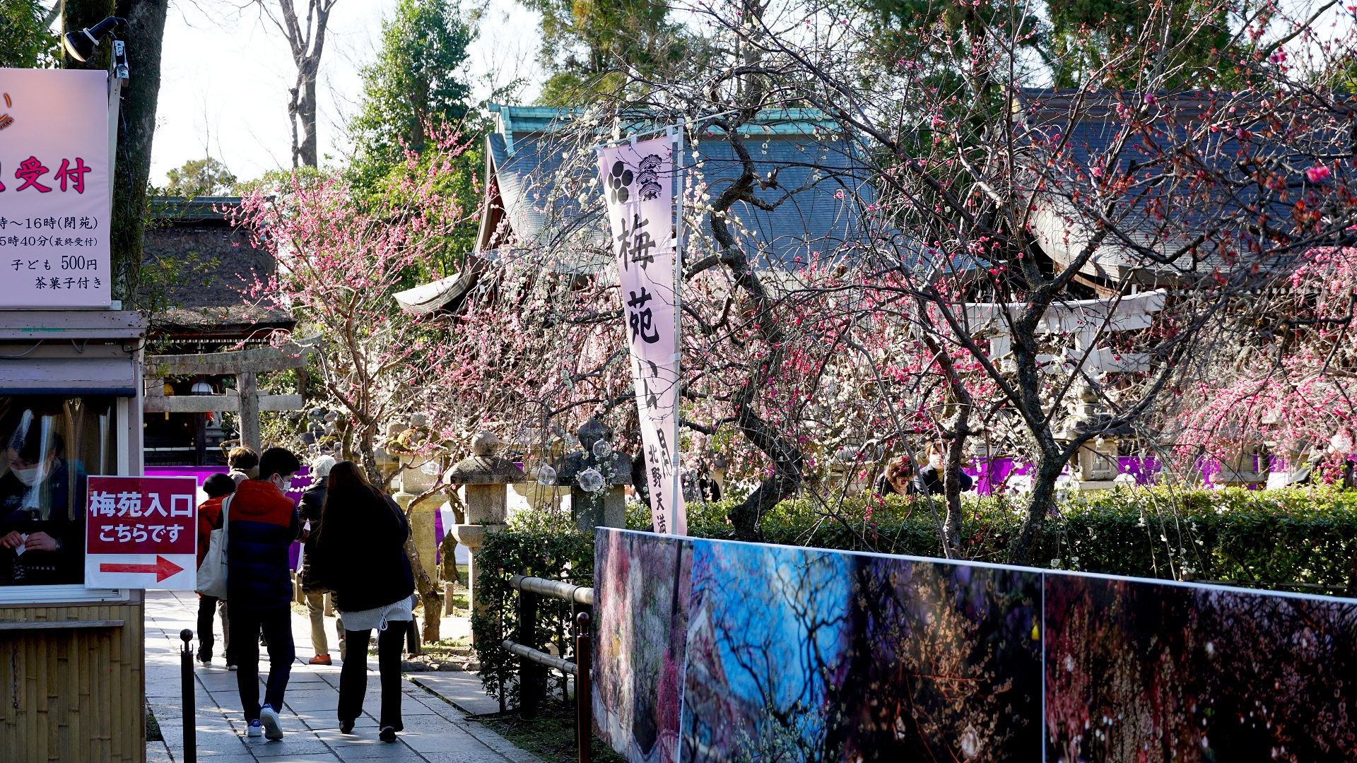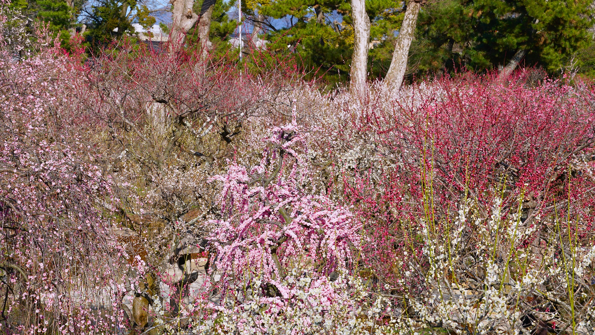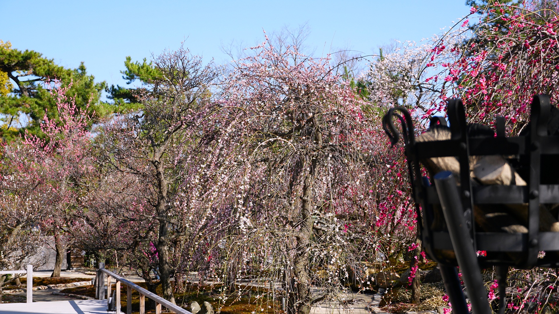今回の目標は梅園ならぬ梅苑です というわけで門をくぐらず左手の方に・・・ 入苑料はちと高いが、茶菓子付きということで、入ってみることに・・・