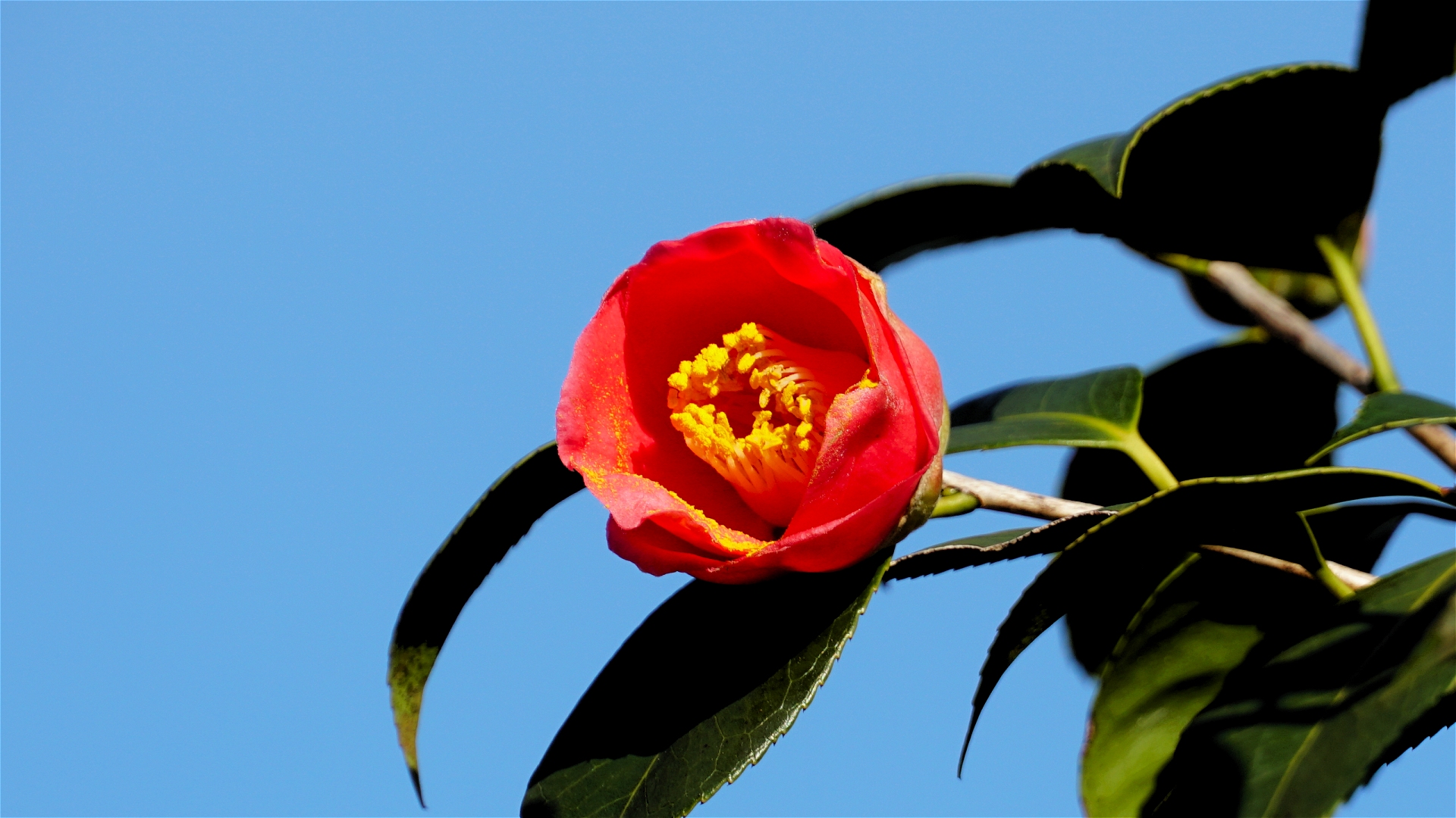 花が咲いている以上、鳥さんがいるはず・・・ときょろきょろ・・・ メジロさんはいるはずなんだけどなぁ・・・