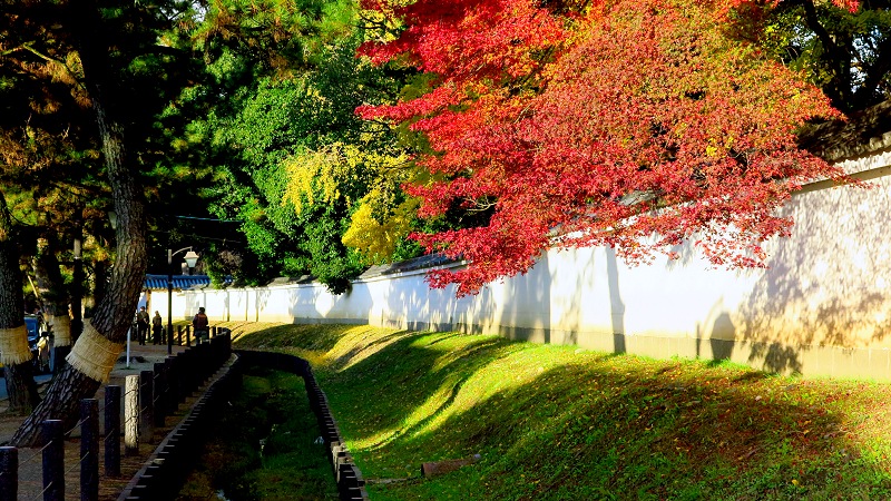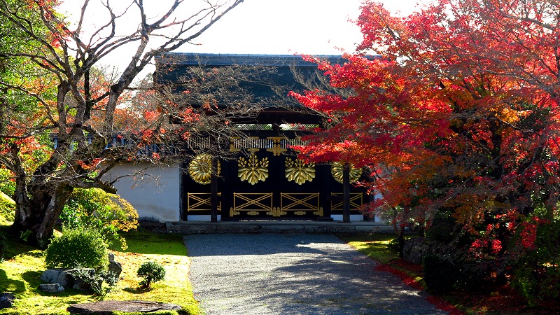 紅葉は期待できないなぁと思いつつも「日月門」をくぐって…